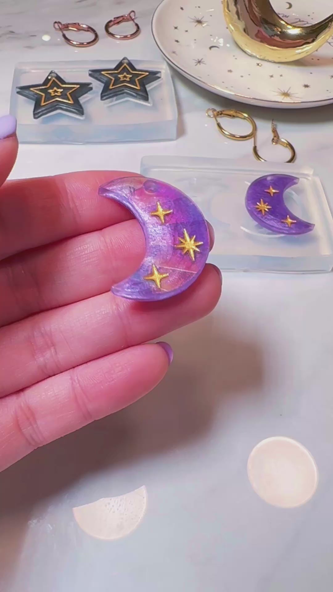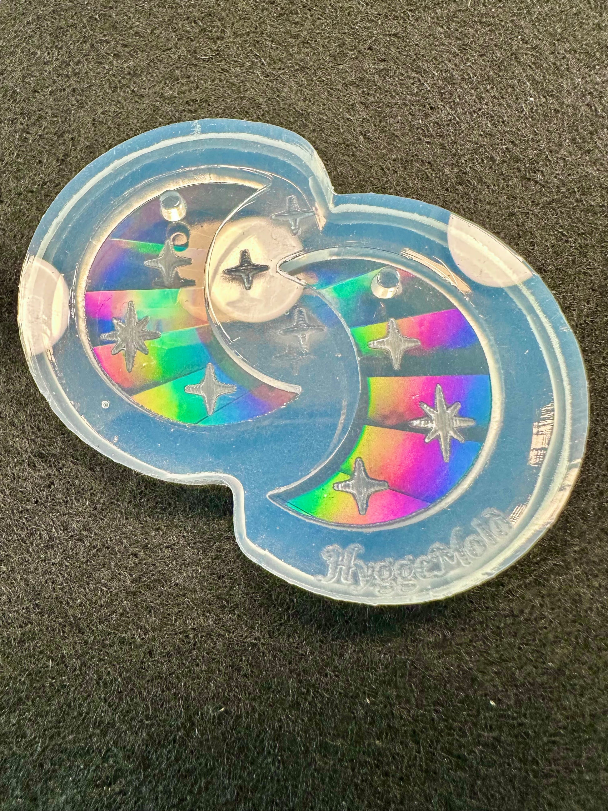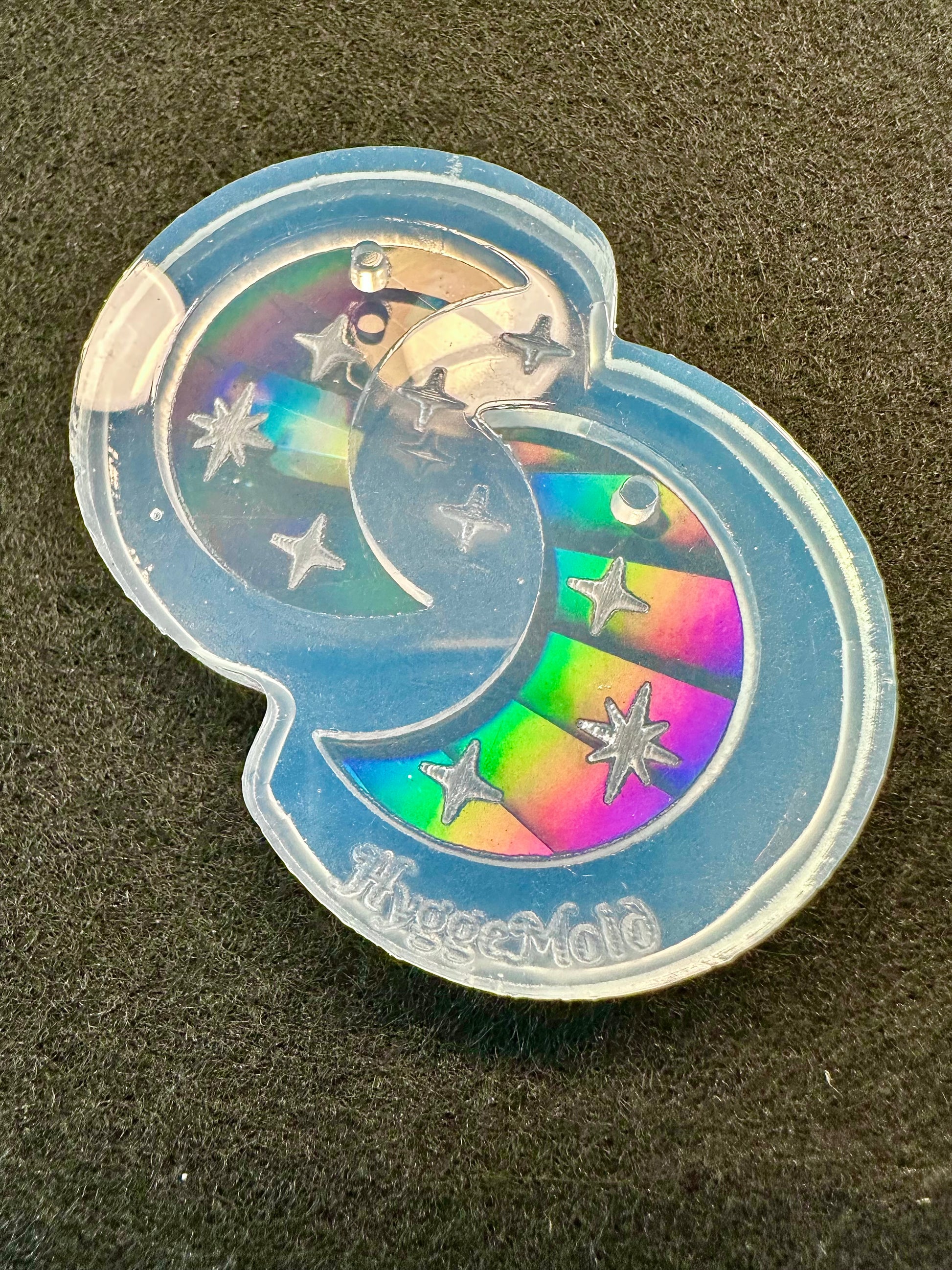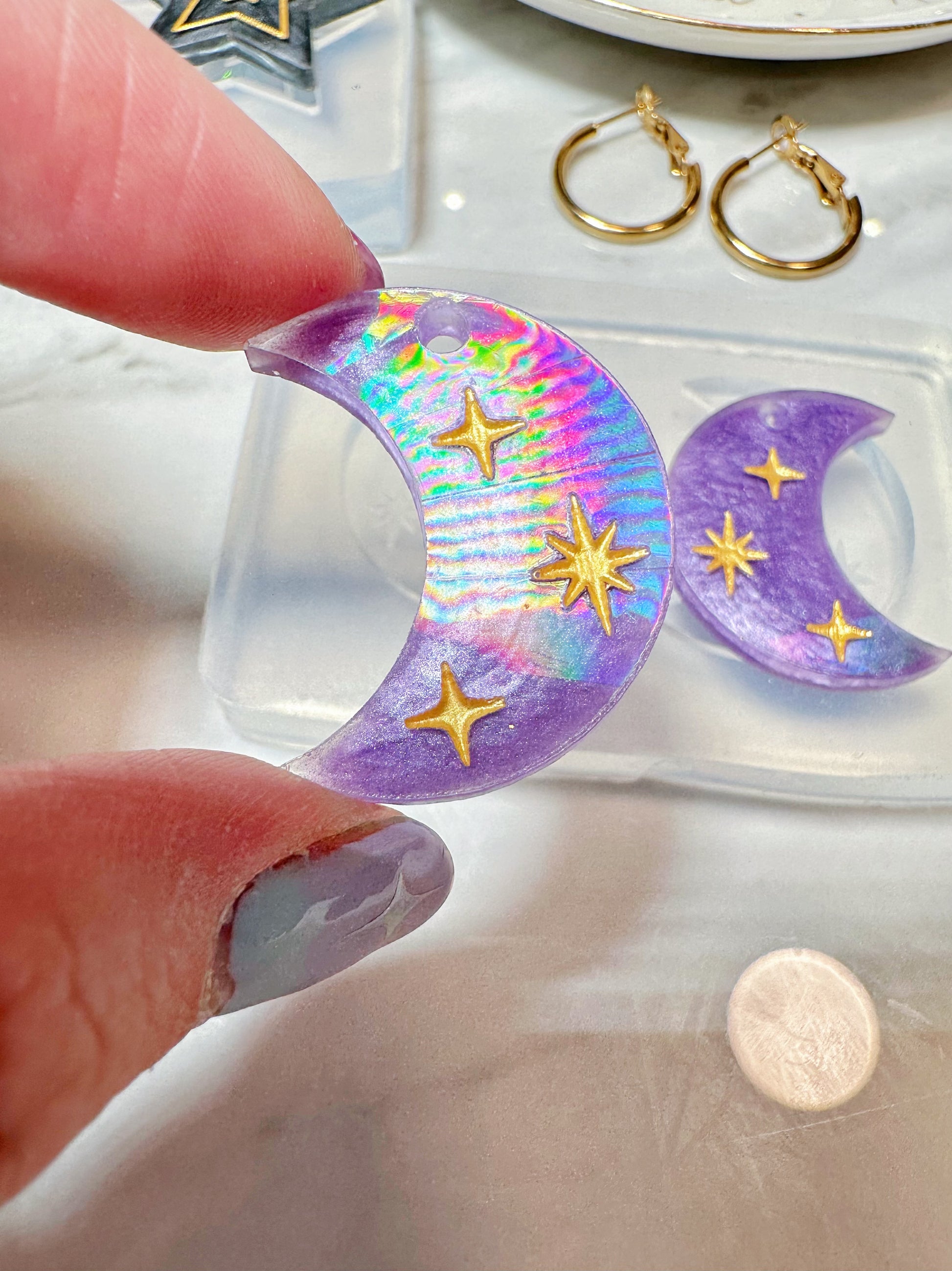 Holographic Engraved Celestial Moon Dangle Earring Mold for Hoop Charms