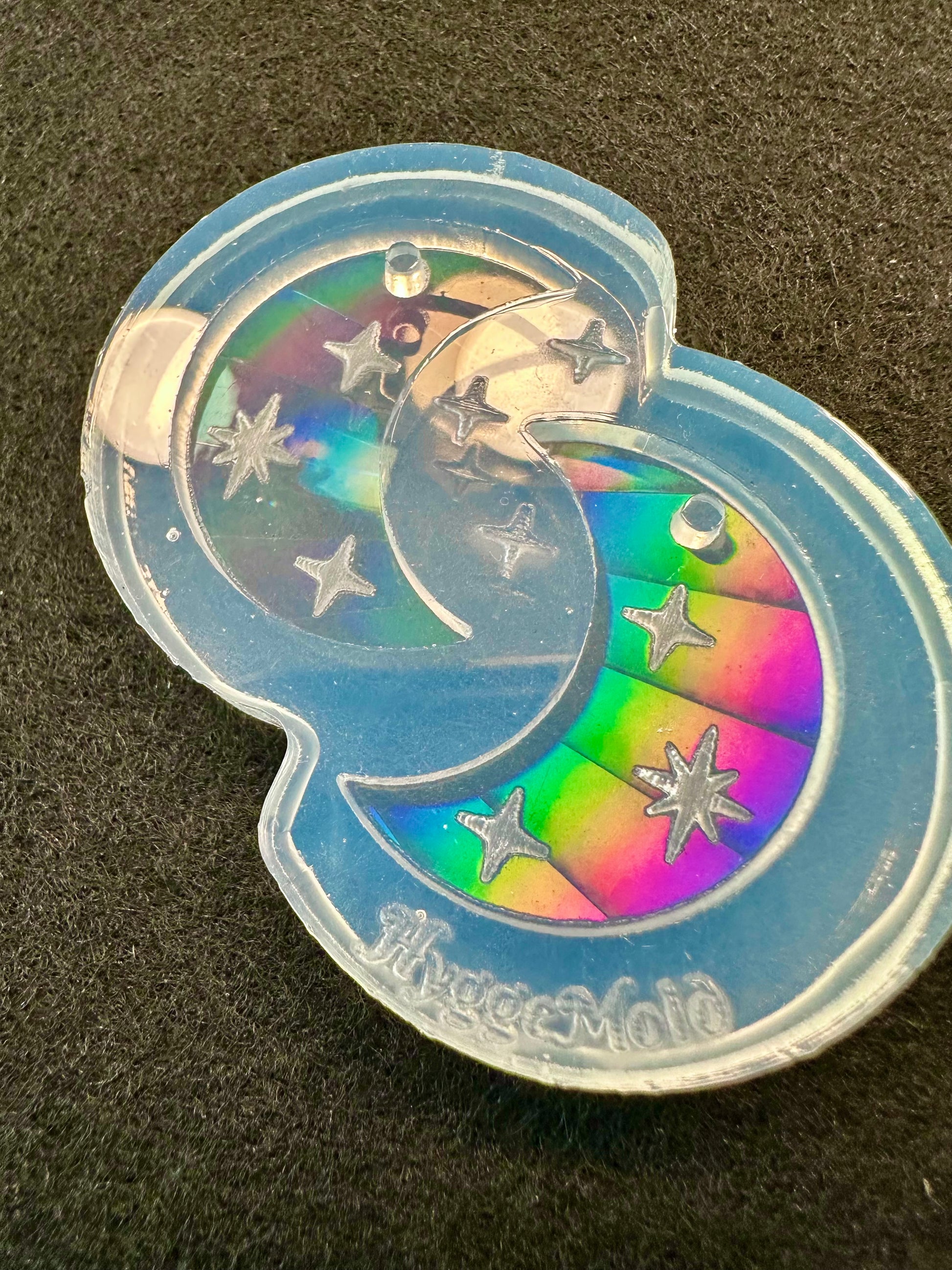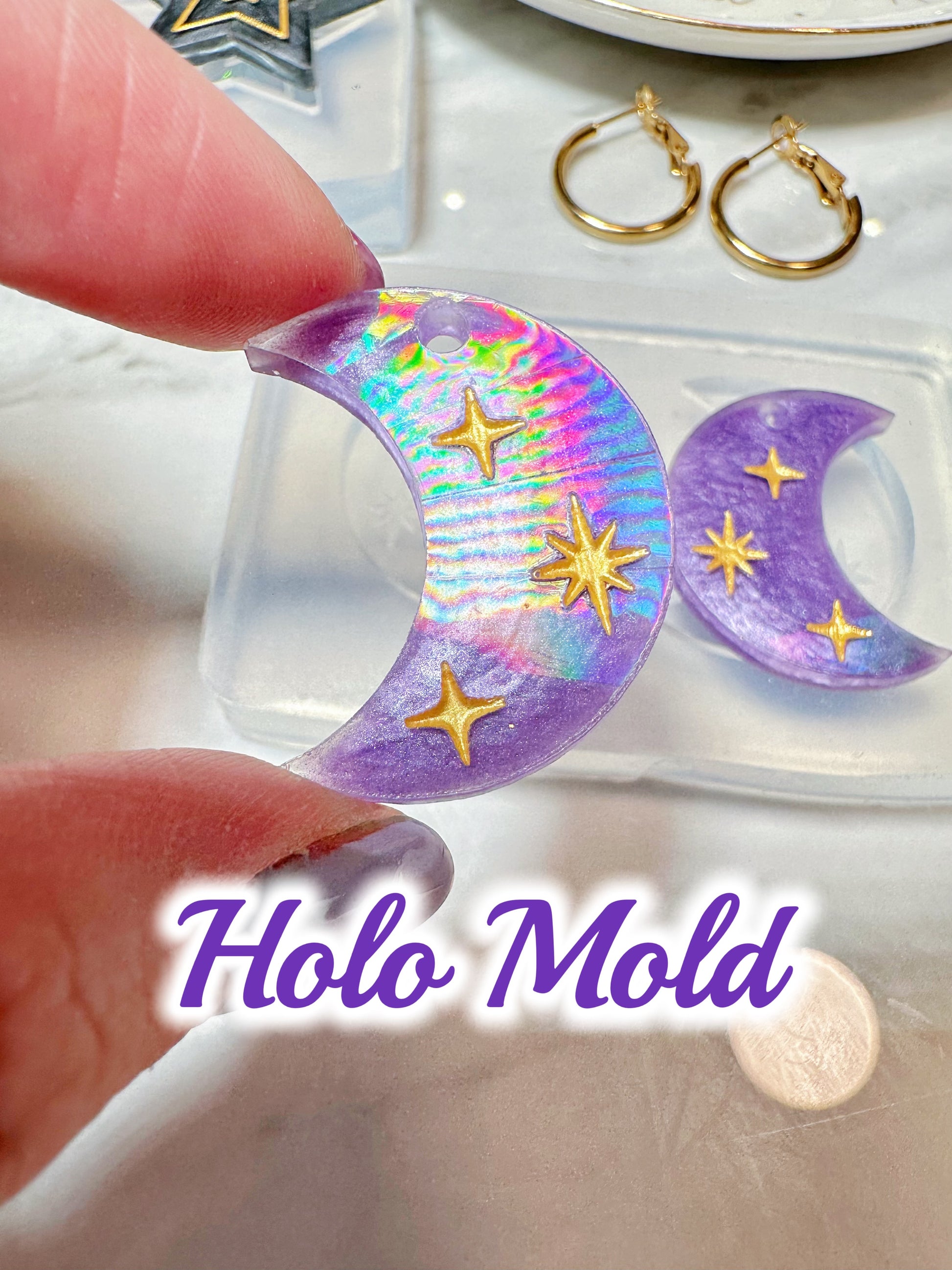 Our Holographic Molds create a stunning built-in rainbow shine, giving your resin pieces a mesmerizing iridescent effect! ✨ Simply pour your resin, let it cure, and unmold to reveal the holographic finish. For best results, pour a clear layer of resin into the mold first and then a layer of colored resin.  Do not dome, as it will cancel out the holographic effect. Perfect for jewelry, keychains, and charms that shine from every angle! 🌈💖