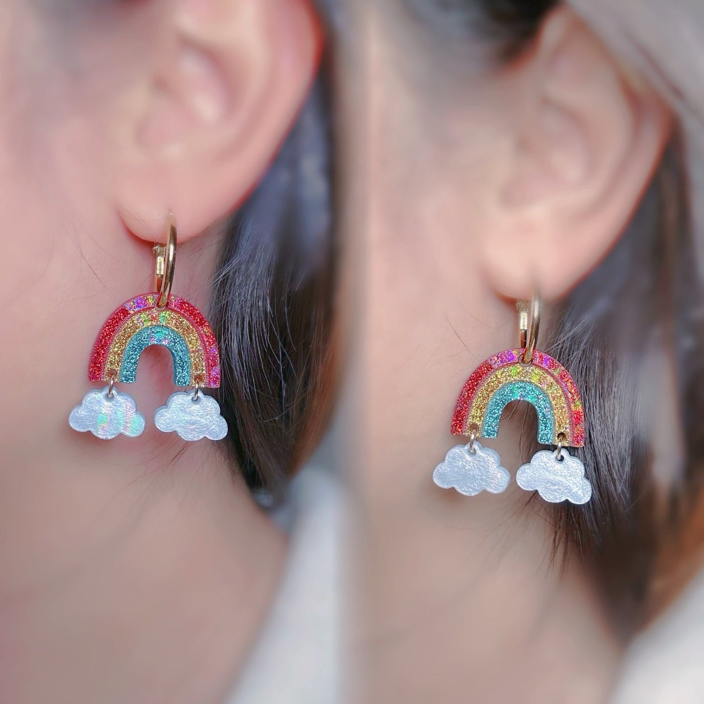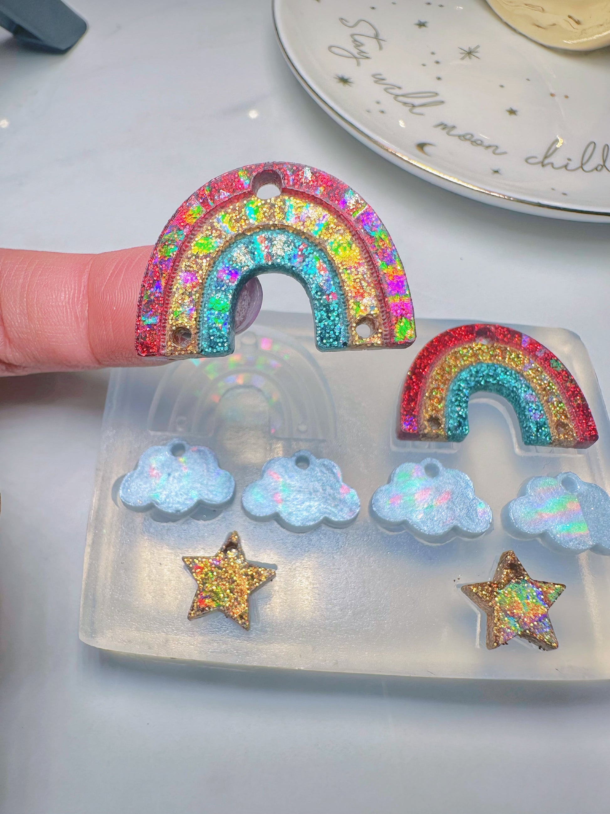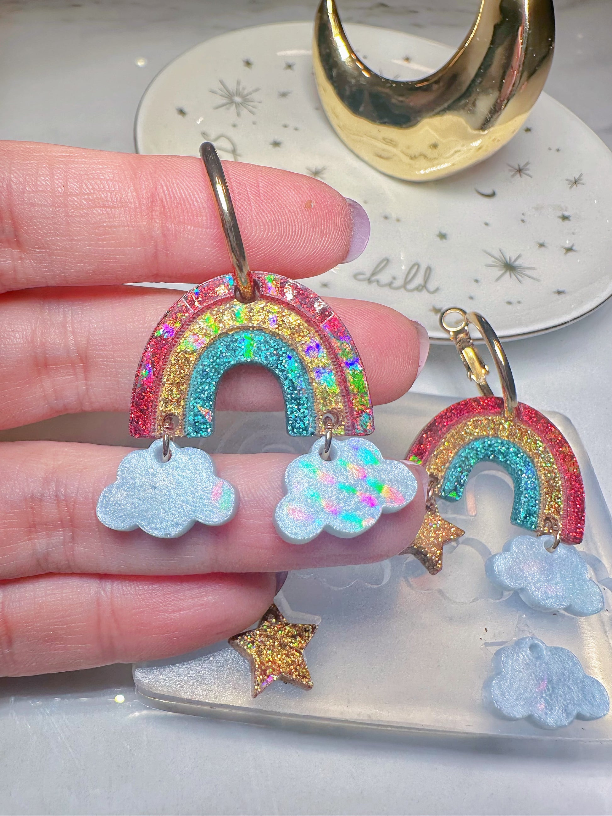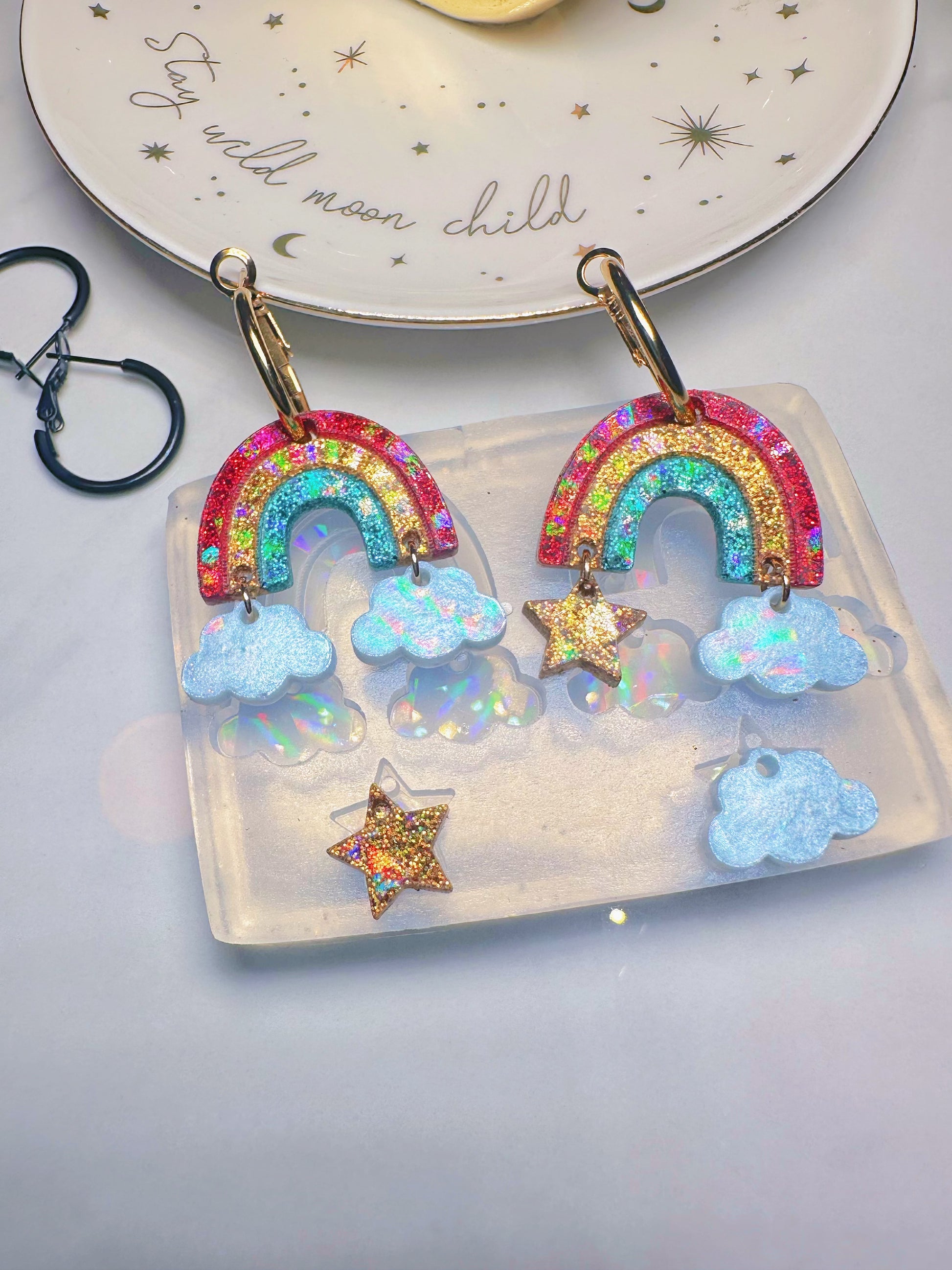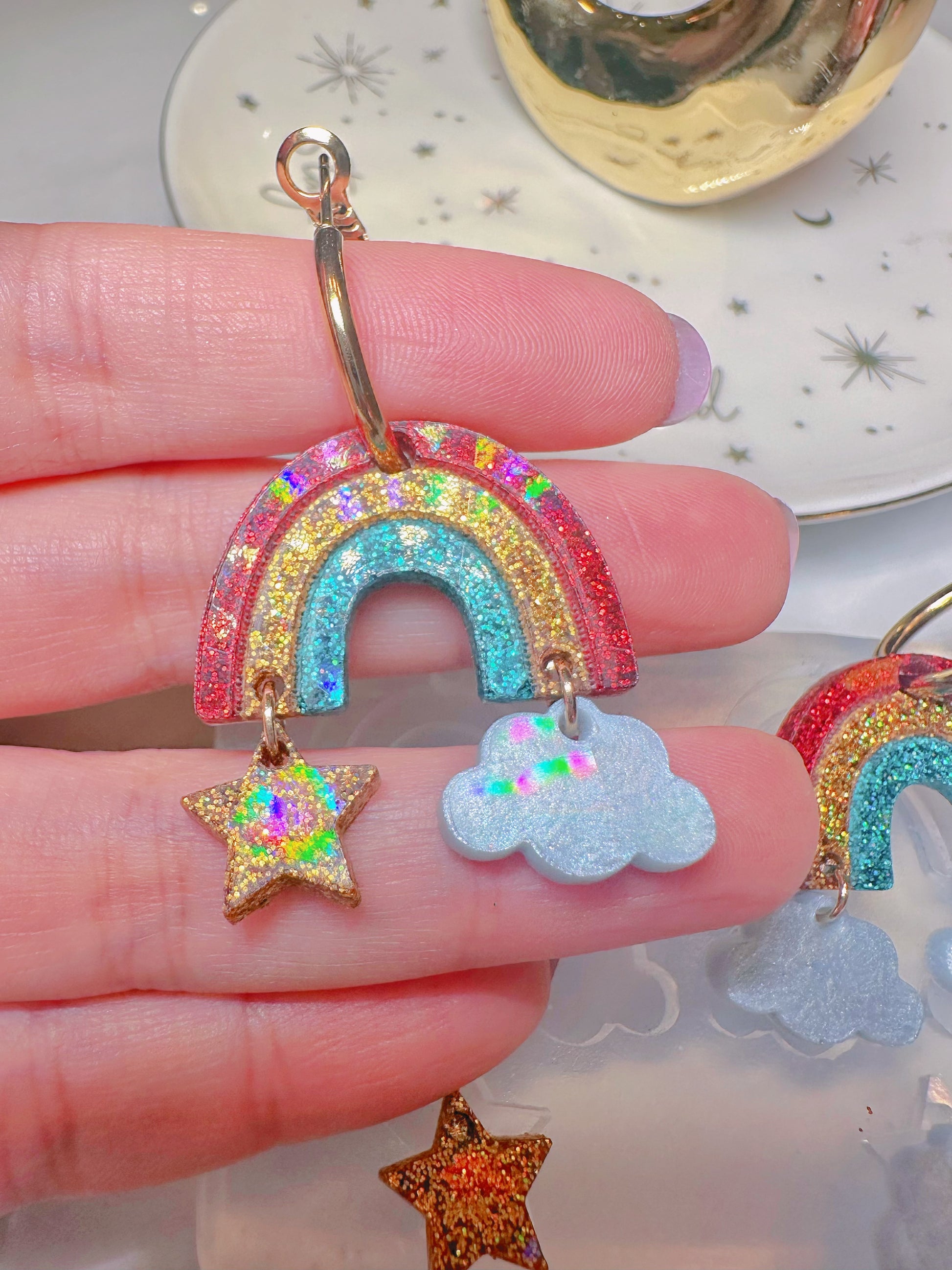 Holographic Rainbow Cloud Star Dangle Earring Mold for Hoop Charms