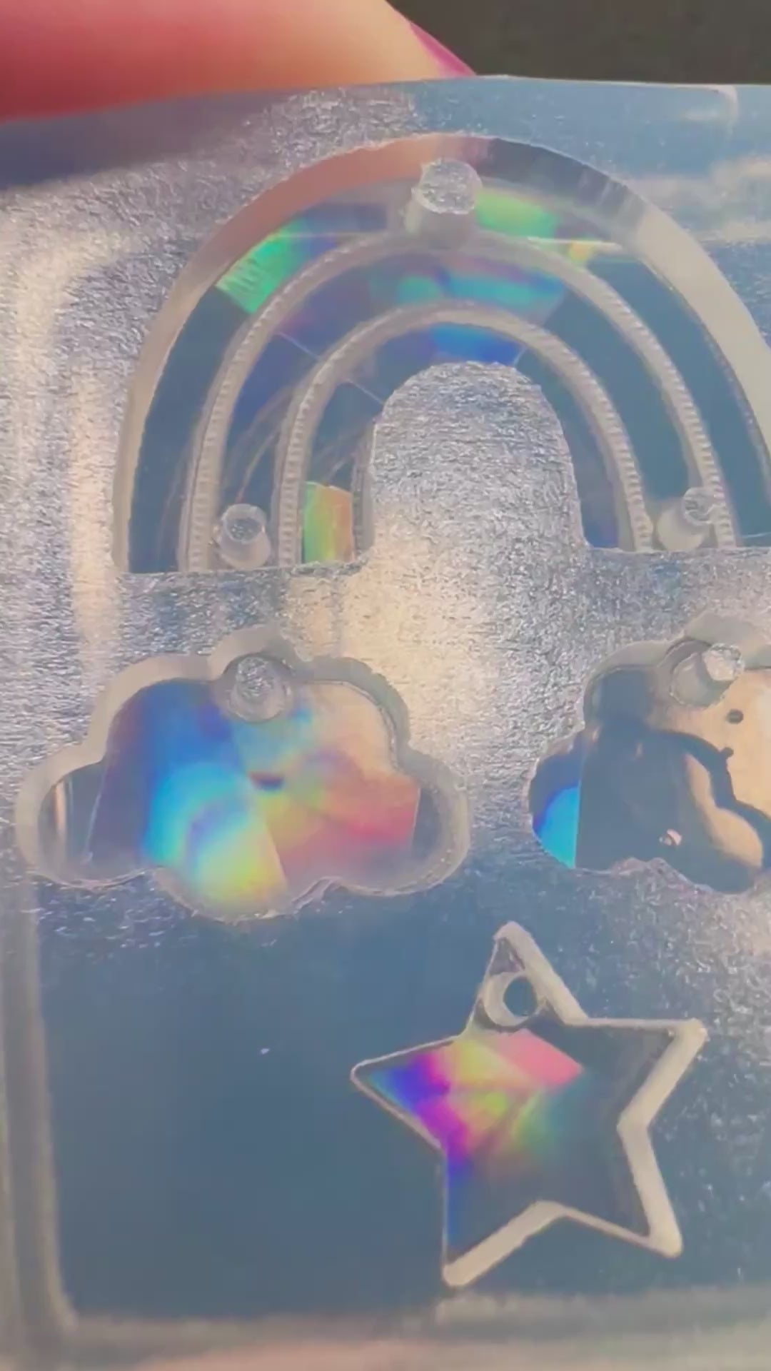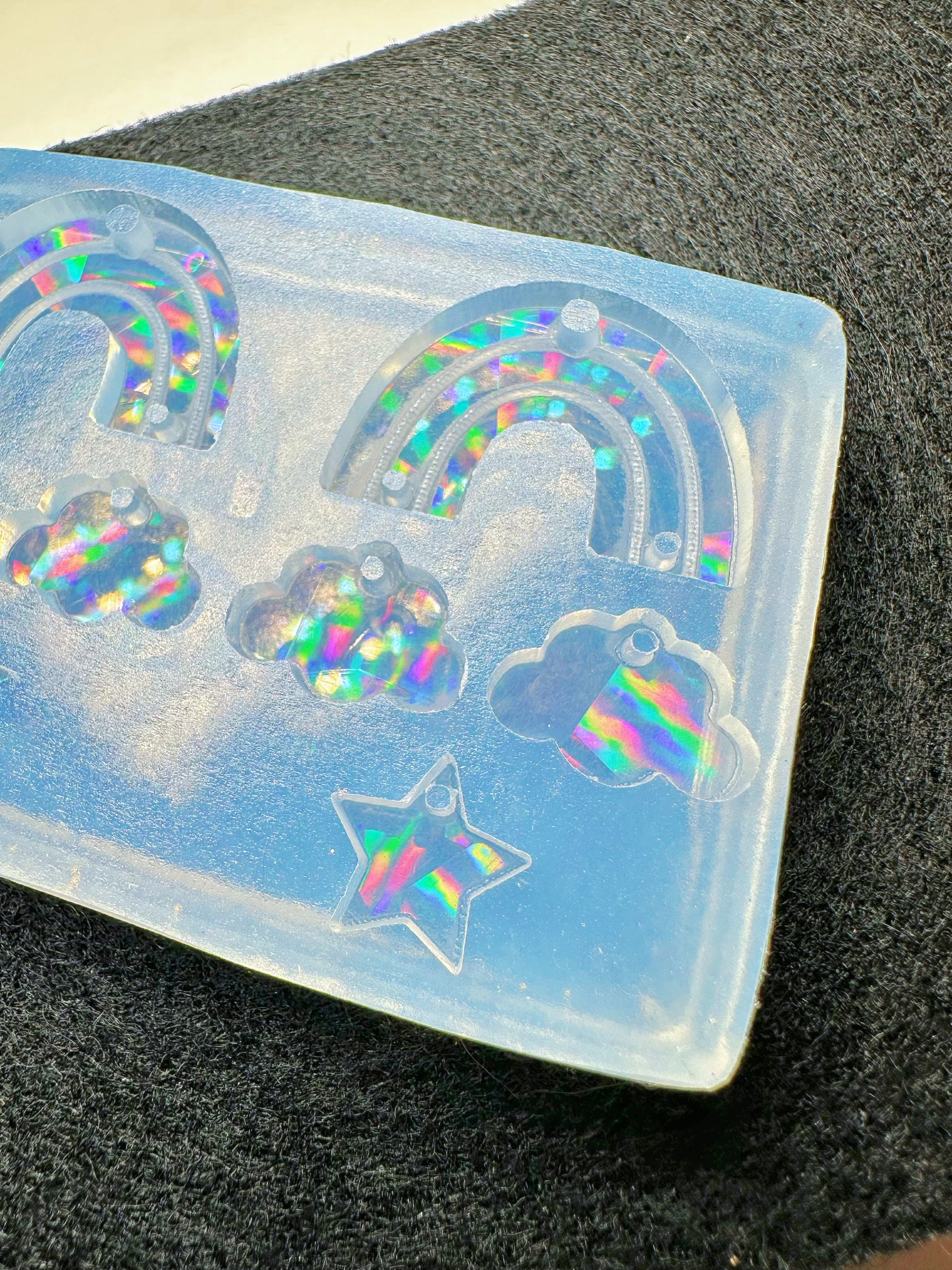 Our Holographic Molds create a stunning built-in rainbow shine, giving your resin pieces a mesmerizing iridescent effect! ✨ Simply pour your resin, let it cure, and unmold to reveal the holographic finish. For best results, pour a clear layer of resin into the mold first and then a layer of colored resin. Do not dome, as it will cancel out the holographic effect. Perfect for jewelry, keychains, and charms that shine from every angle! 🌈💖