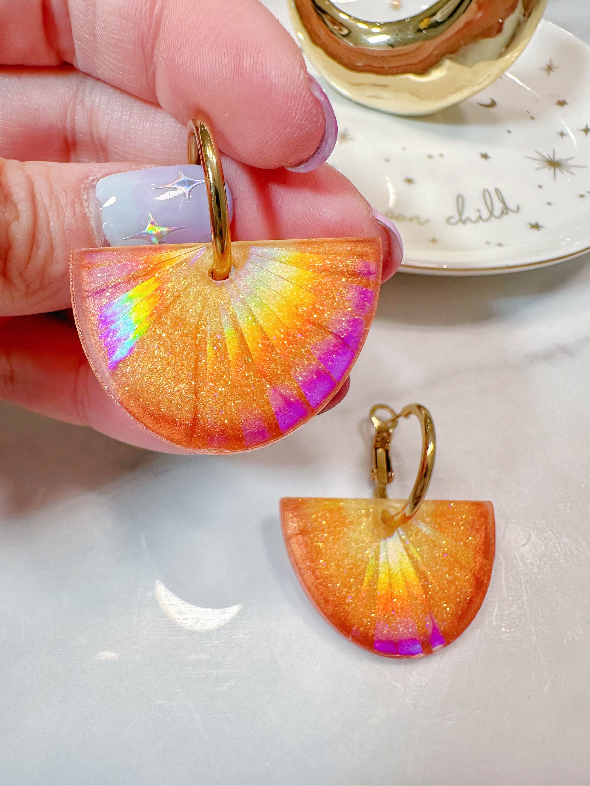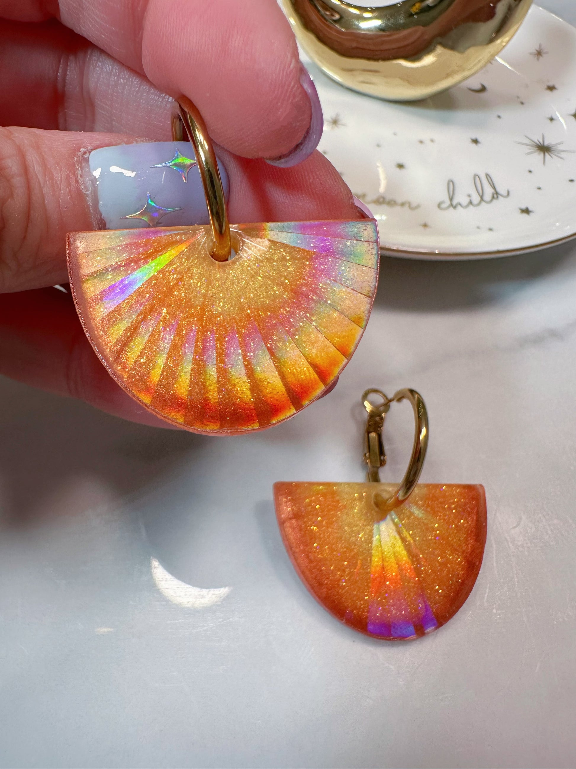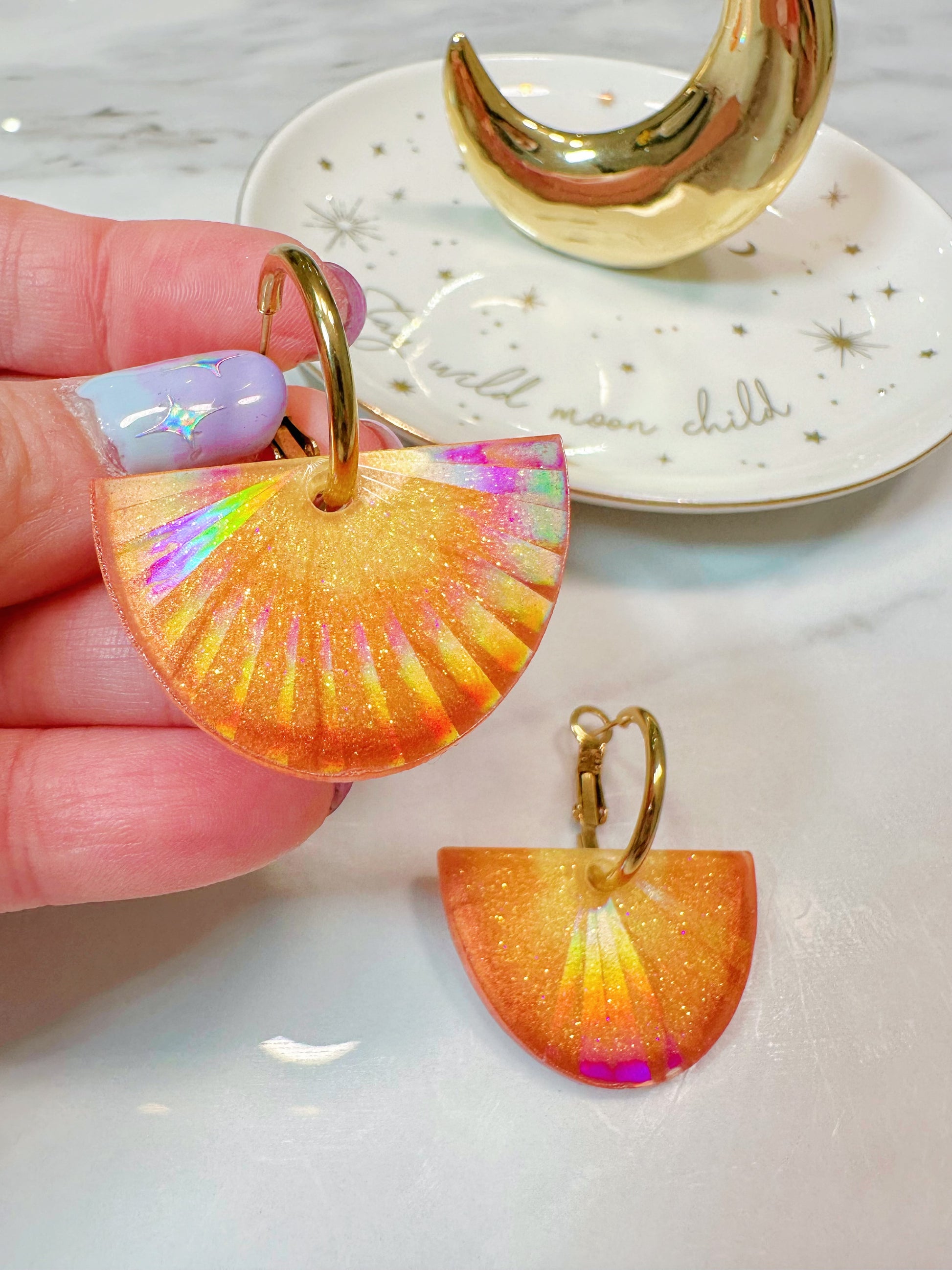 Holographic Sunburst Semi-Circle Dangle Earring Mold for Hoop Charms