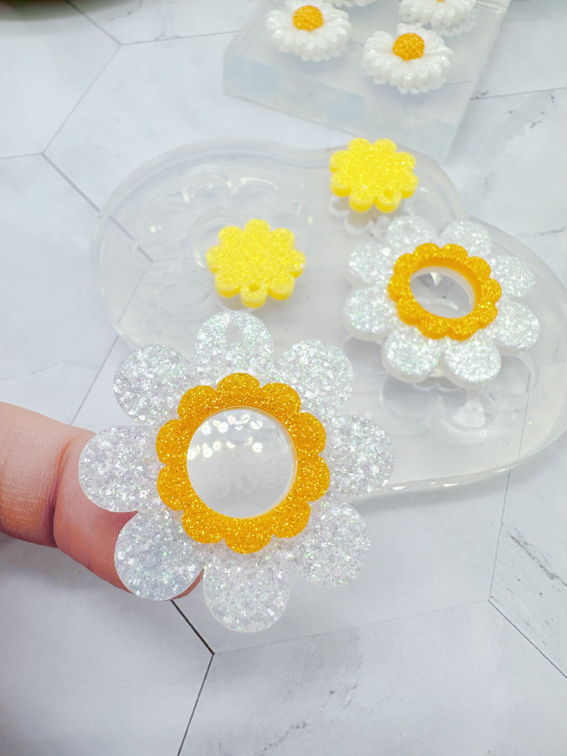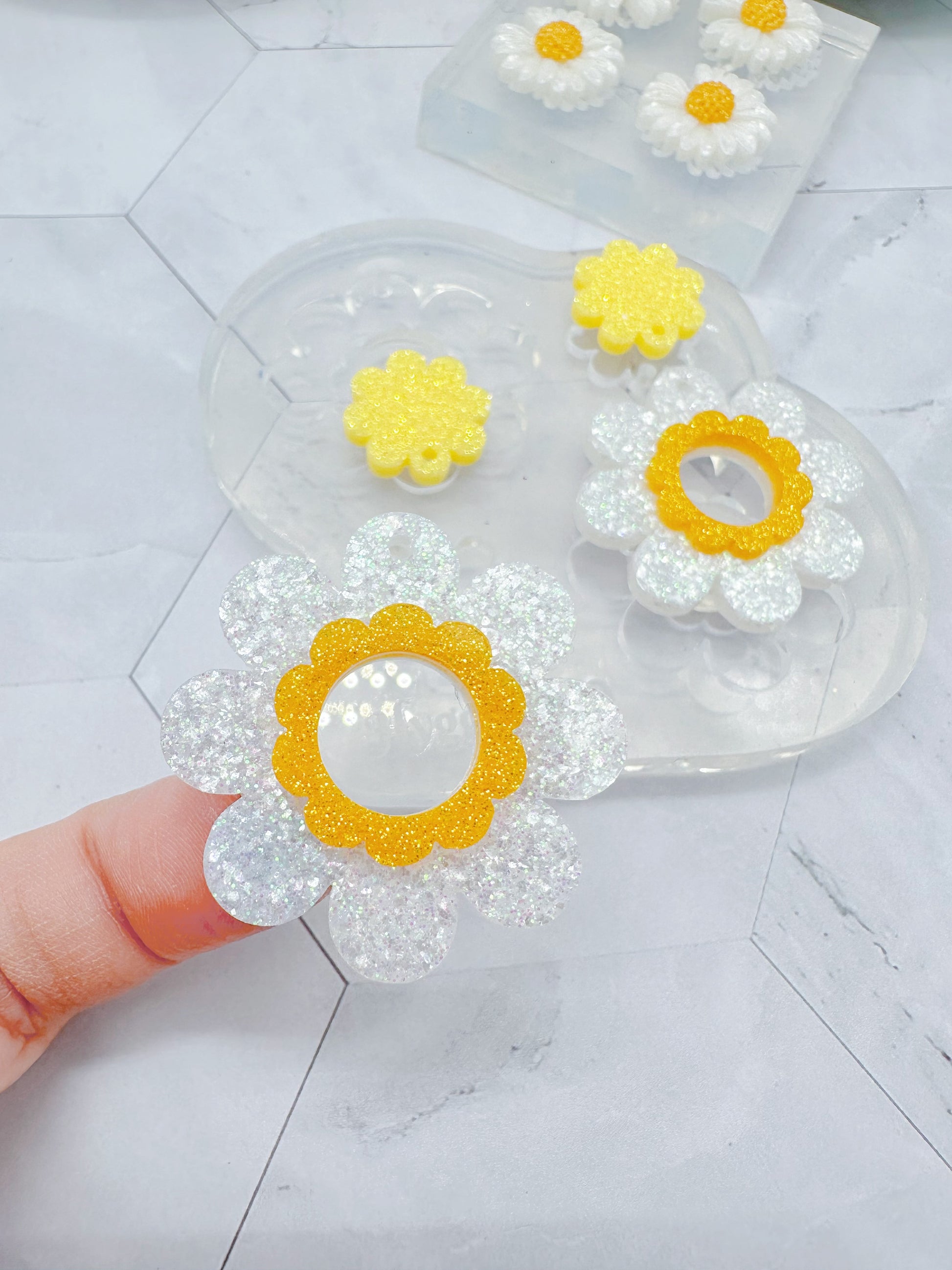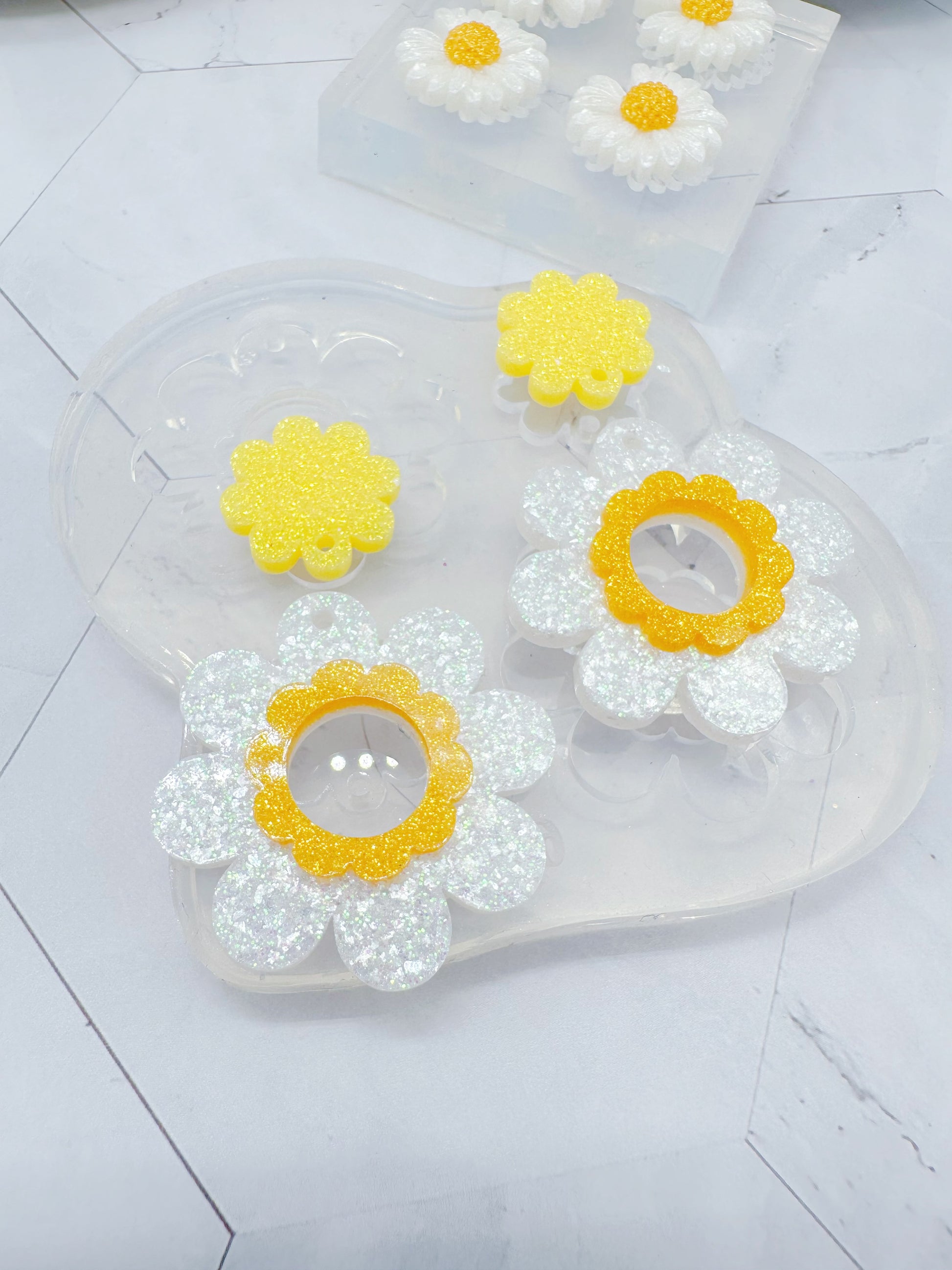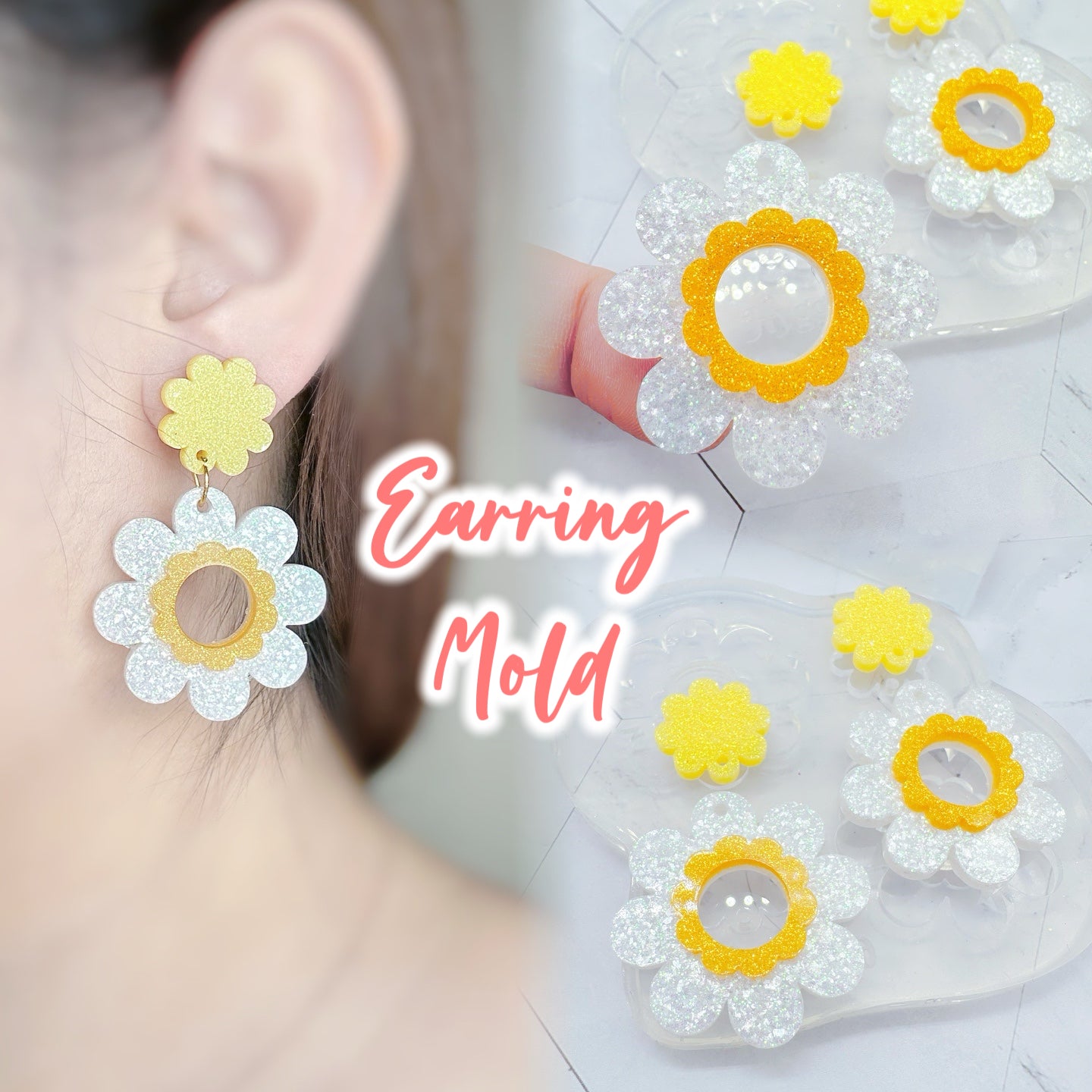 Large Double 3D Daisy Flower Dangle Drop Earring Mold