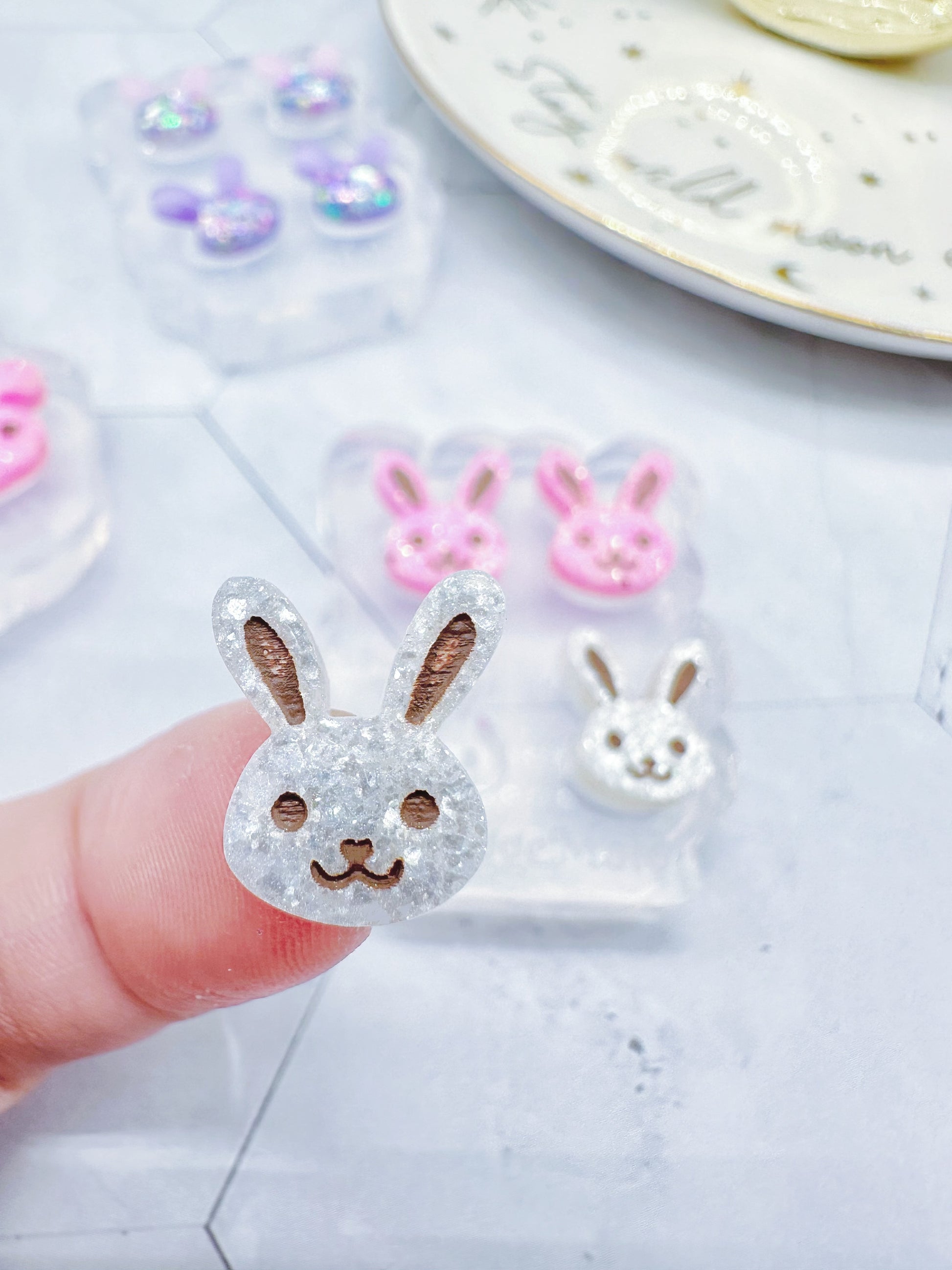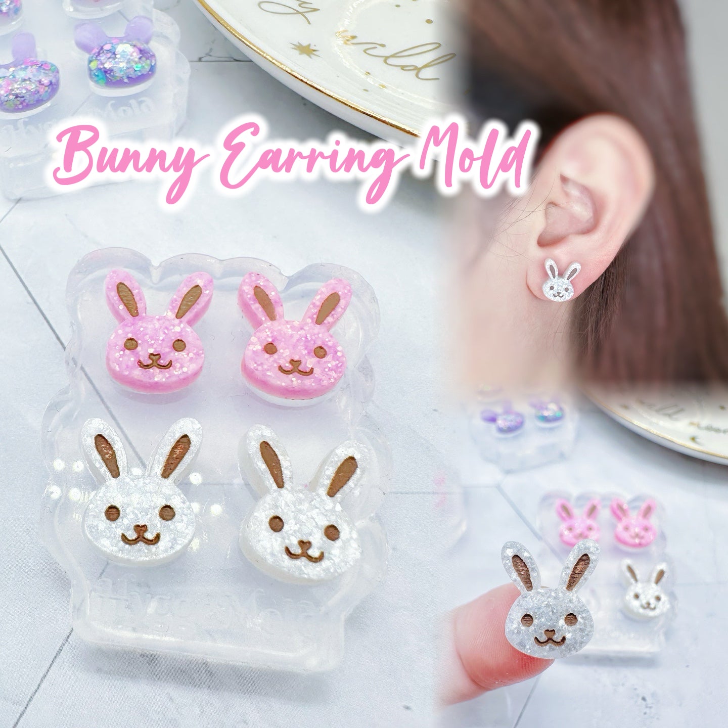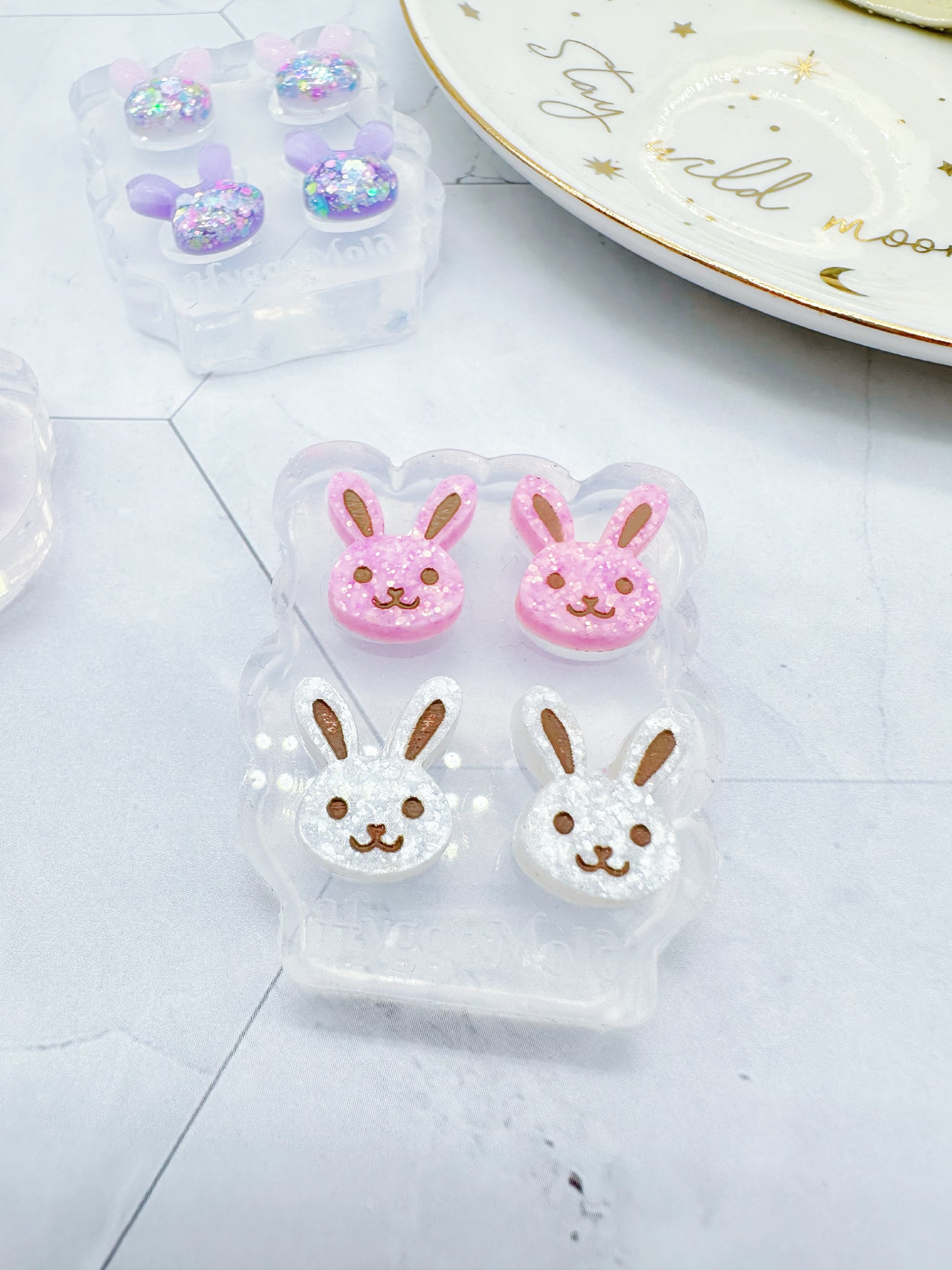 Mini Bunny Face Stud Earring Mold Easter Clear Silicone Mold for resin jewellery