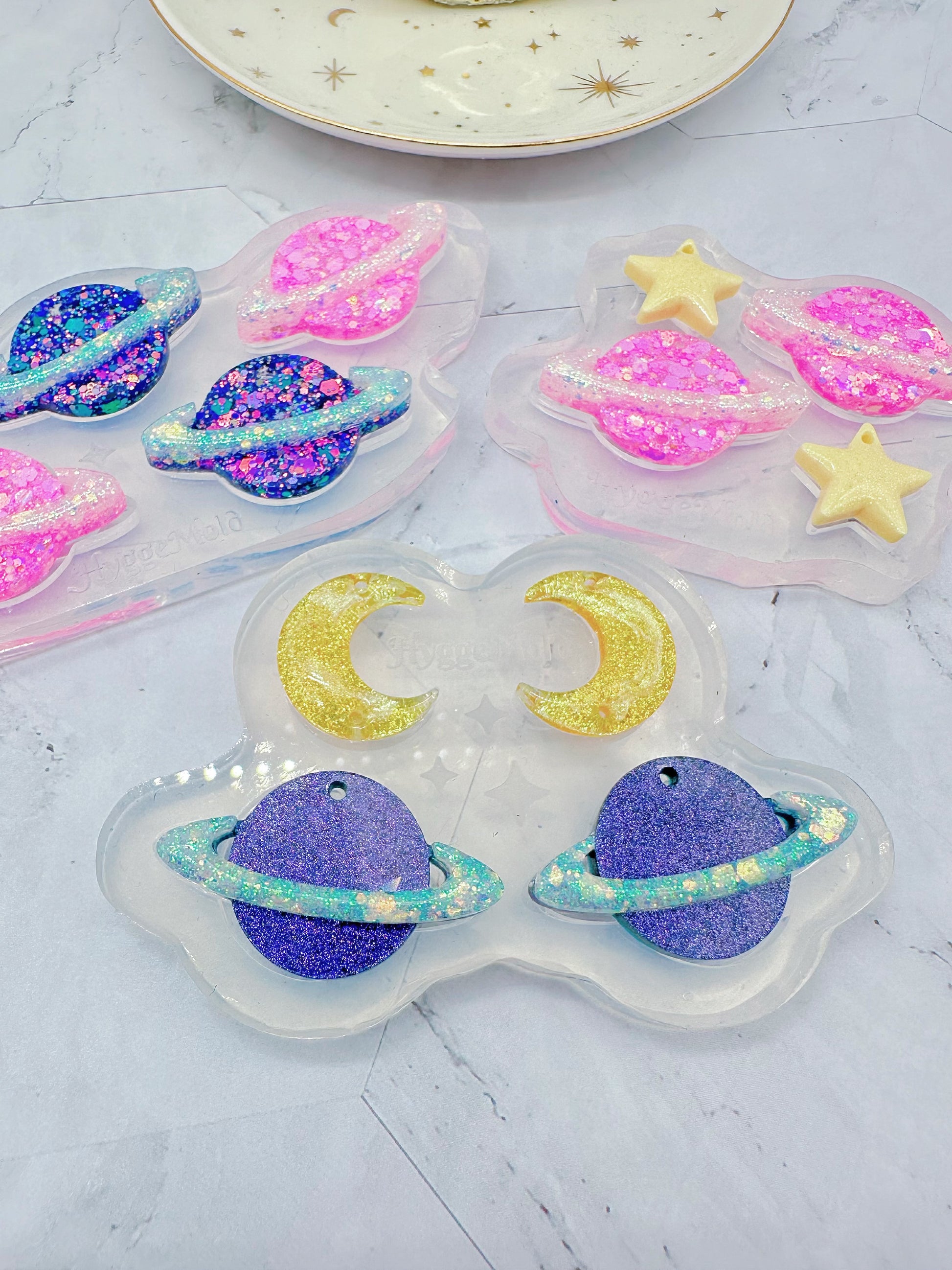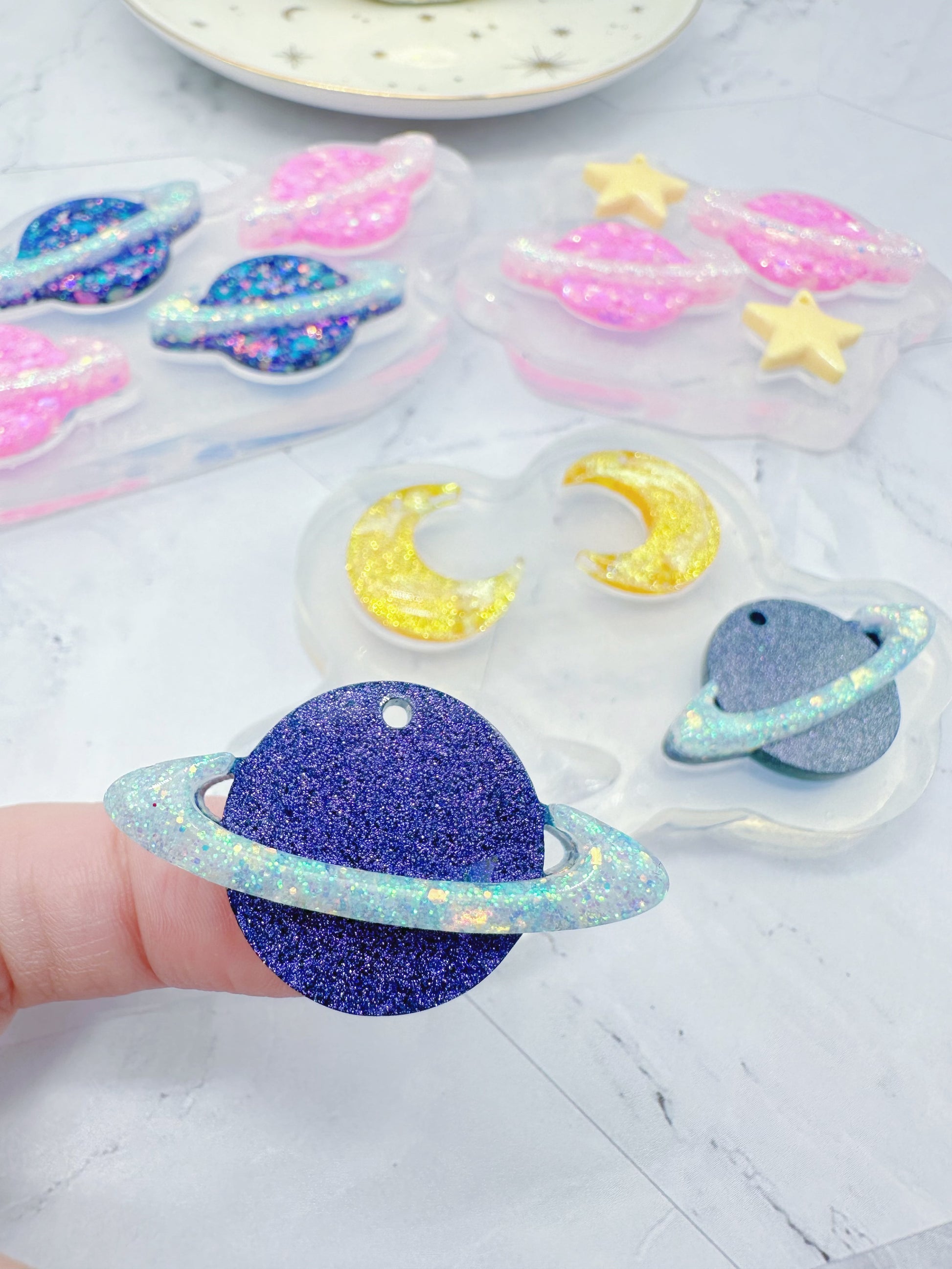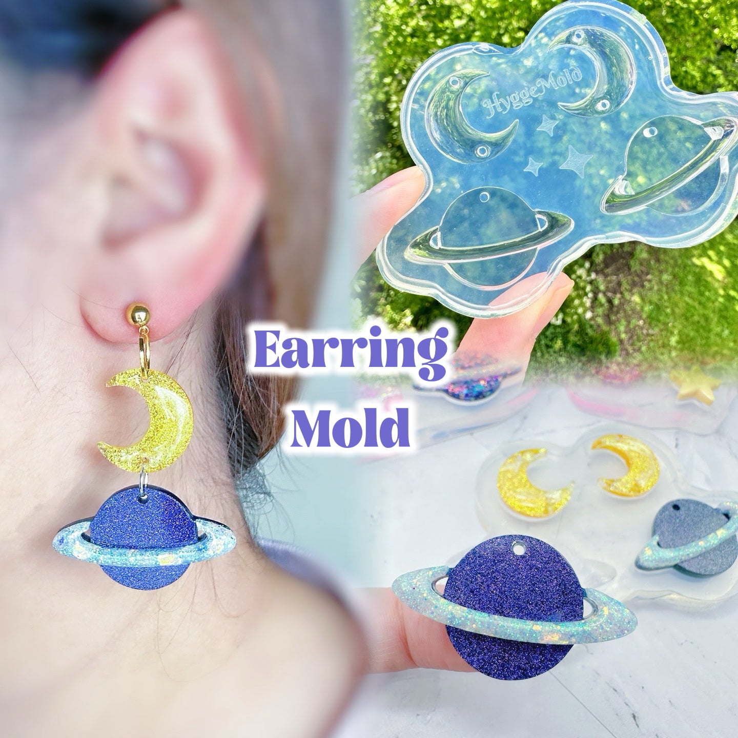 Saturn Planet and Moon Dangle Earring Mold Spaceship Space travel