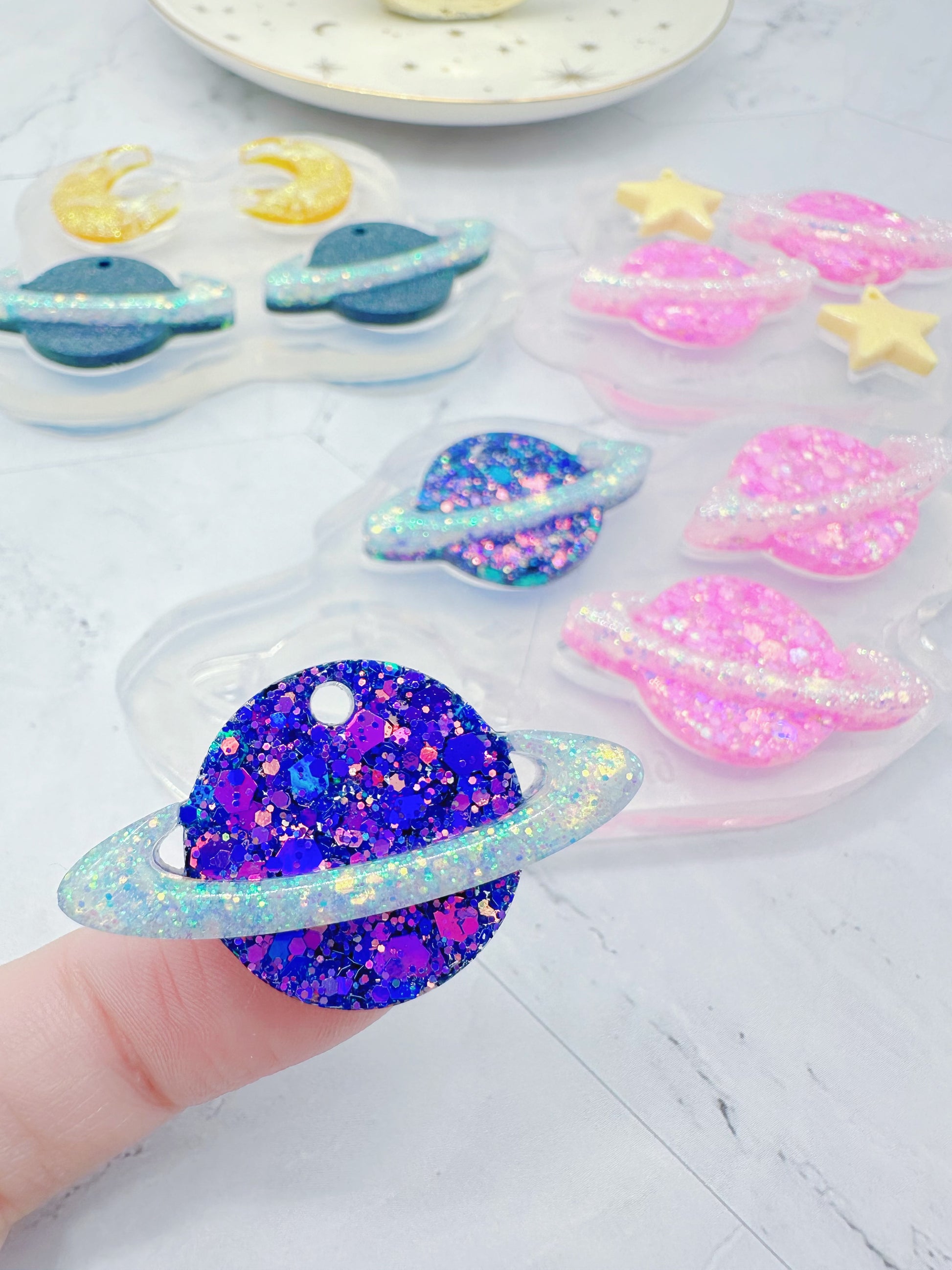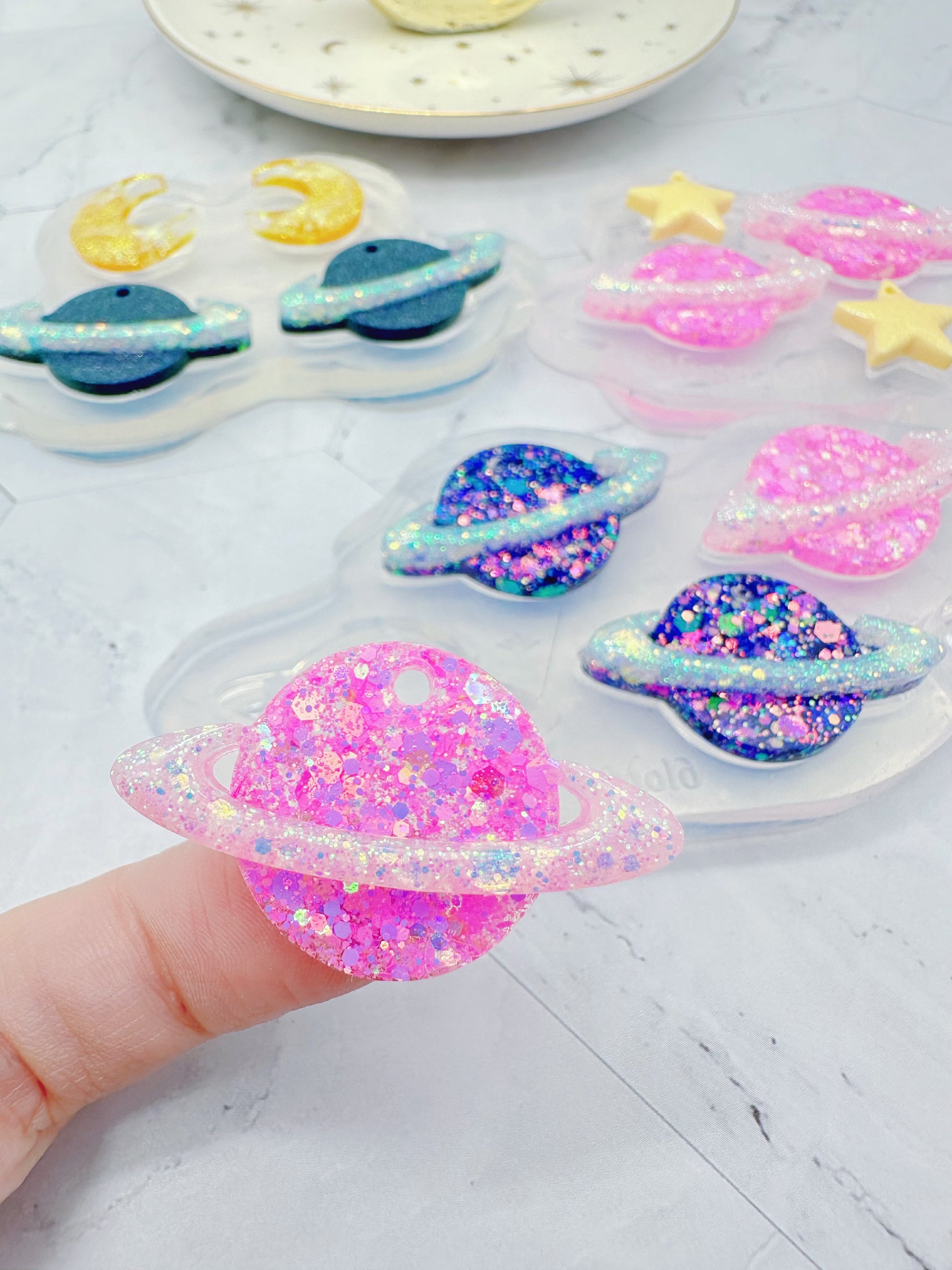 Make your own cosmic-themed Saturn planet earrings with this mold!