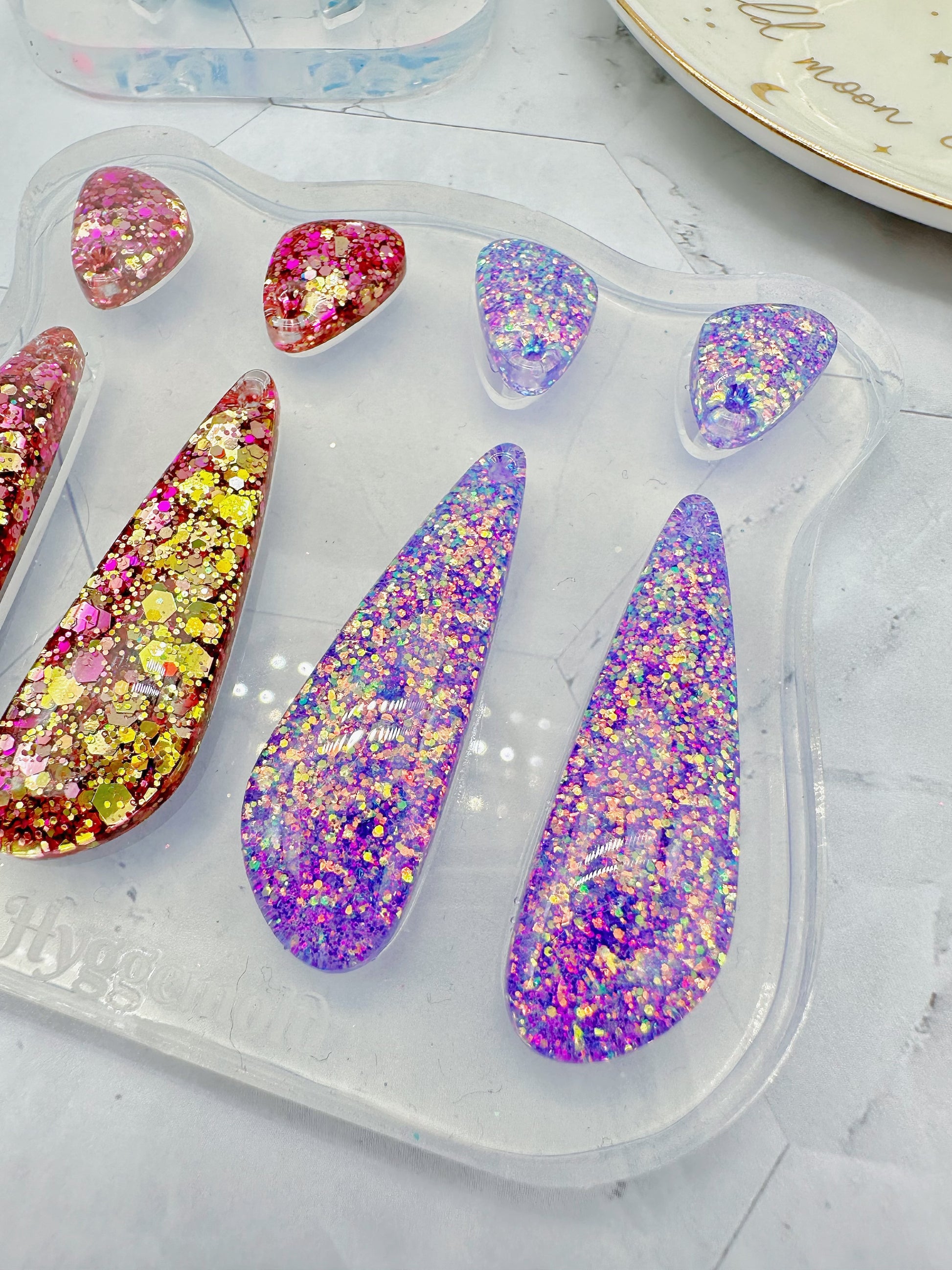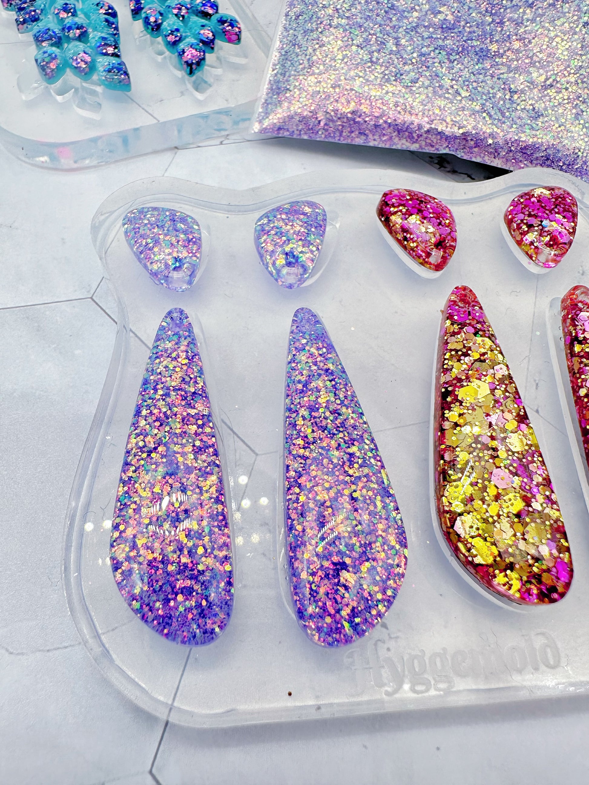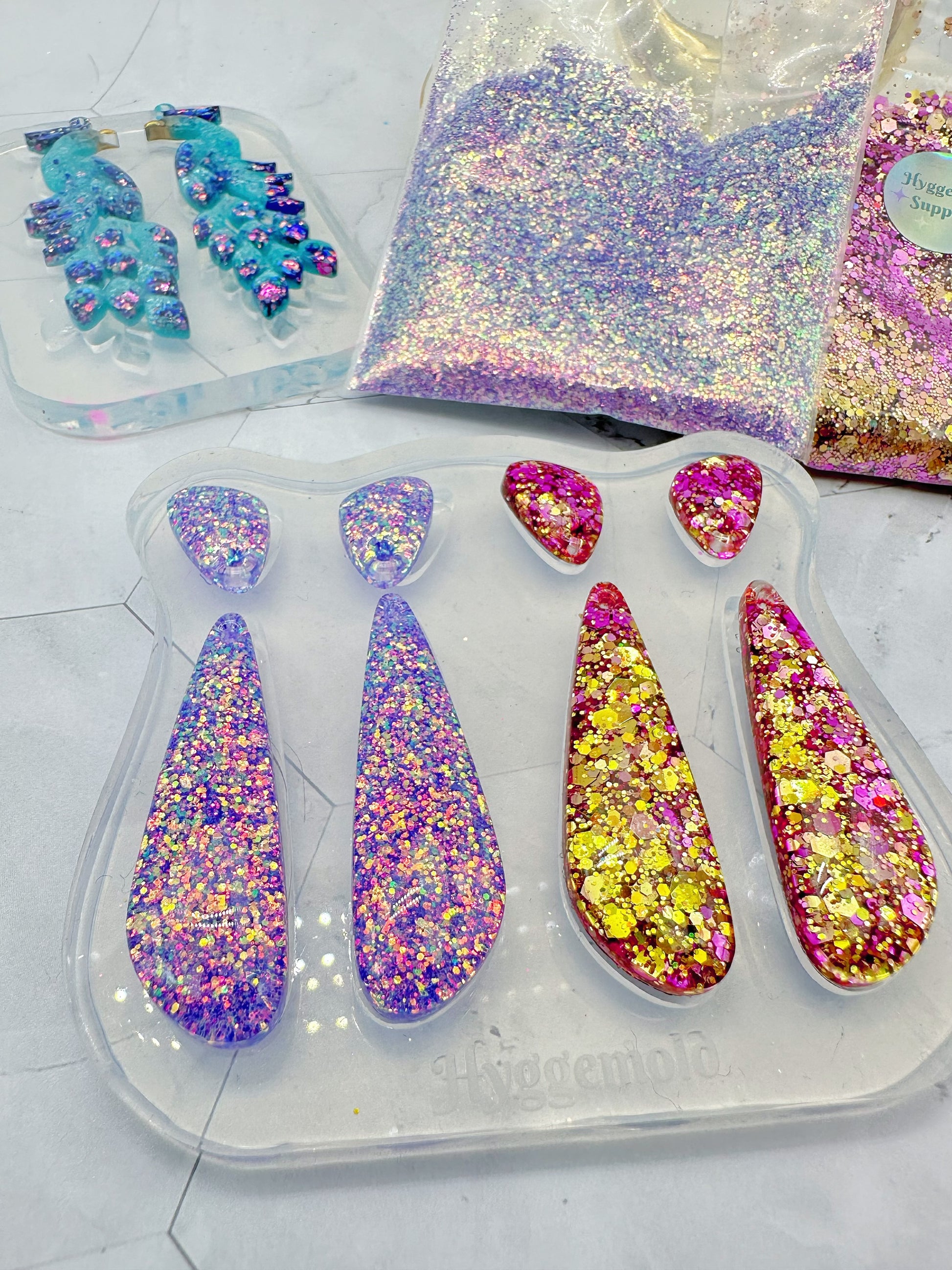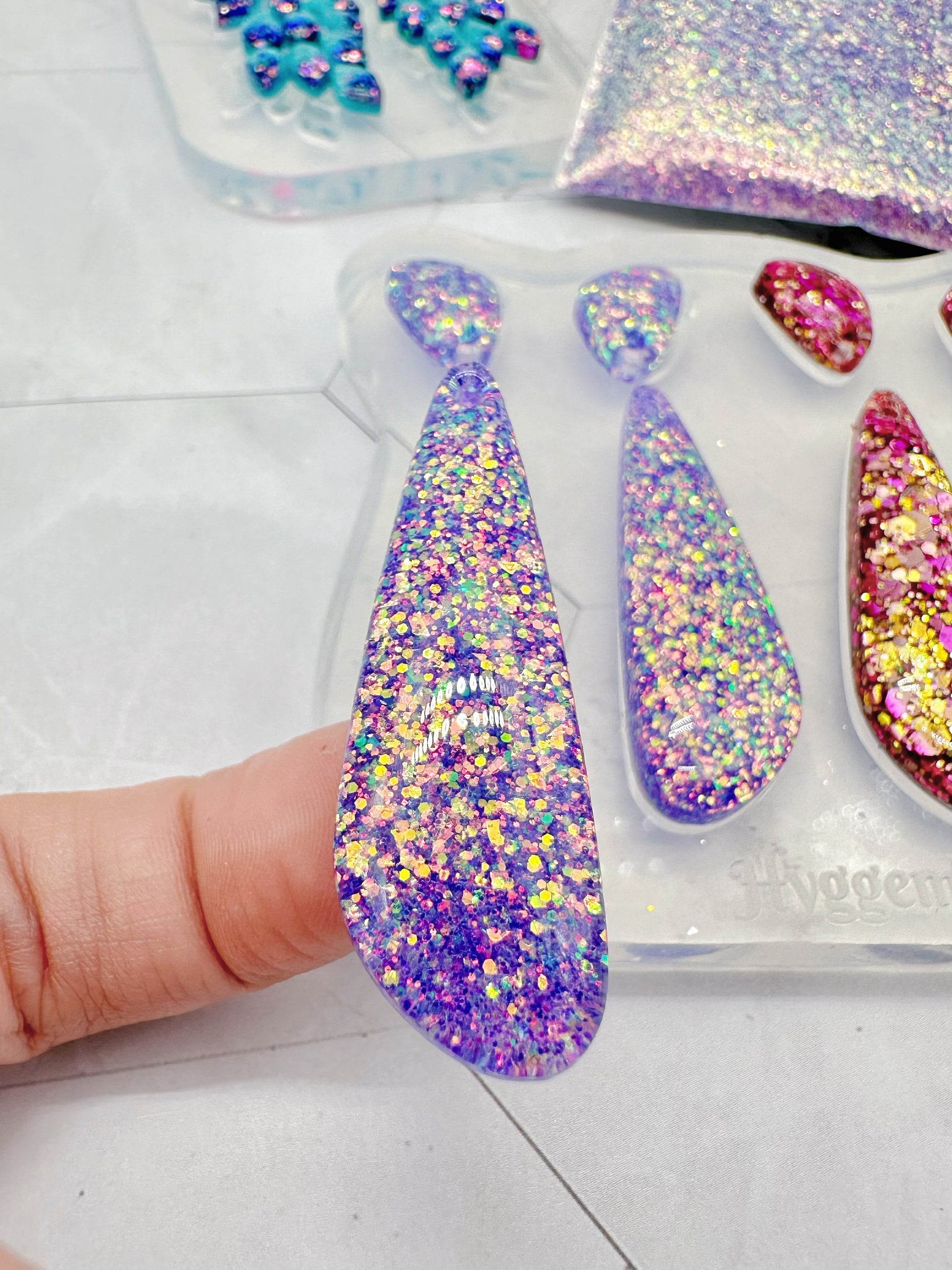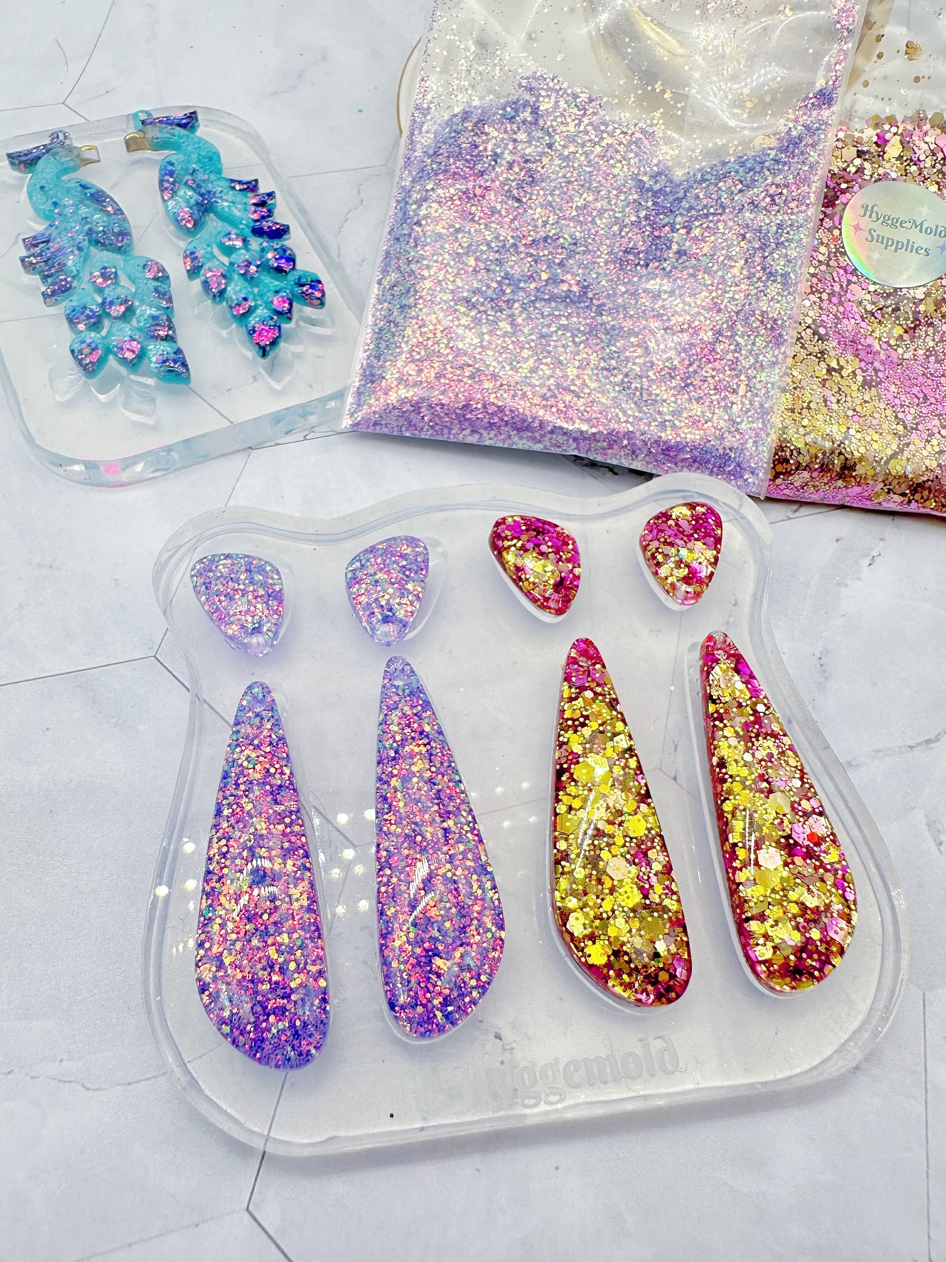 Although colored silicone molds with mica or glitter are very attractive, we usually don't recommend them because clear silicone molds give you a better vision as to what's going on inside e.g. trapped bubbles and so are more practical for resin artists. However, if you would like to get a colored mold, we have the pigment needed. Please contact us for more details.
