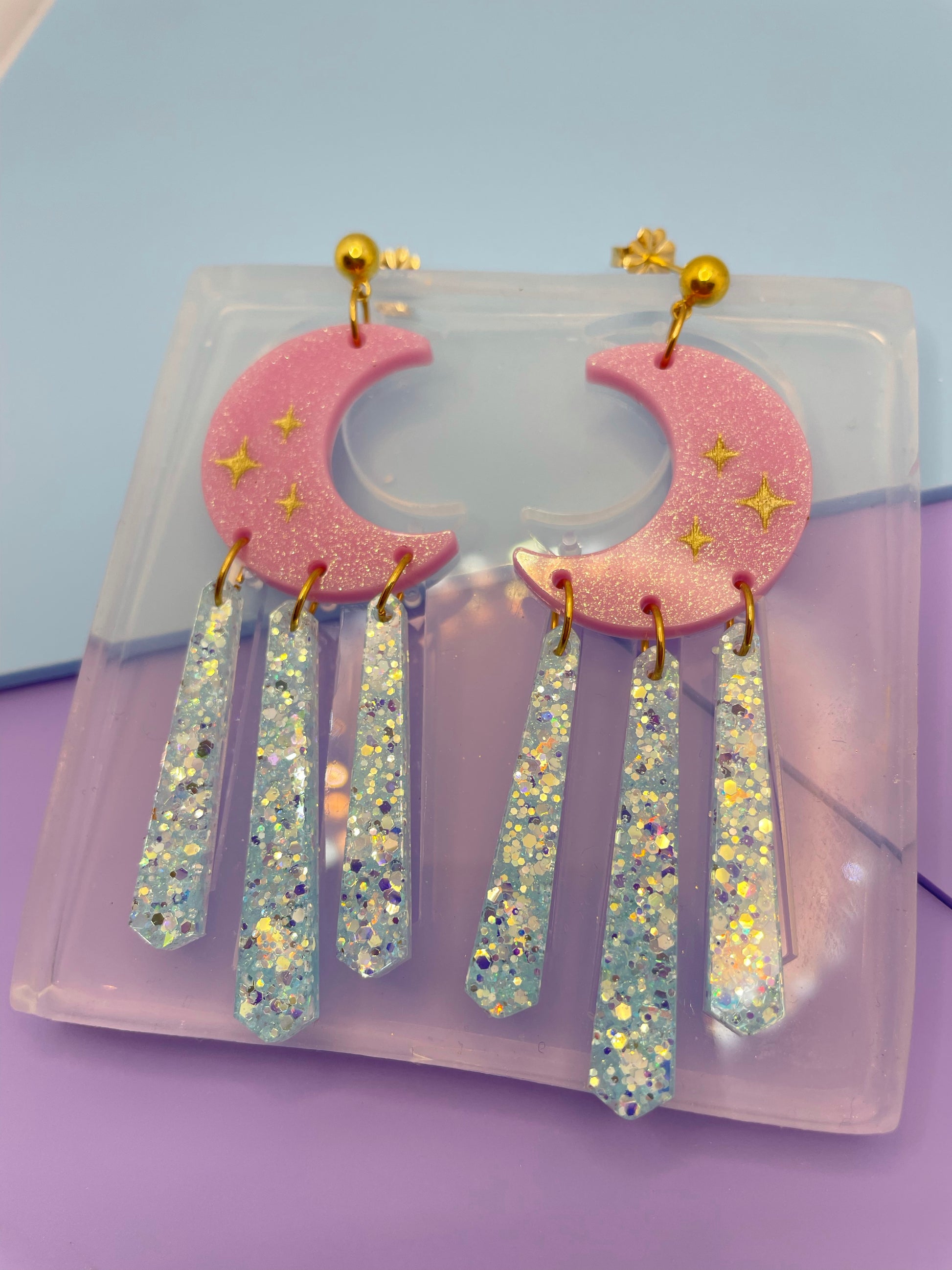 Sparkling Moon Celestial Theme Dangle Earring Mold