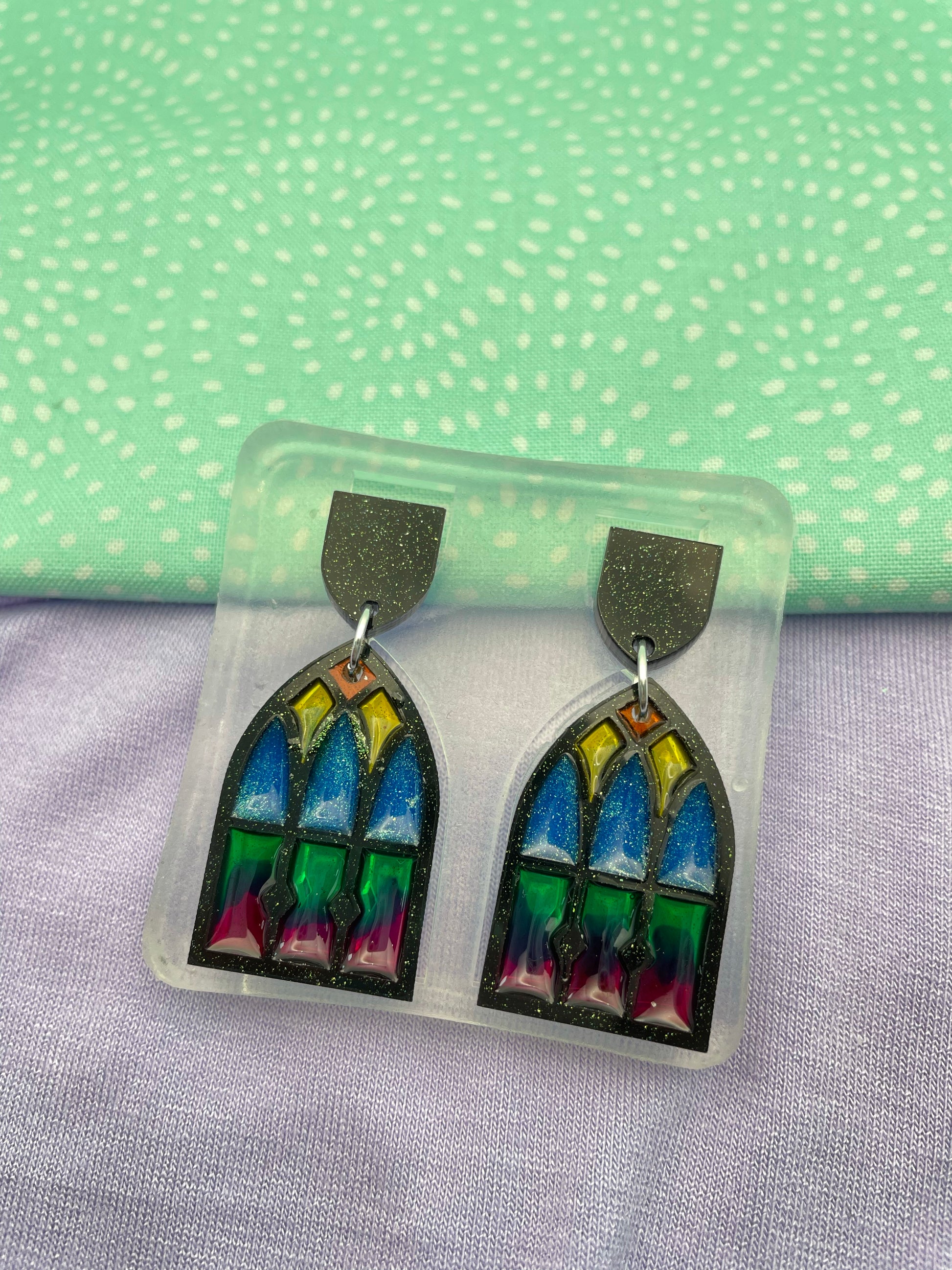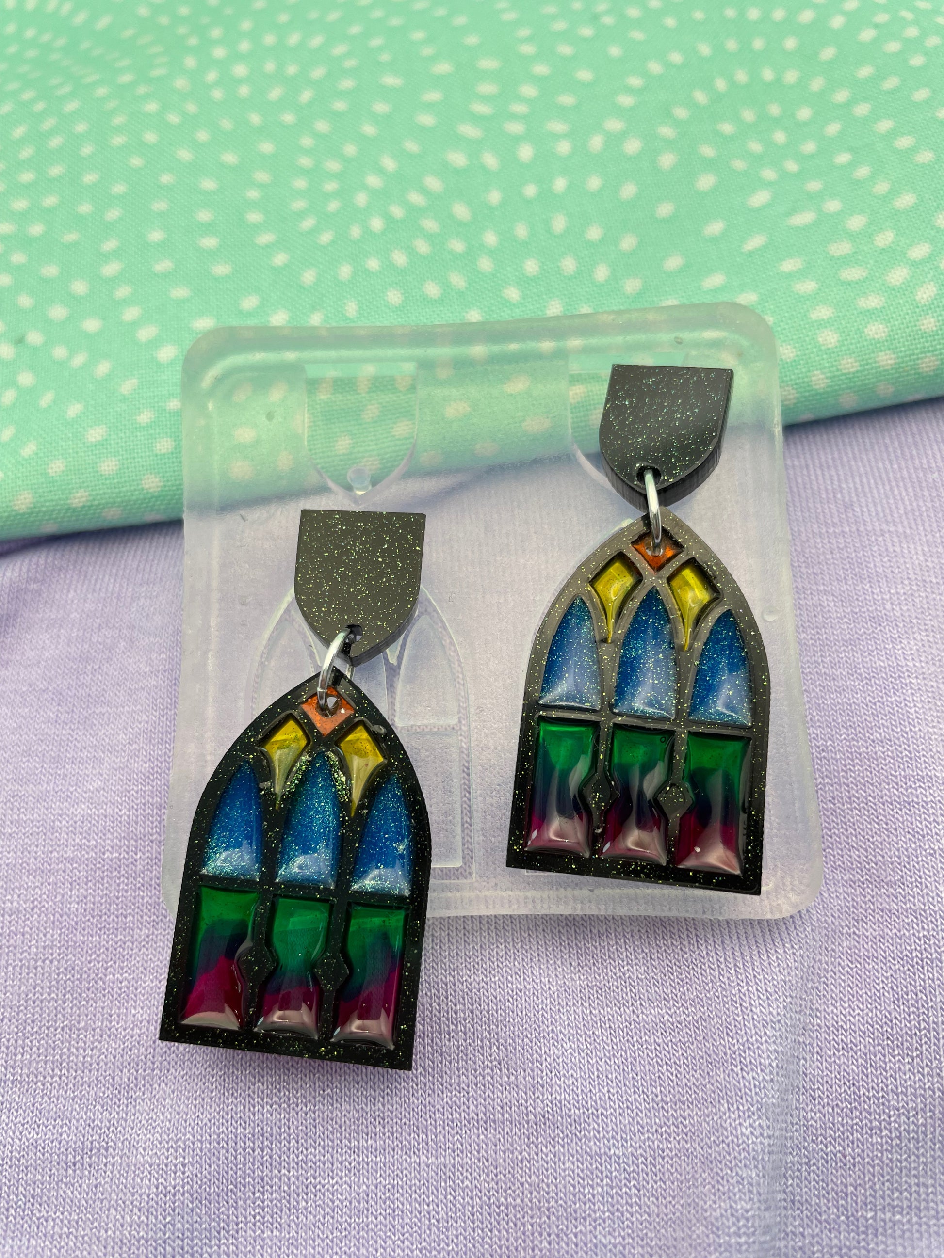 Stained glass Cathedral window frame dangle earring mold