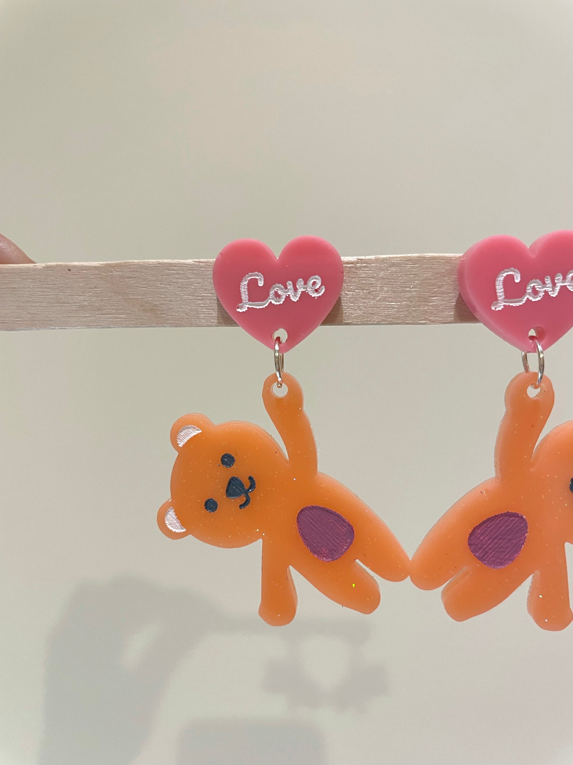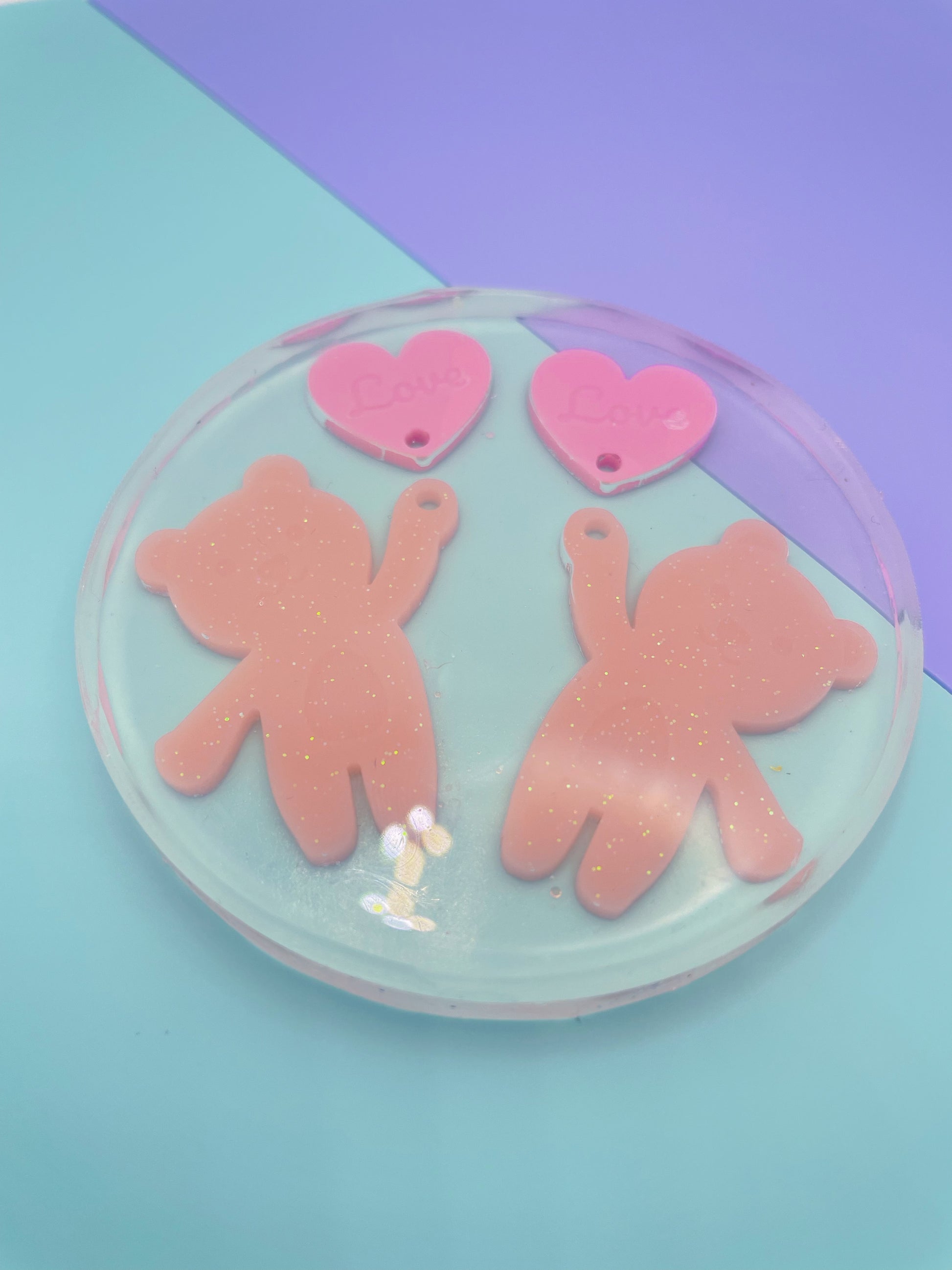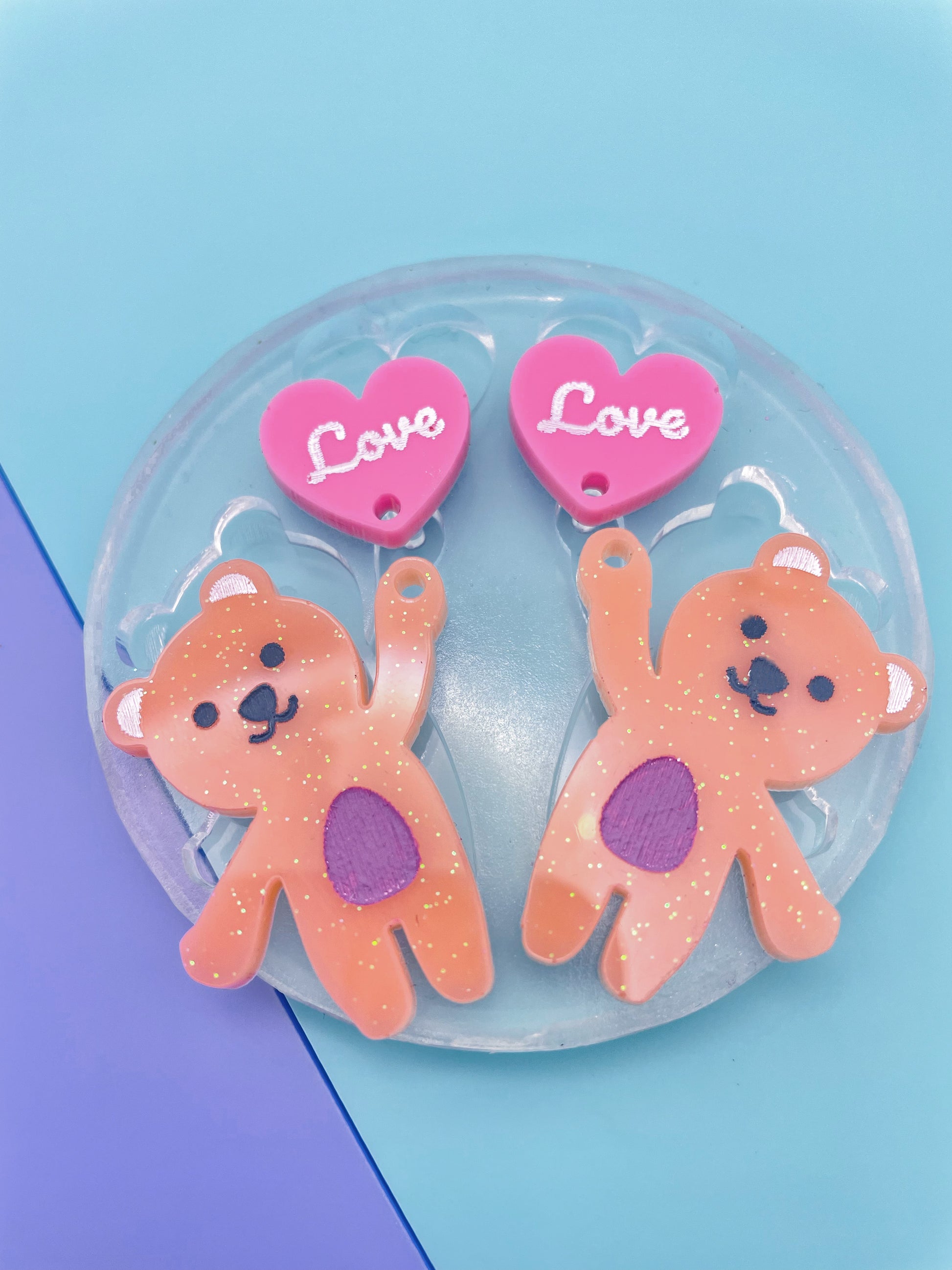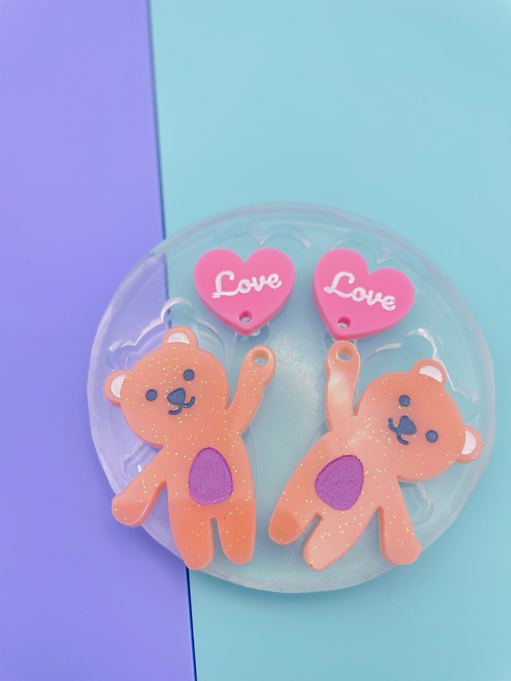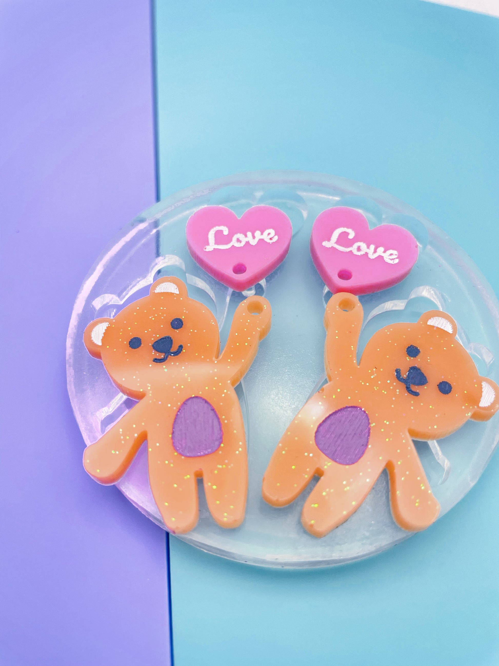 Valentines Heart Balloon Teddy Bear Dangle Earring Mold