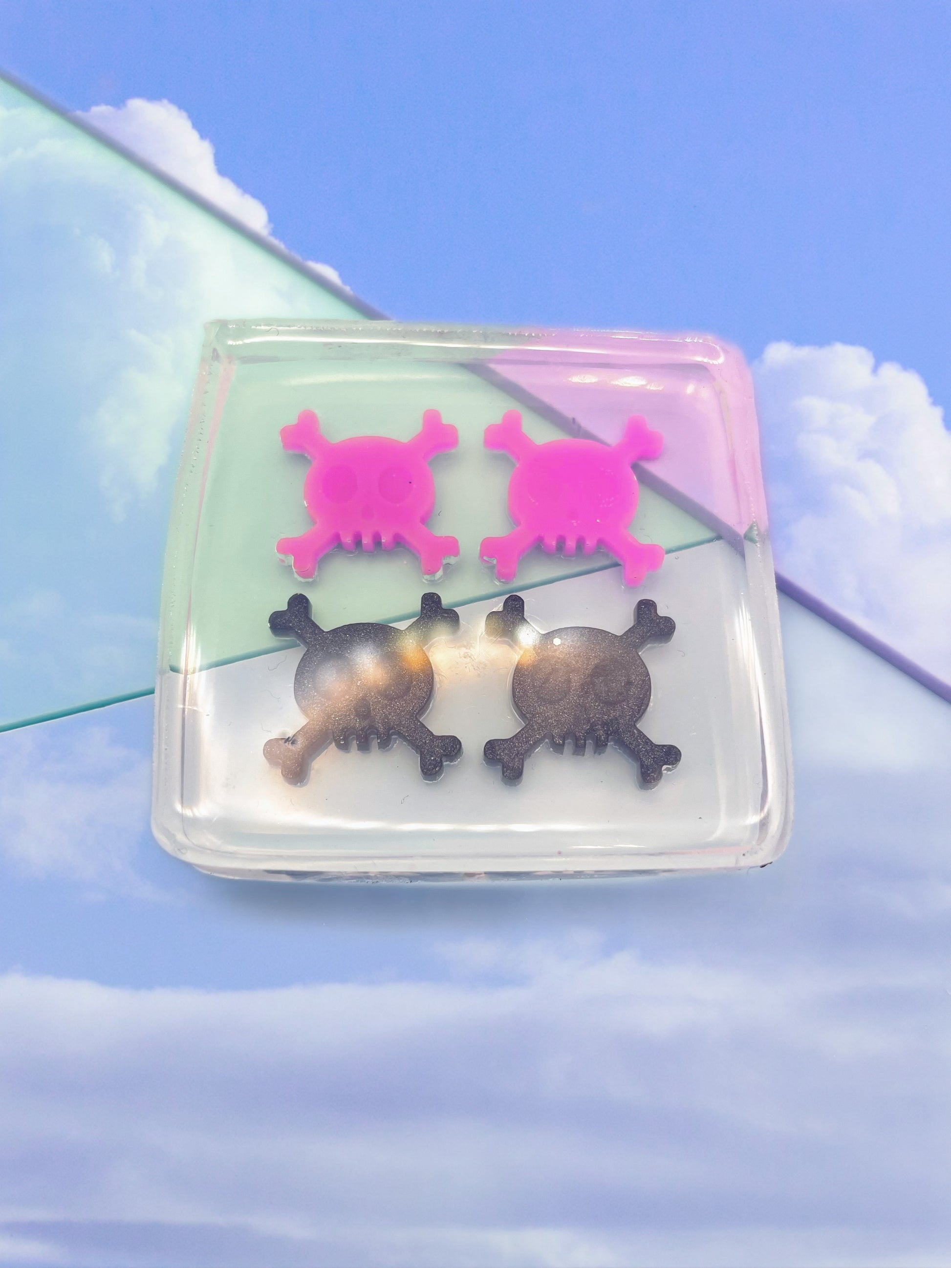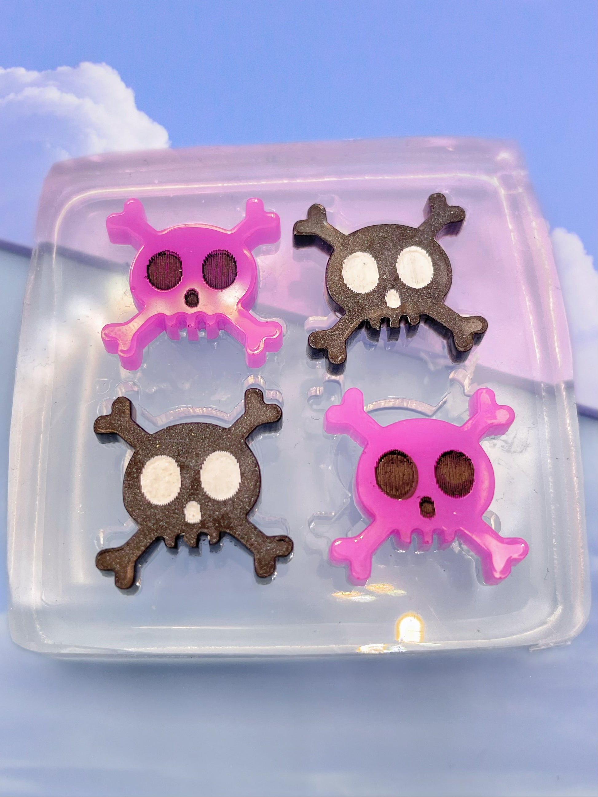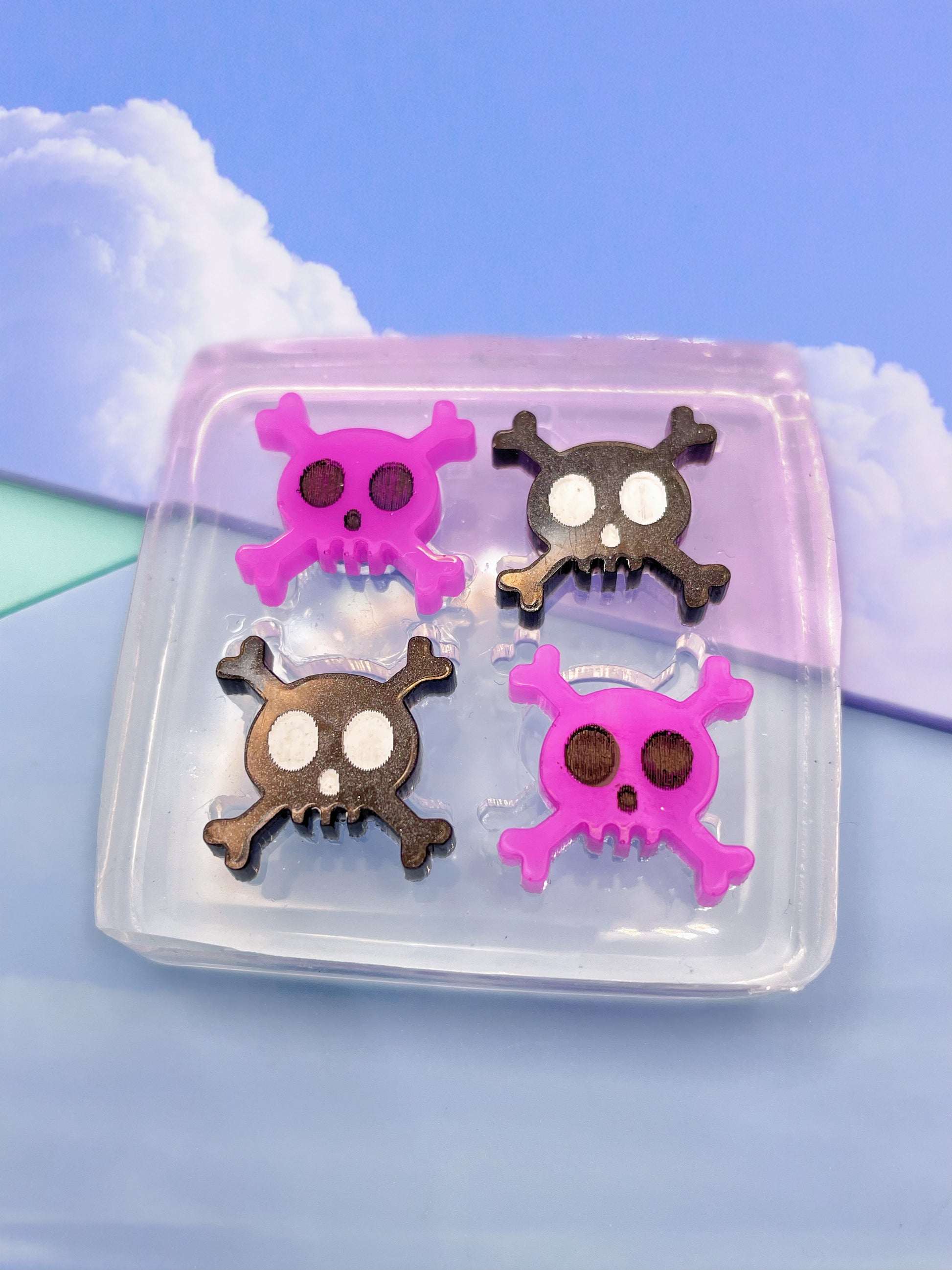 1.5 cm Skull Crossbones Skeleton Stud Earring Mold Halloween Goth clear silicone mould