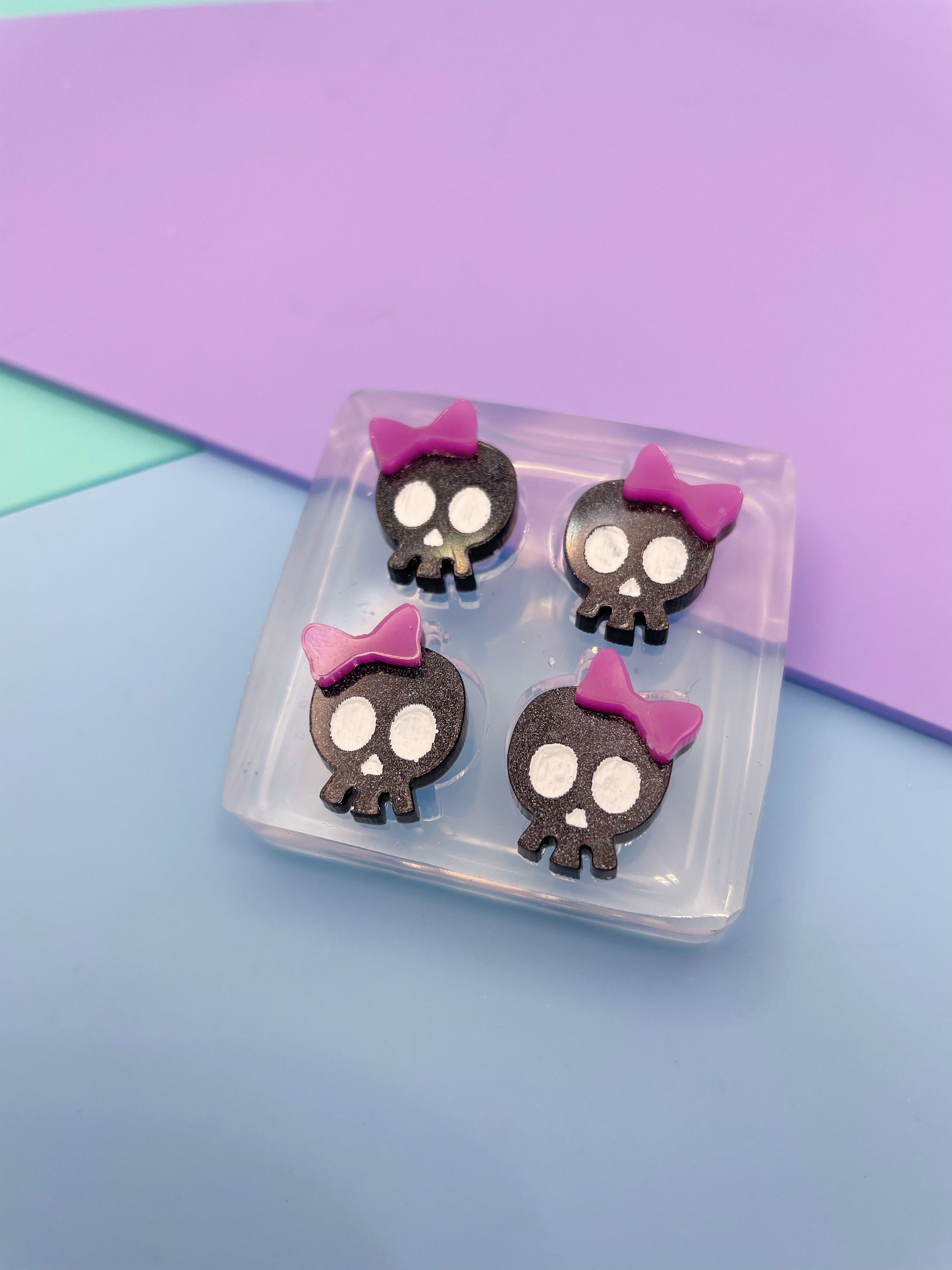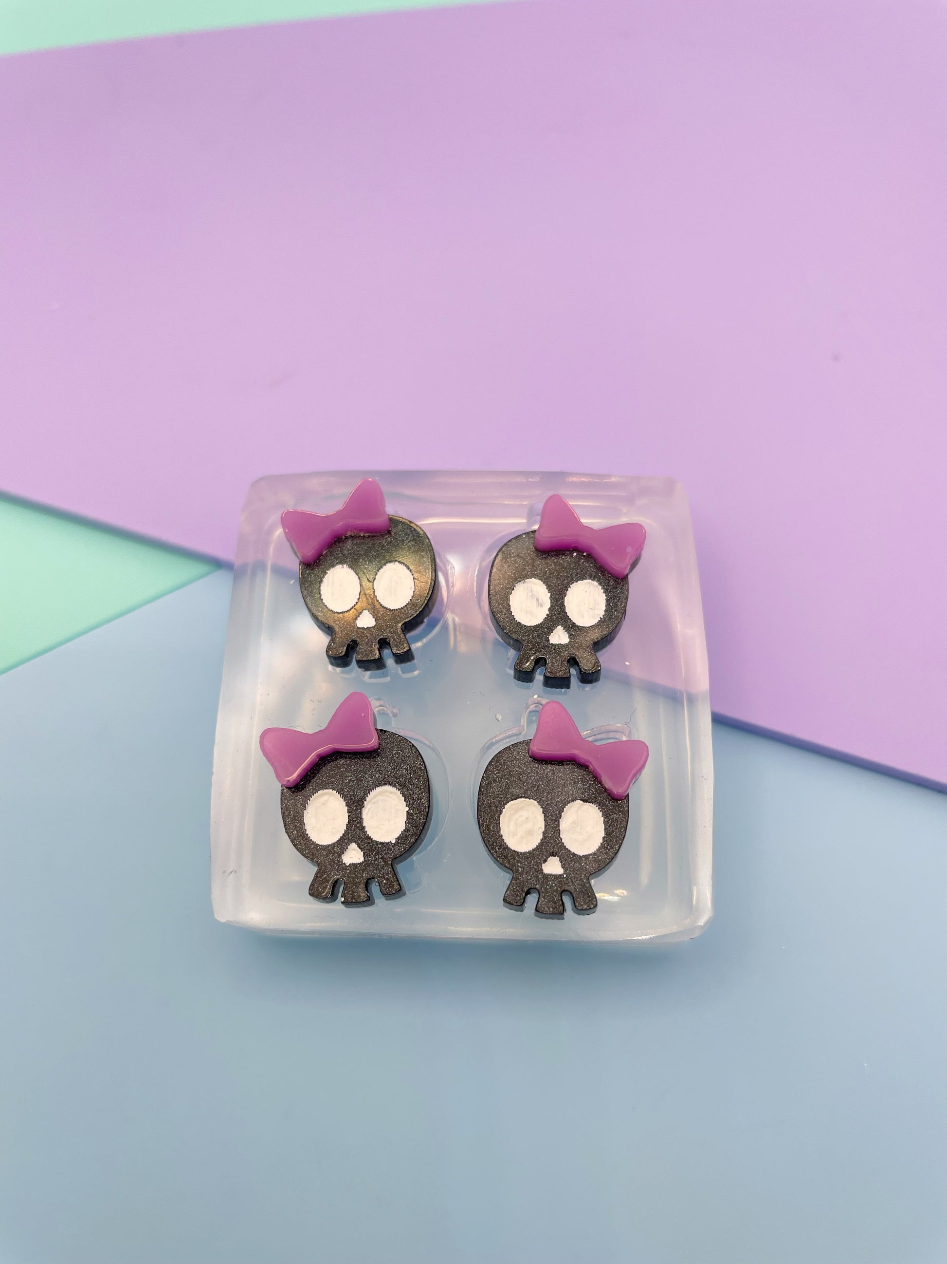 1.7 cm Mini Ribbon Skull Stud Earring Mold Halloween