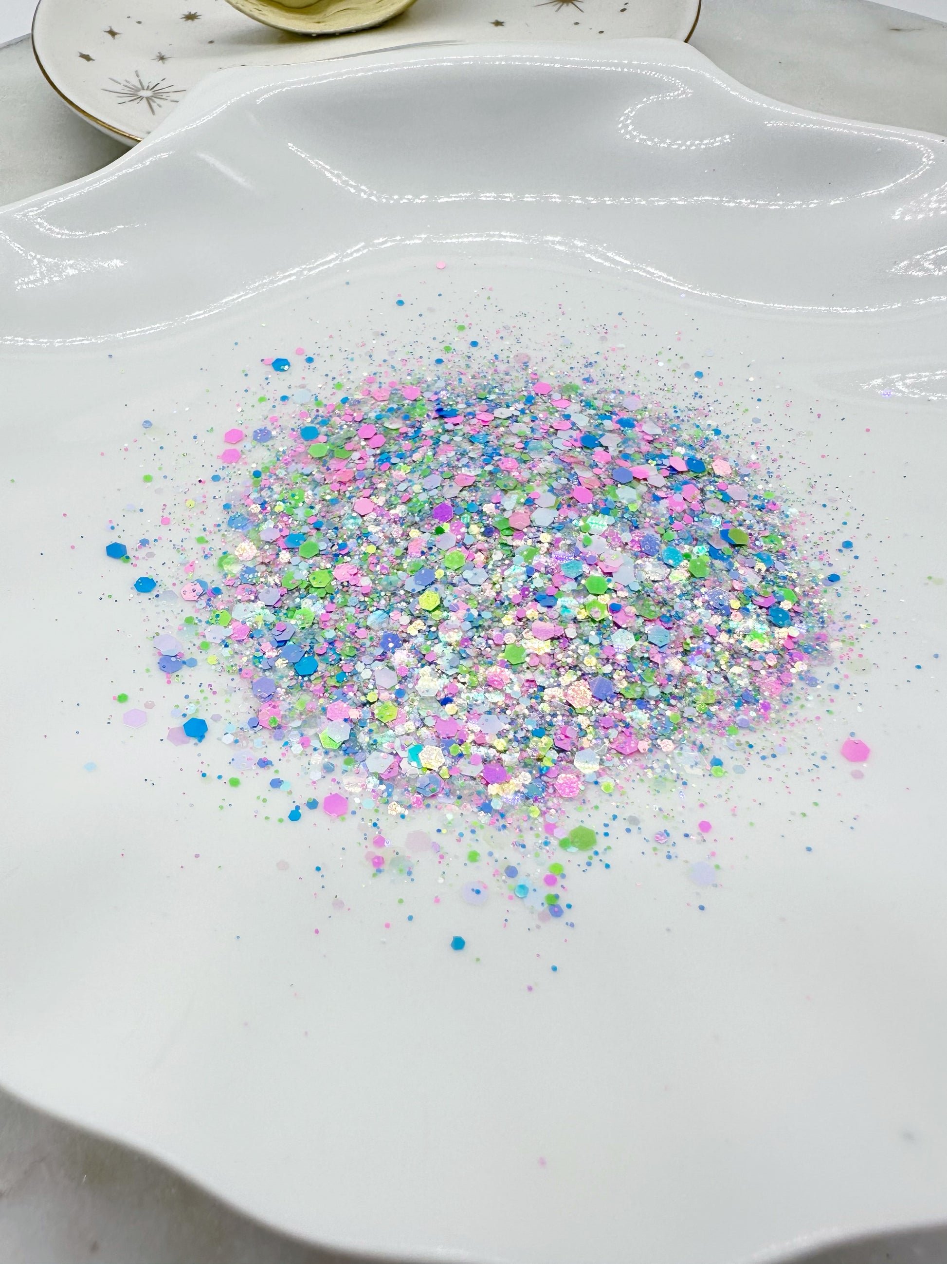Pastel Pearls- pearly white glitter reflecting pastel pink and blue