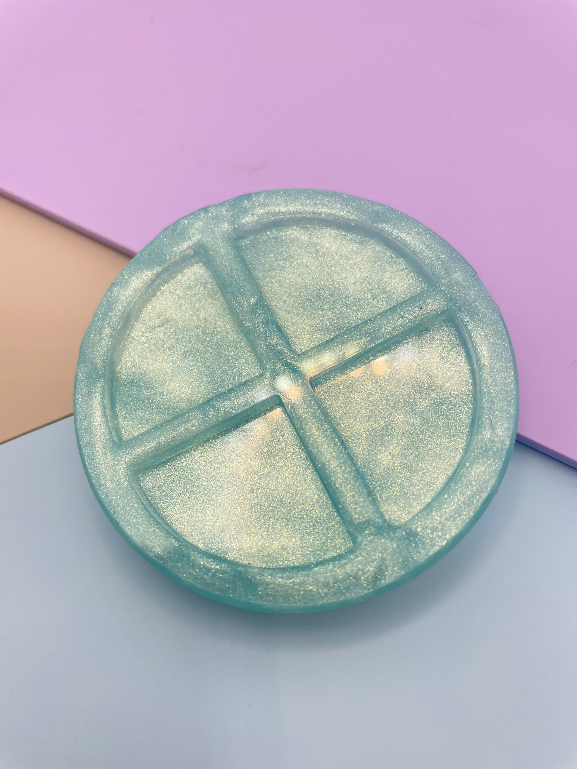 Although colored silicone molds with mica or glitter are very attractive, we usually don't recommend them because clear silicone molds give you a better vision as to what's going on inside e.g. trapped bubbles and so are more practical for resin artists. However, if you would like to get a colored mold, we have the pigment needed. Please contact us for more details.