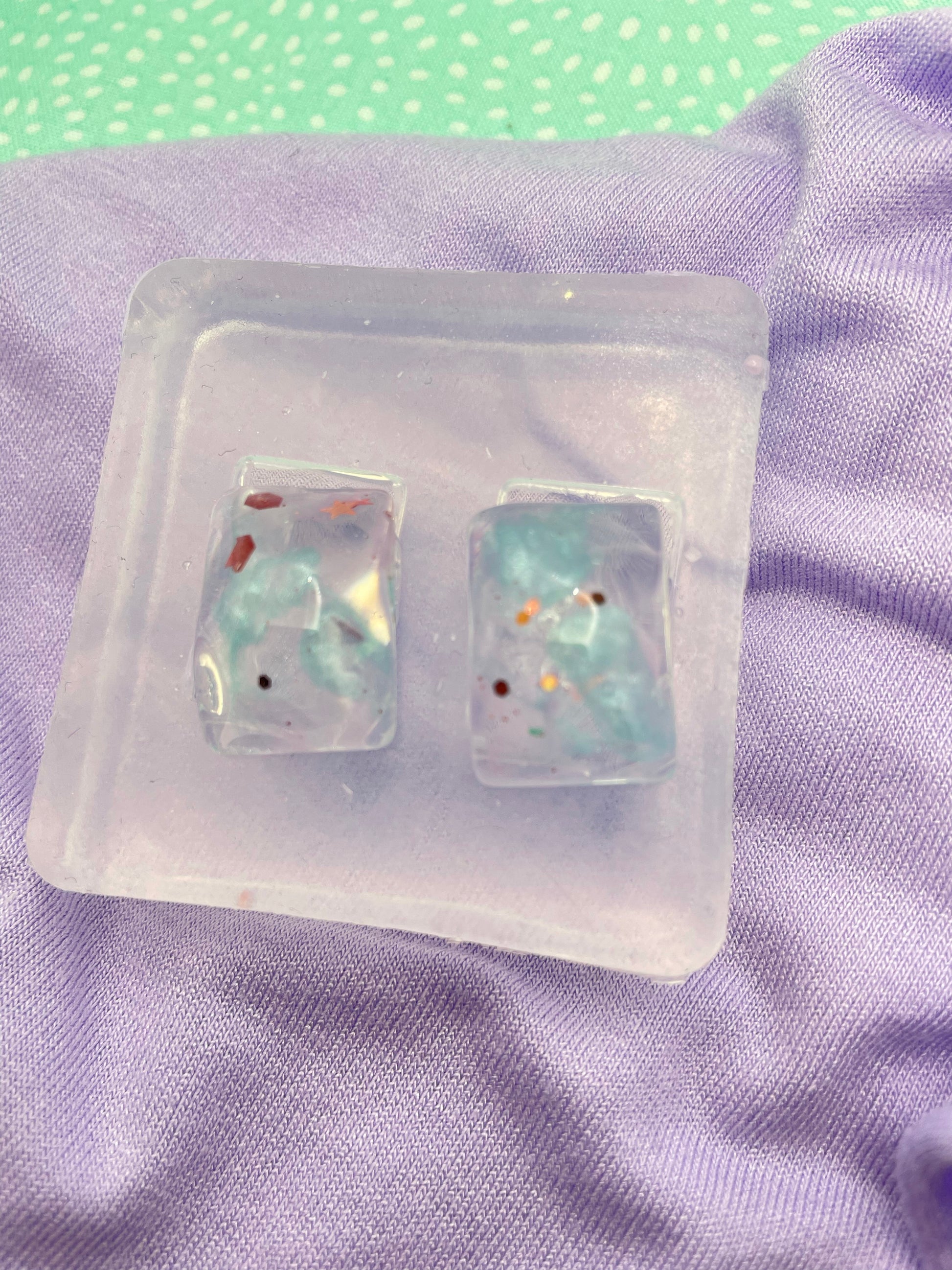 Although colored silicone molds with mica or glitter are very attractive, we usually don't recommend them because clear silicone molds give you a better vision as to what's going on inside e.g. trapped bubbles and so are more practical for resin artists. However, if you would like to get a colored mold, we have the pigment needed. Please contact us for more details.