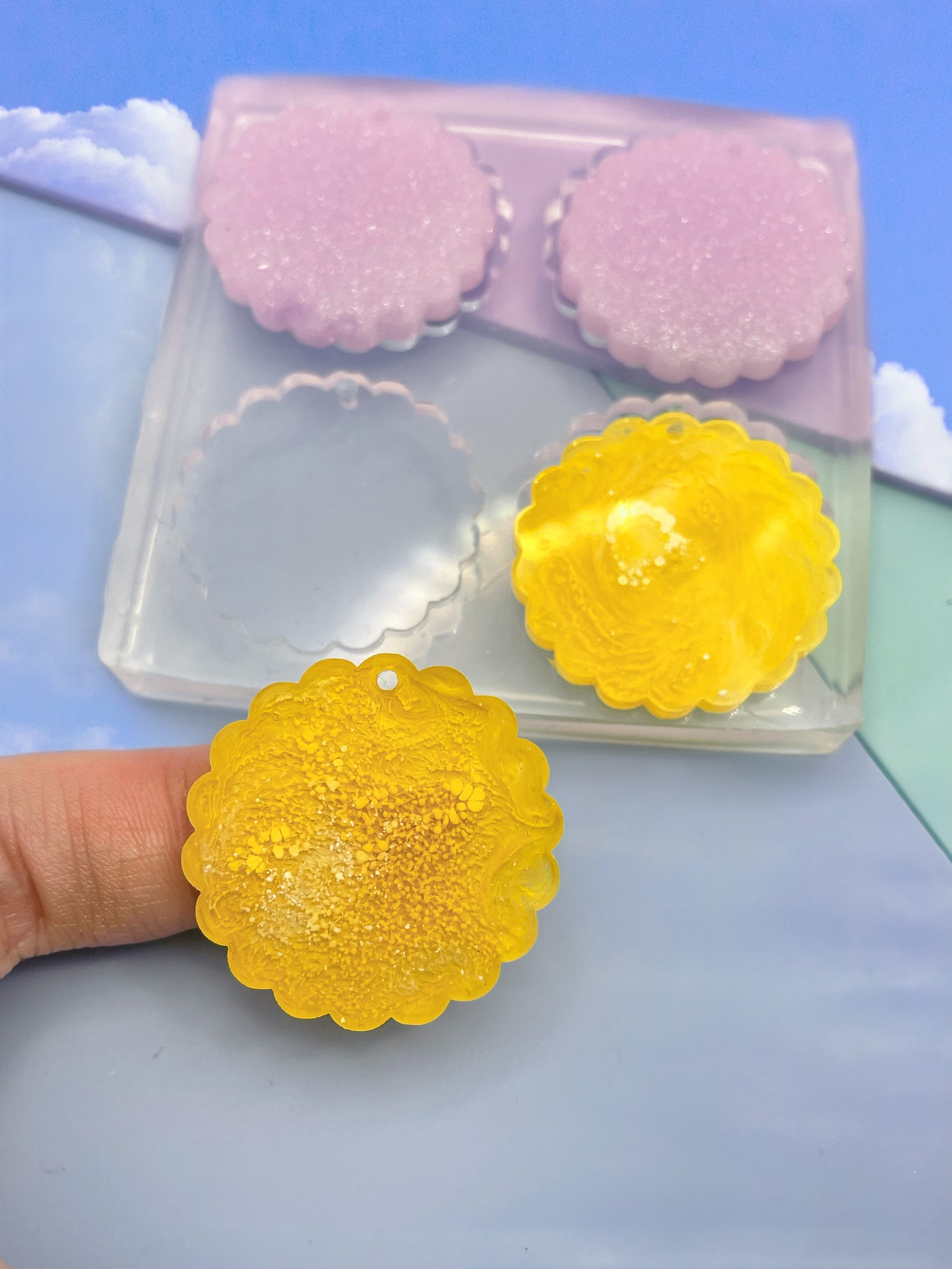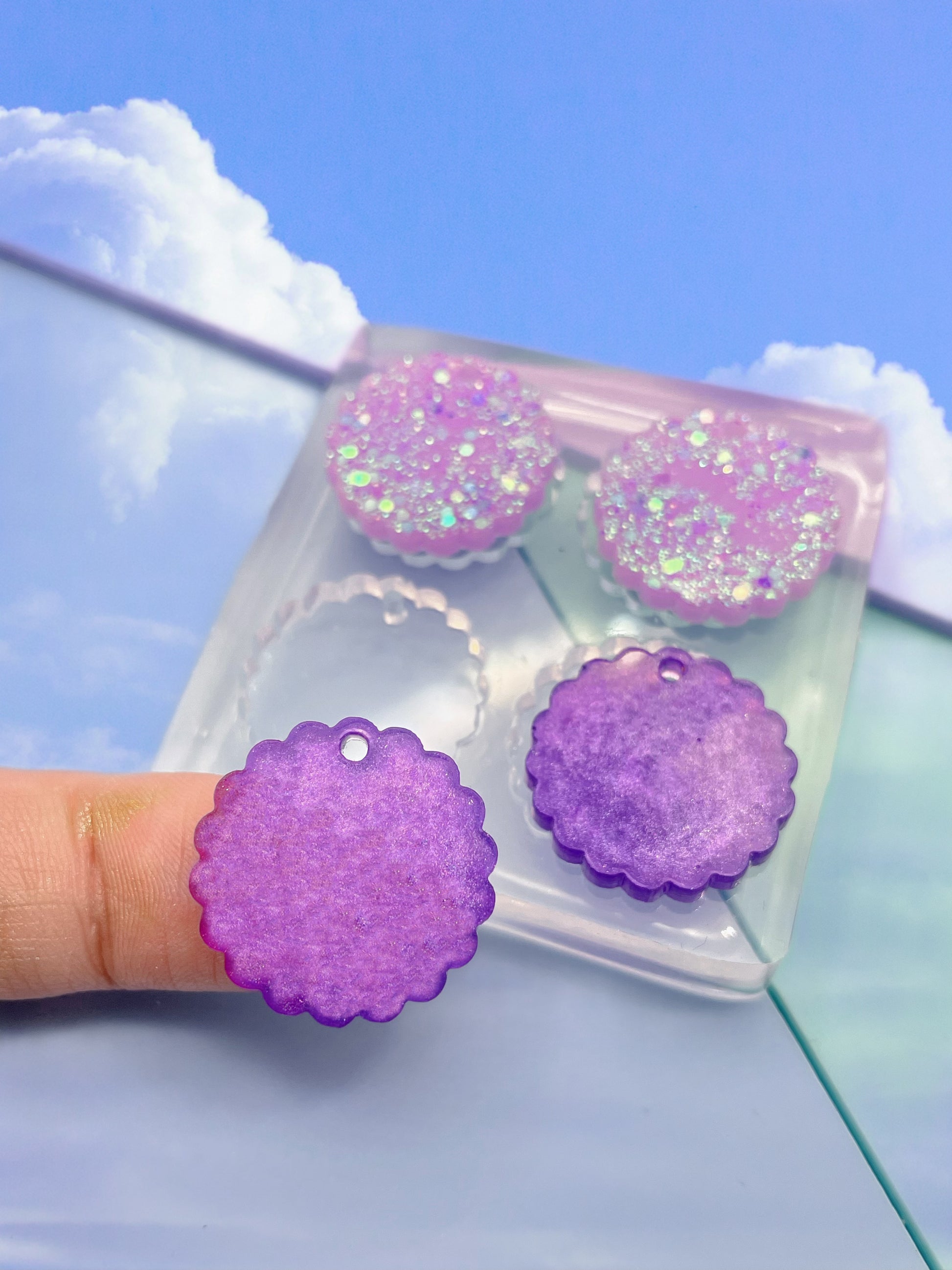 2/3 cm Predrilled Scalloped Circle Dangle Earring Mold Cookie Clear Silicone Mould