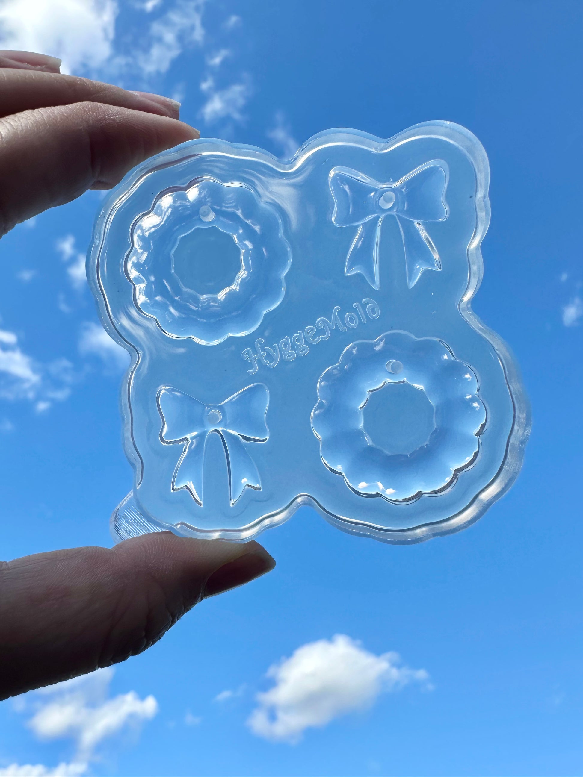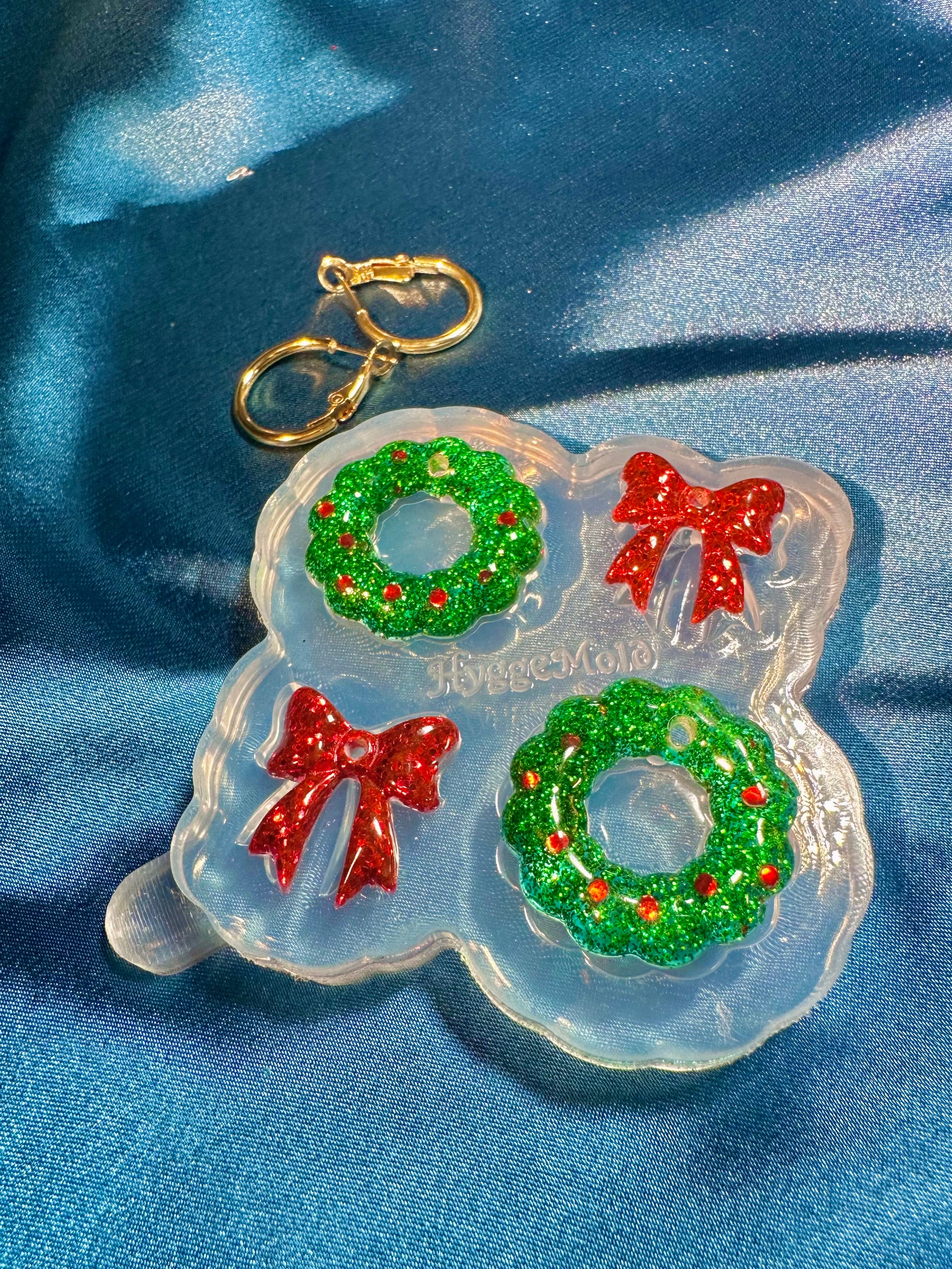 This mold creates 3 cm Christmas wreath dangle earrings layered with a festive ribbon bow, perfectly designed to pair with our Stella hoop findings for a stylish holiday look. Because of the thicker design of the earrings, we recommend slightly bigger hoops.