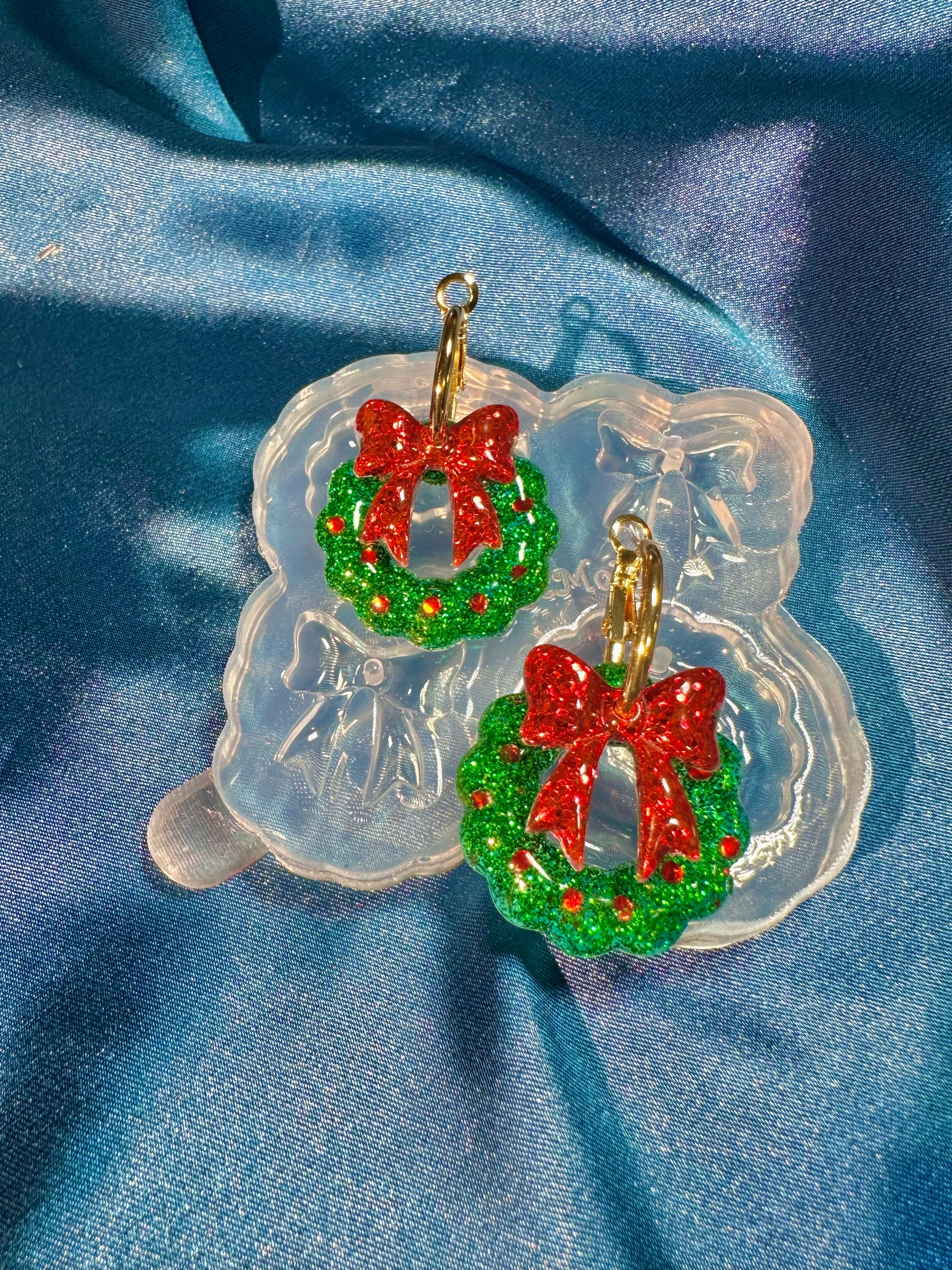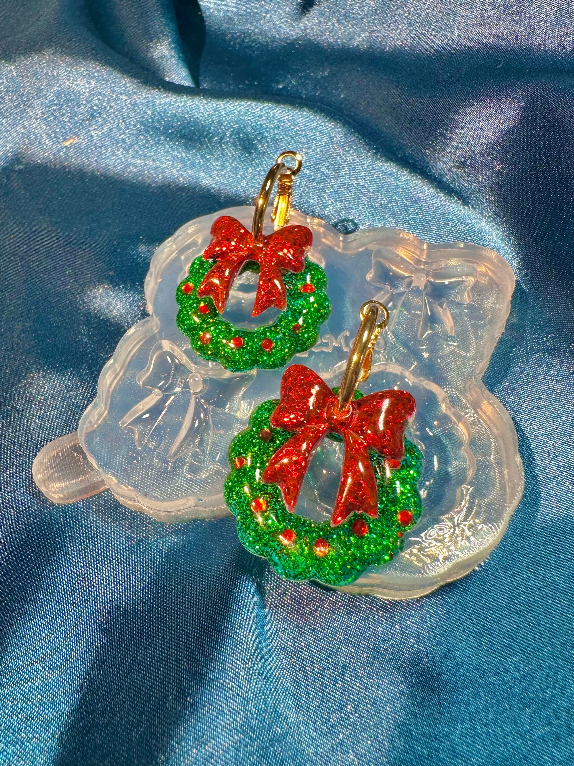 2025 Christmas Wreath Layered with Ribbon Bow Dangle Earring Mold