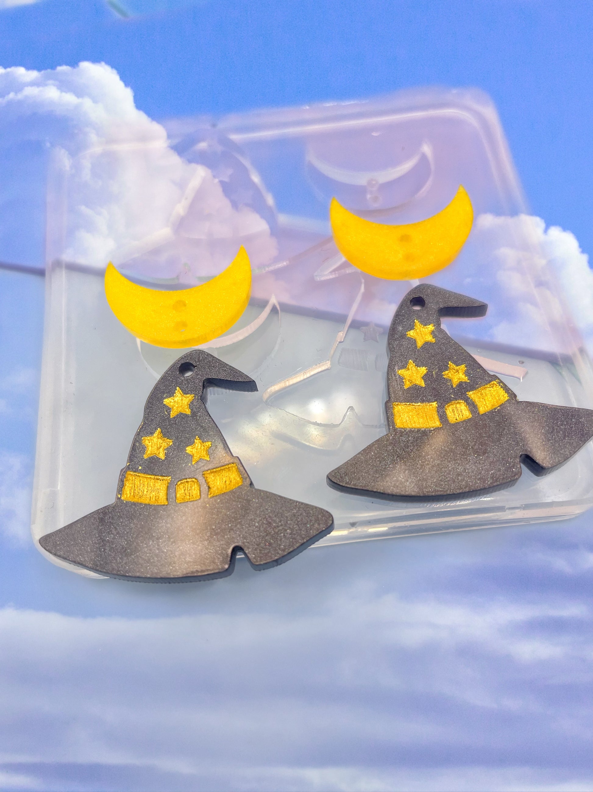 3.5 cm Witch Hat with Crescent Moon Connector Dangle Earring Mold