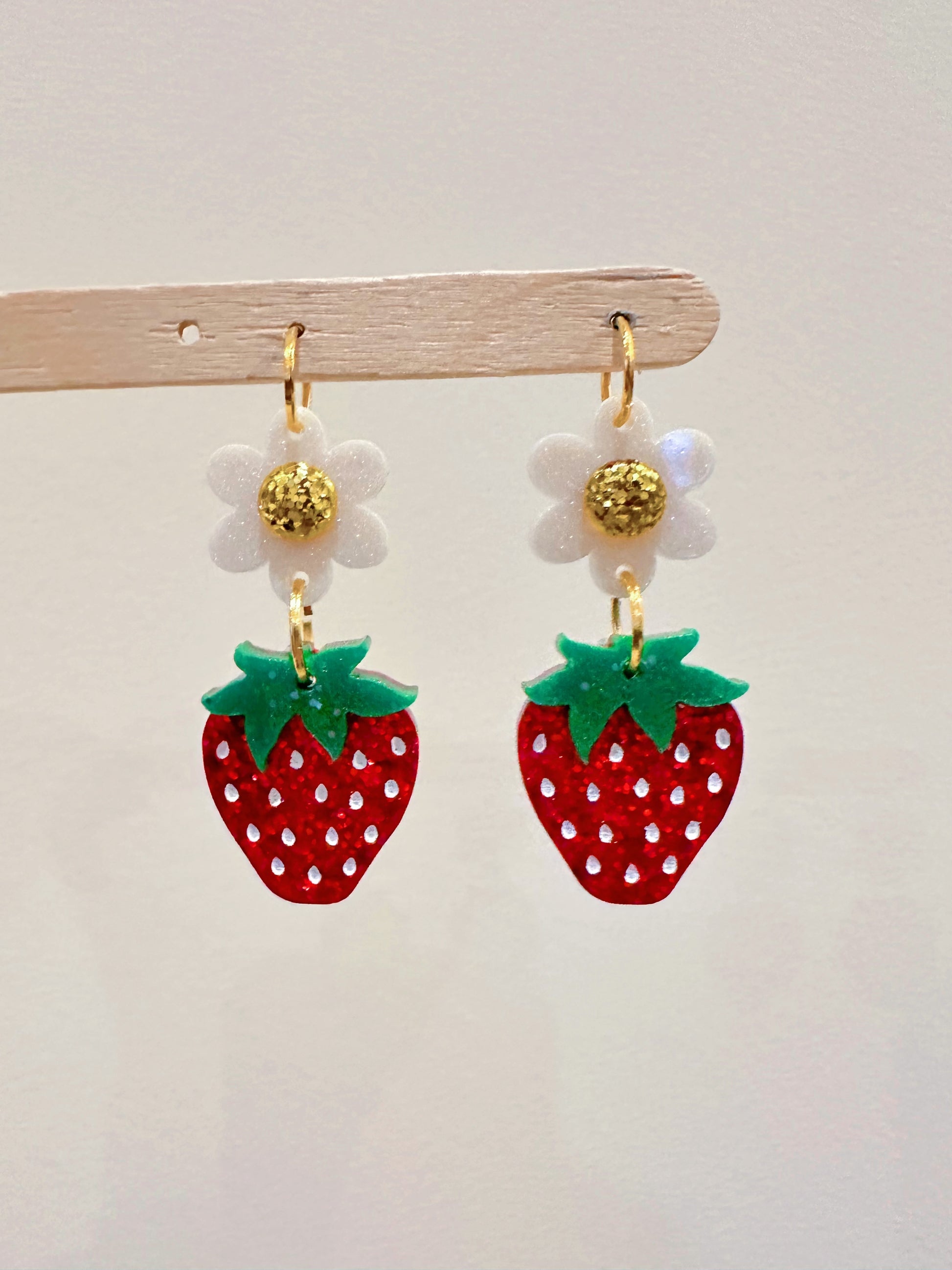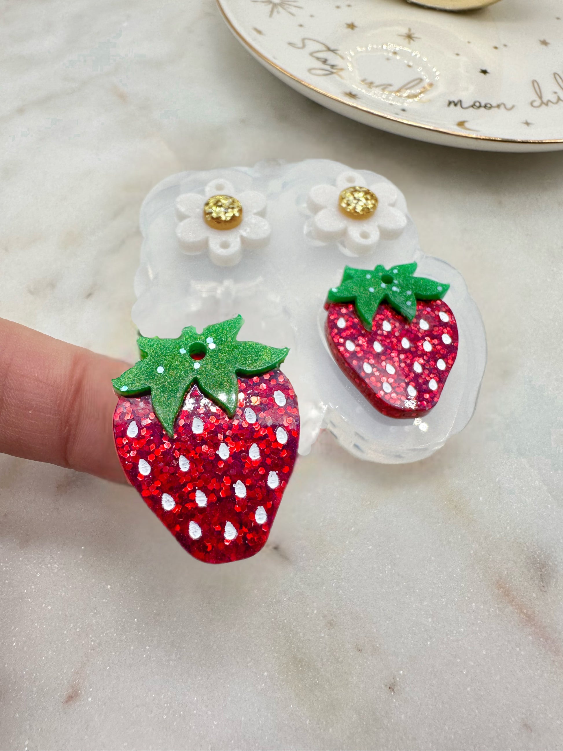 3D Strawberry with Flower Connector Dangle Earring Mold