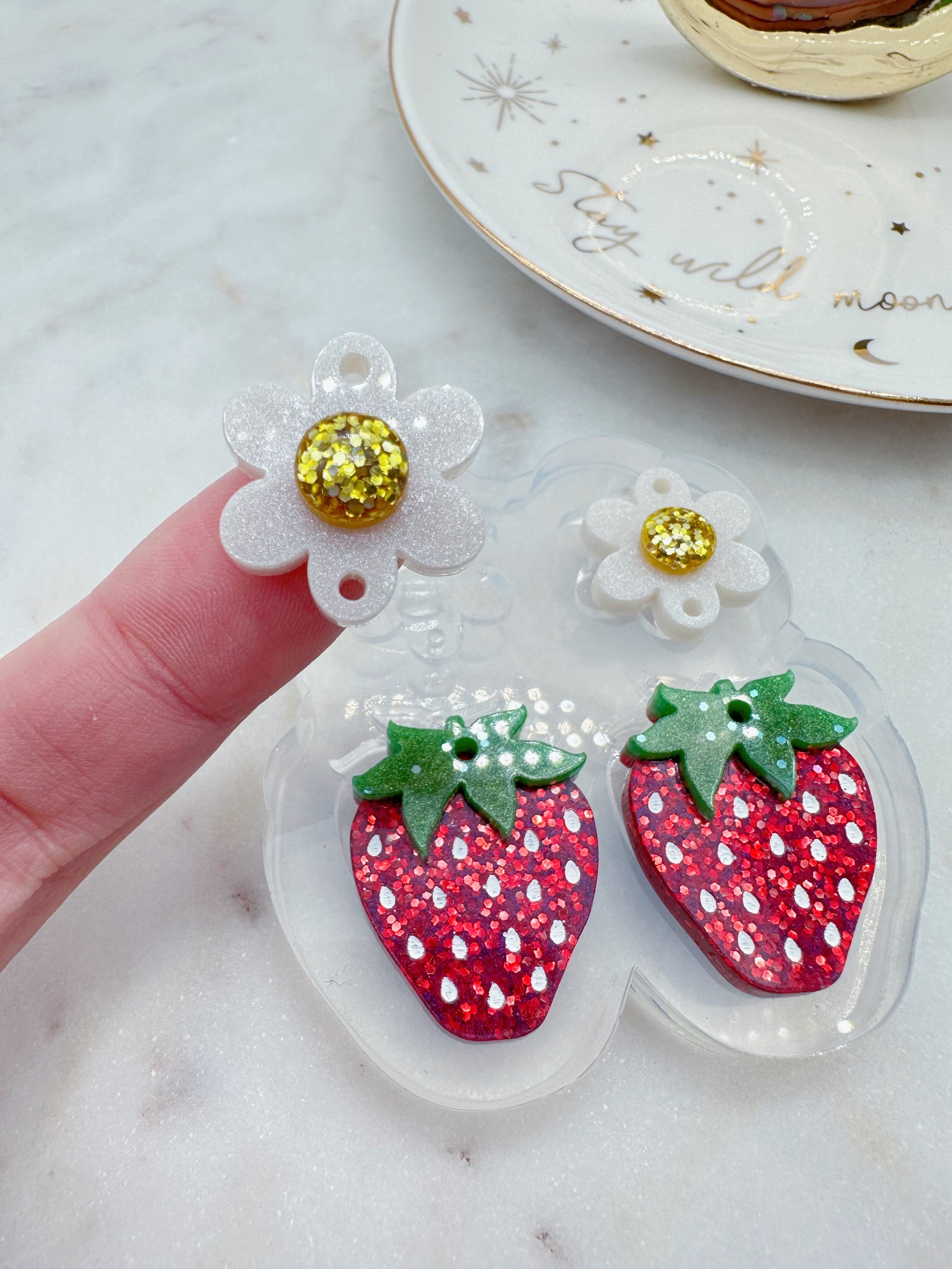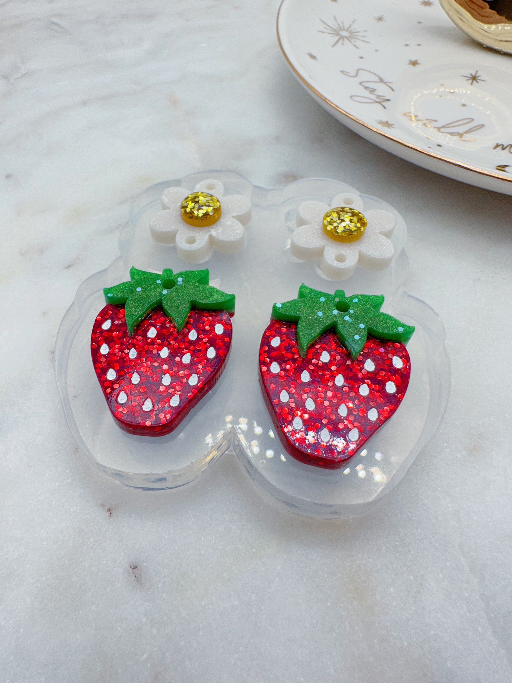 Make beautiful creations with these 3D Strawberry with Flower Connector Dangle Earring Mold! Specialize your style with a luscious combination of a strawberry and flower design, with the strawberry measuring 2.5 cm and 4.7 cm when connected with the flower. Create summery vibes with this perfect spring and summer accessory - because style should never be one-dimensional!