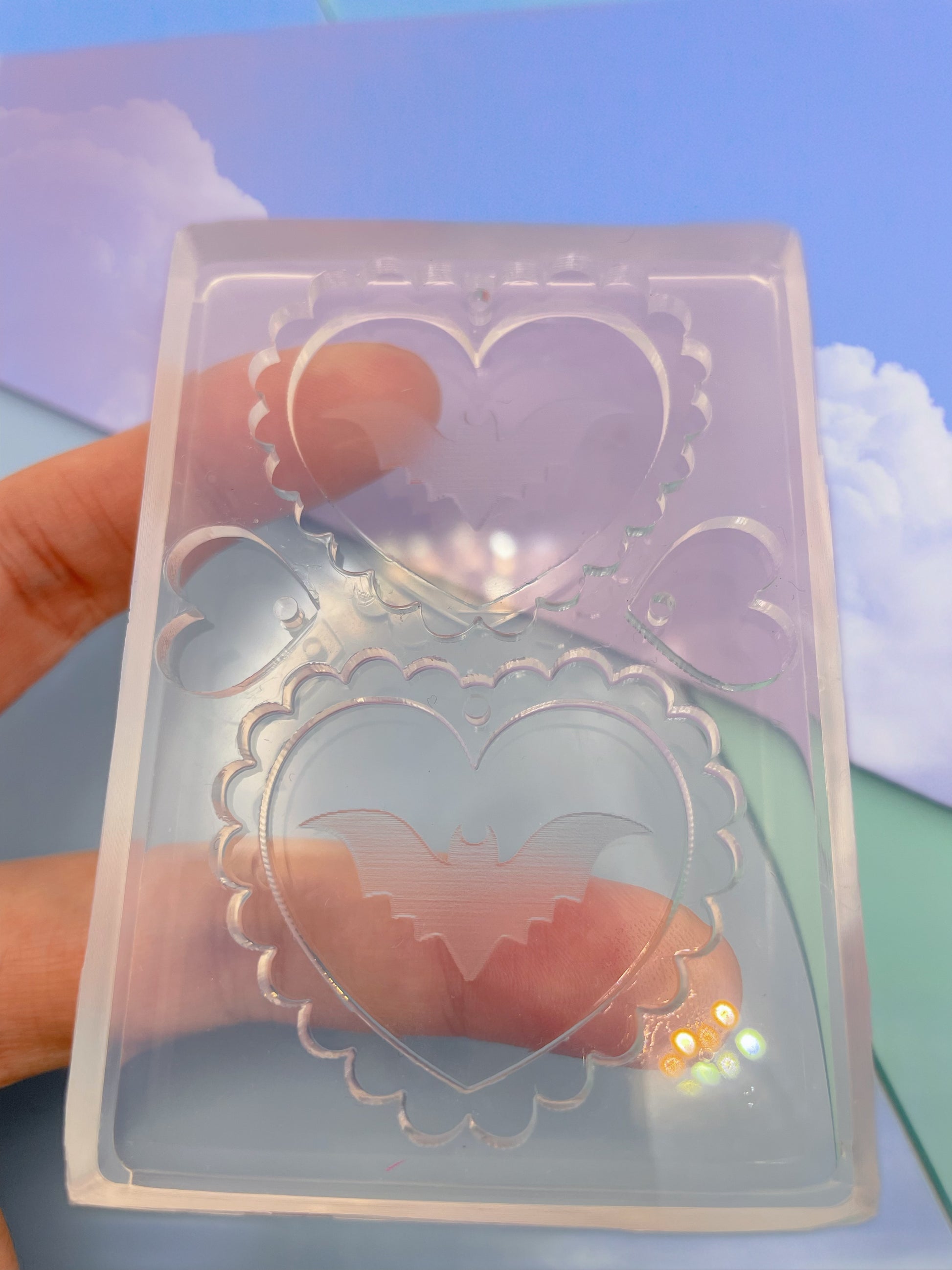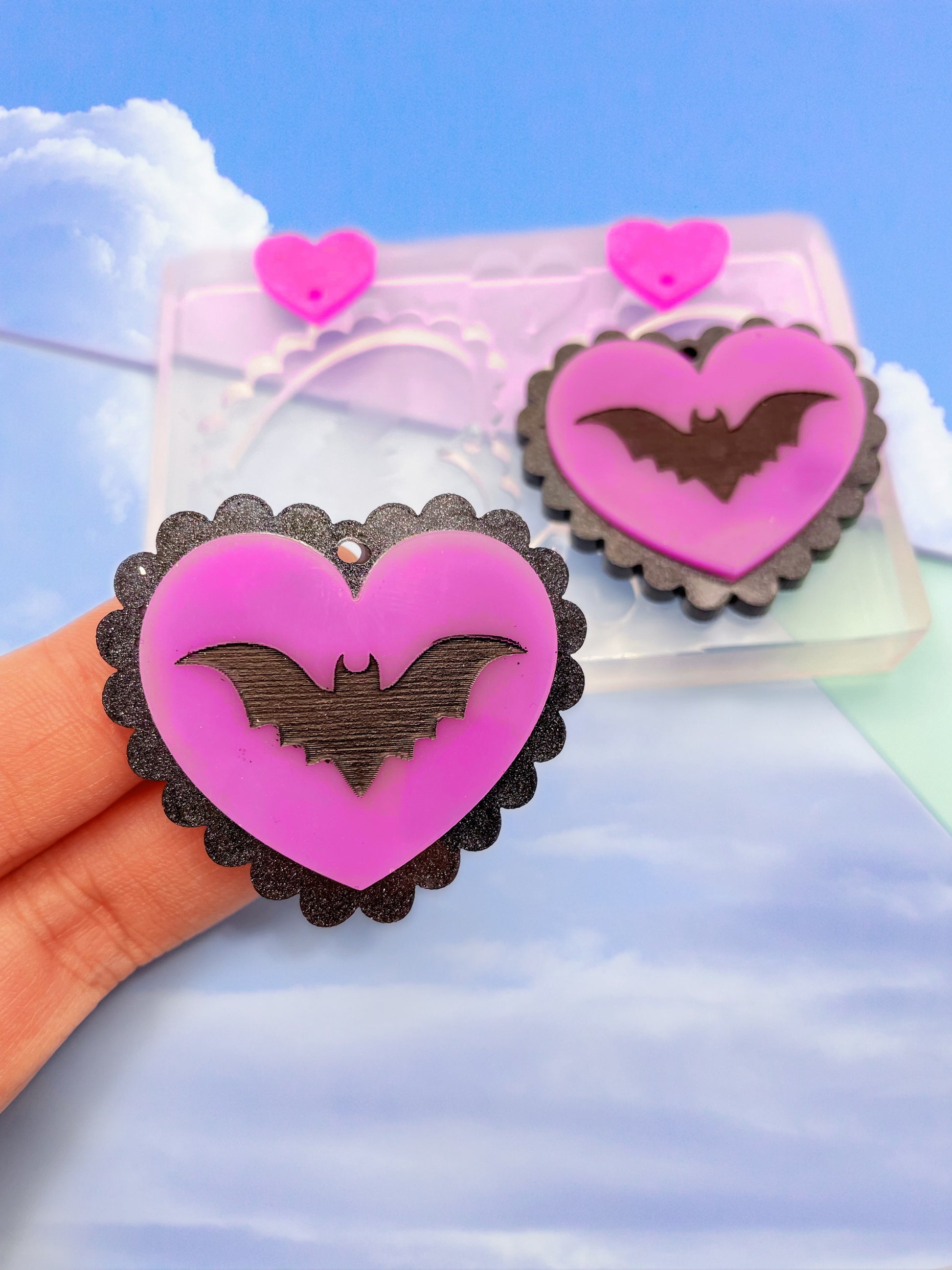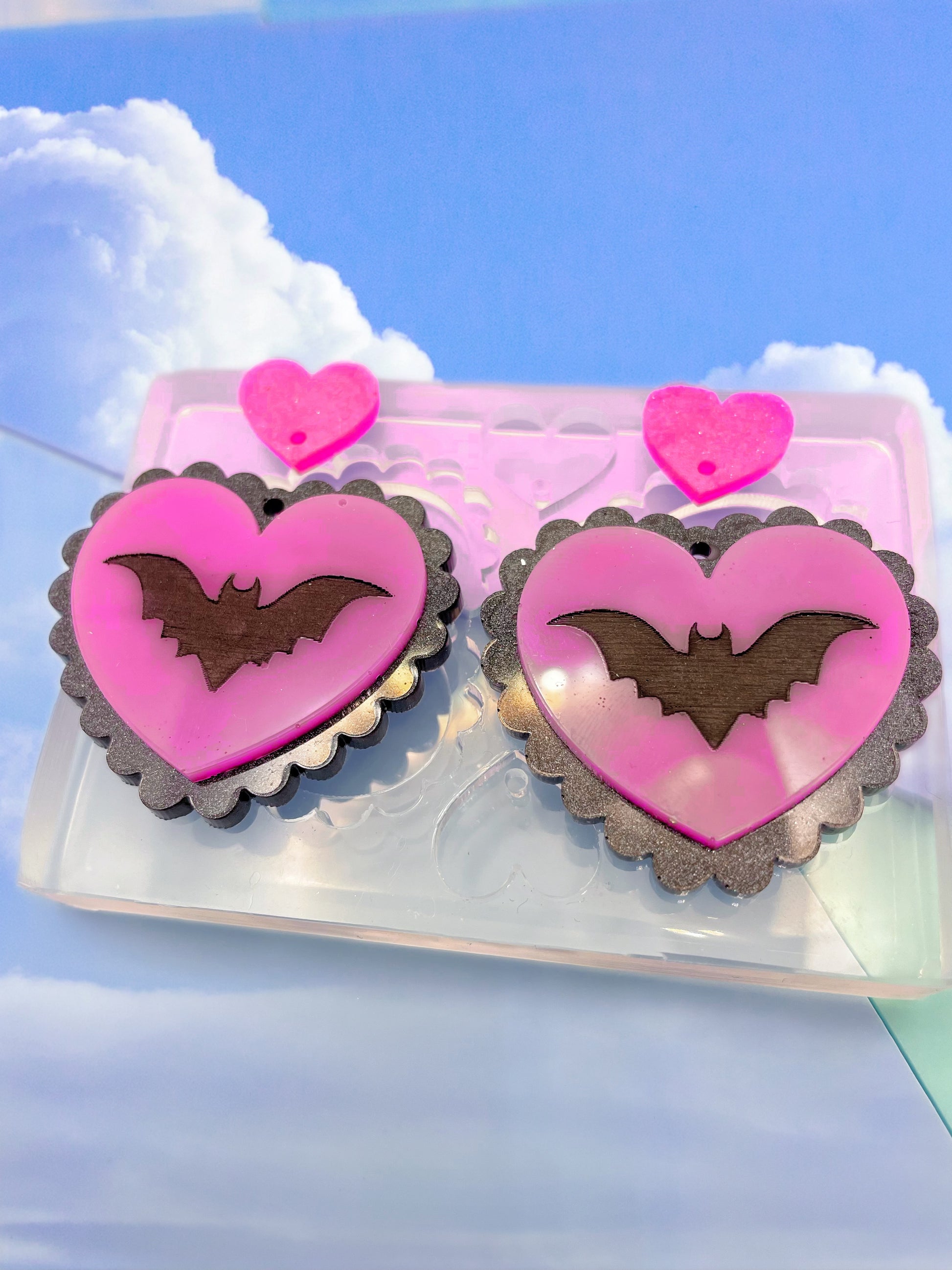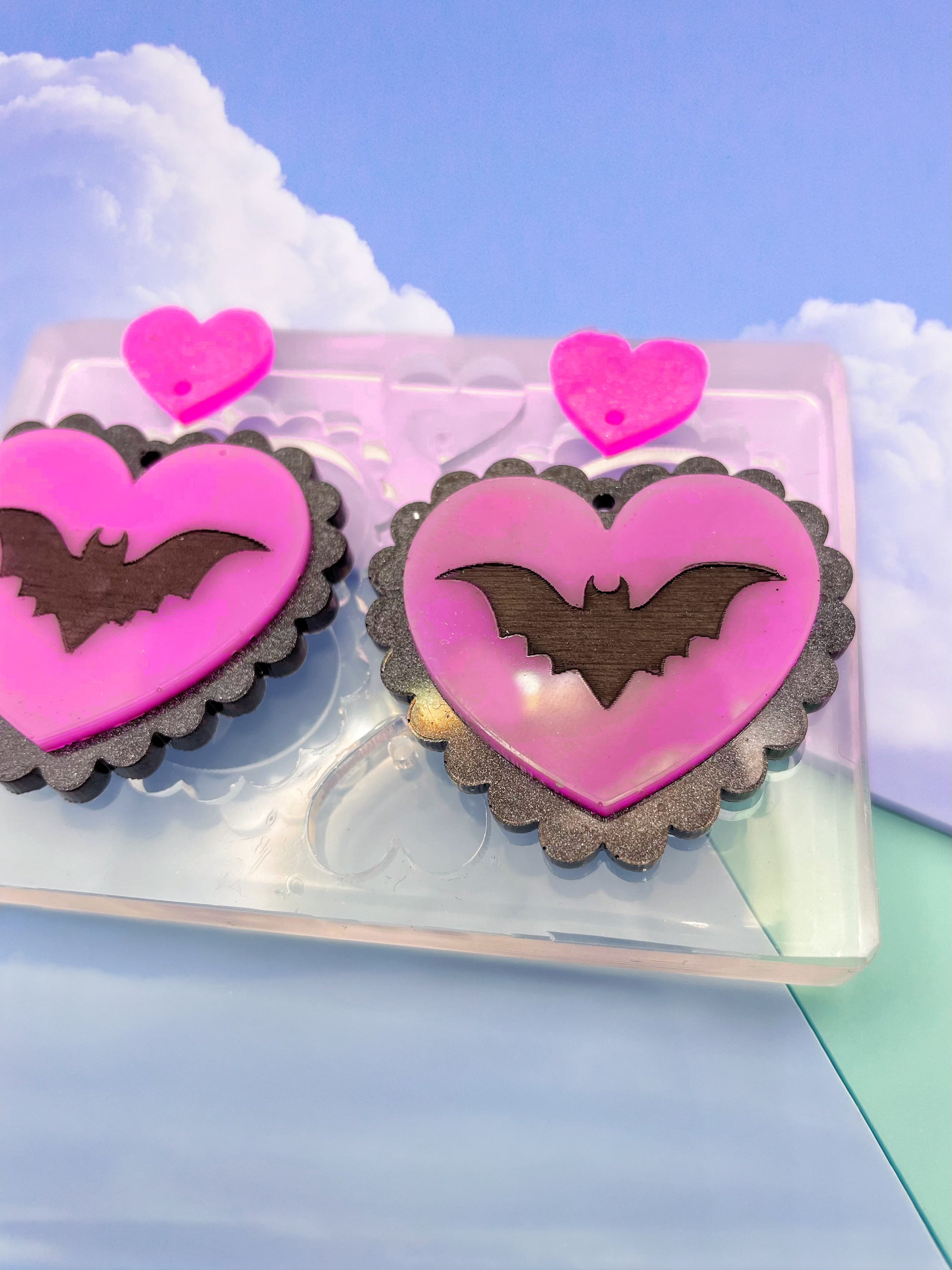 4cm Bat Scalloped Heart Layered Dangle Earring Mold
