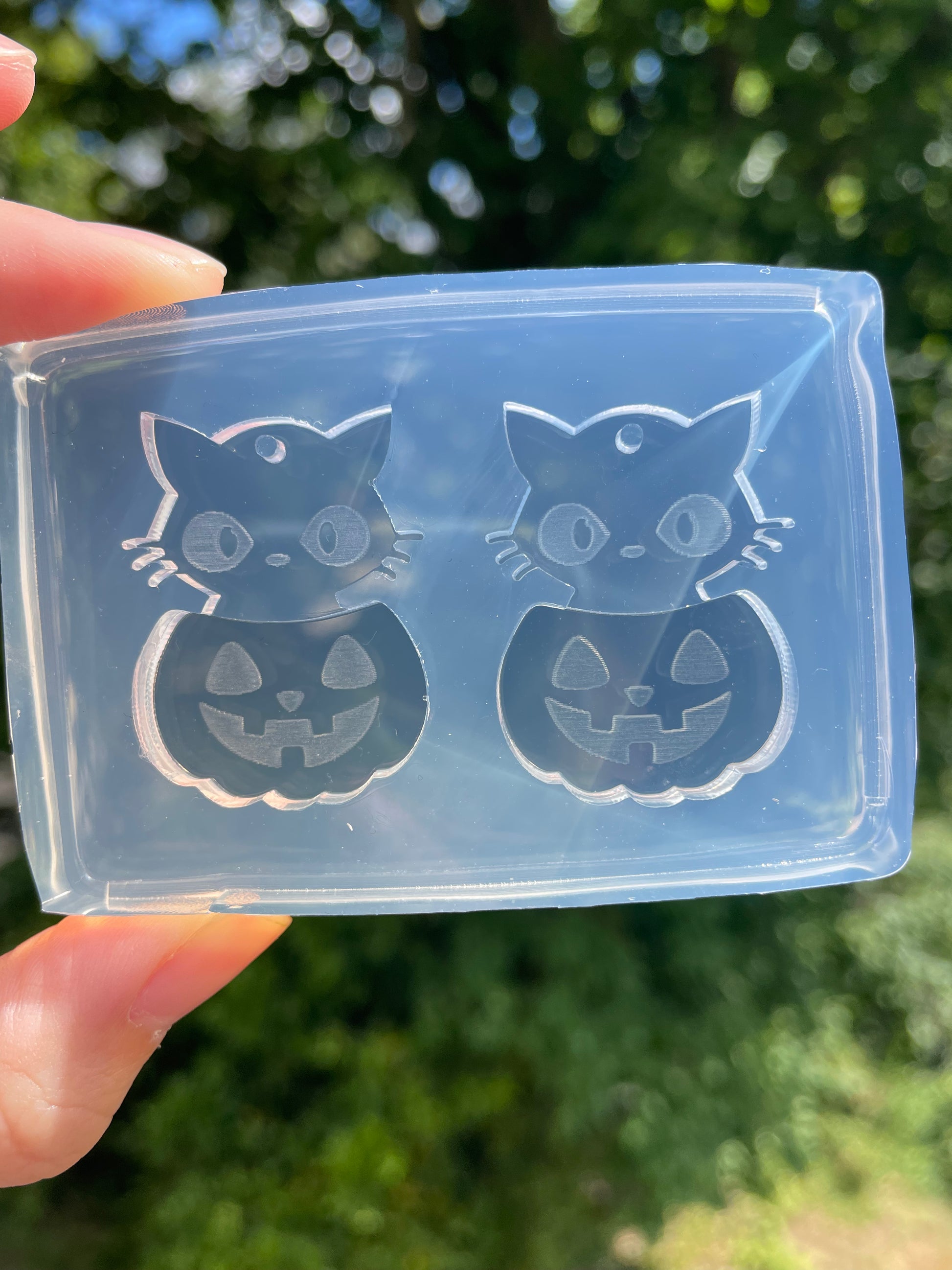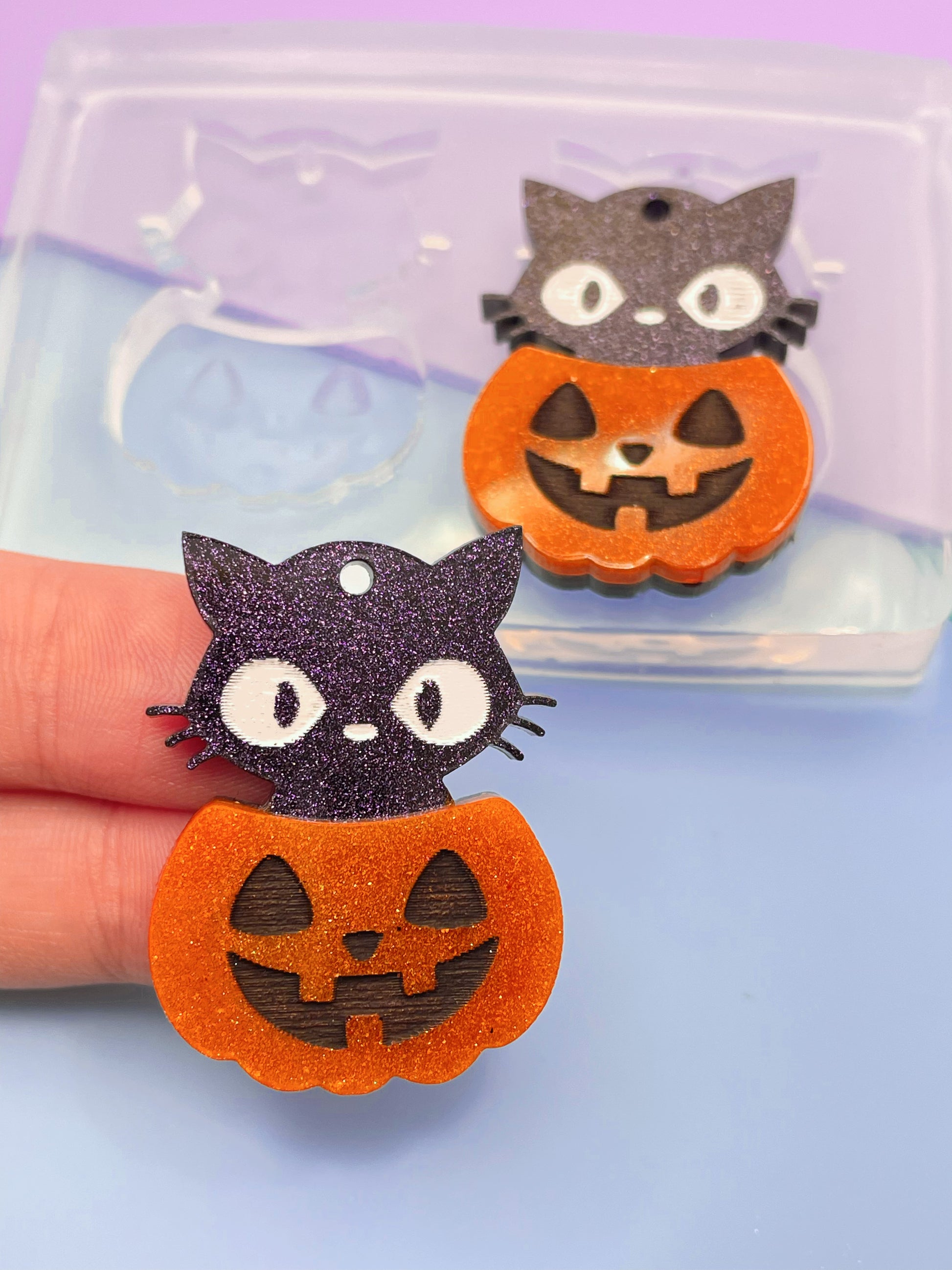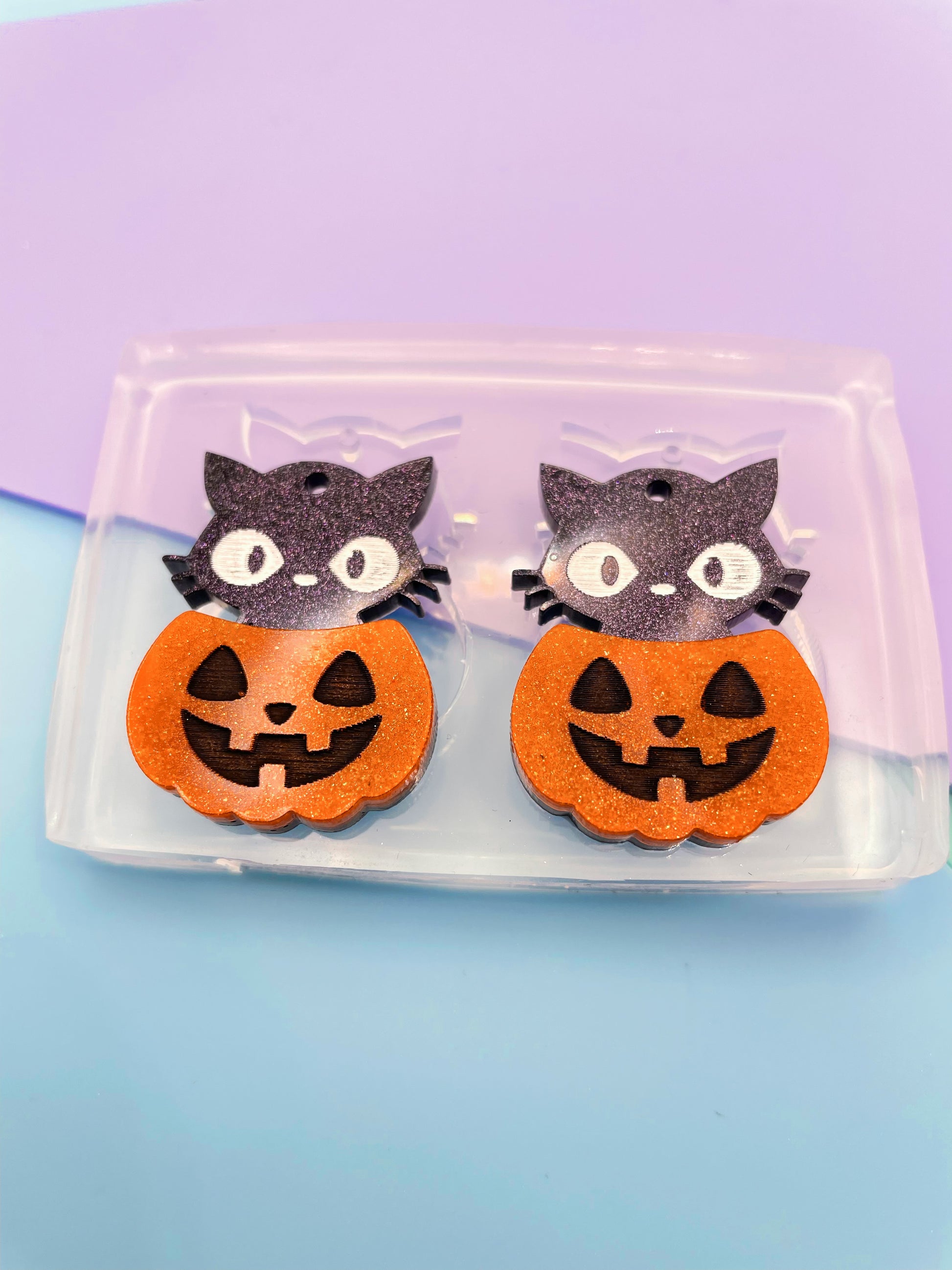3.5cm Cat in Pumpkin Dangle Earring Mold Halloween