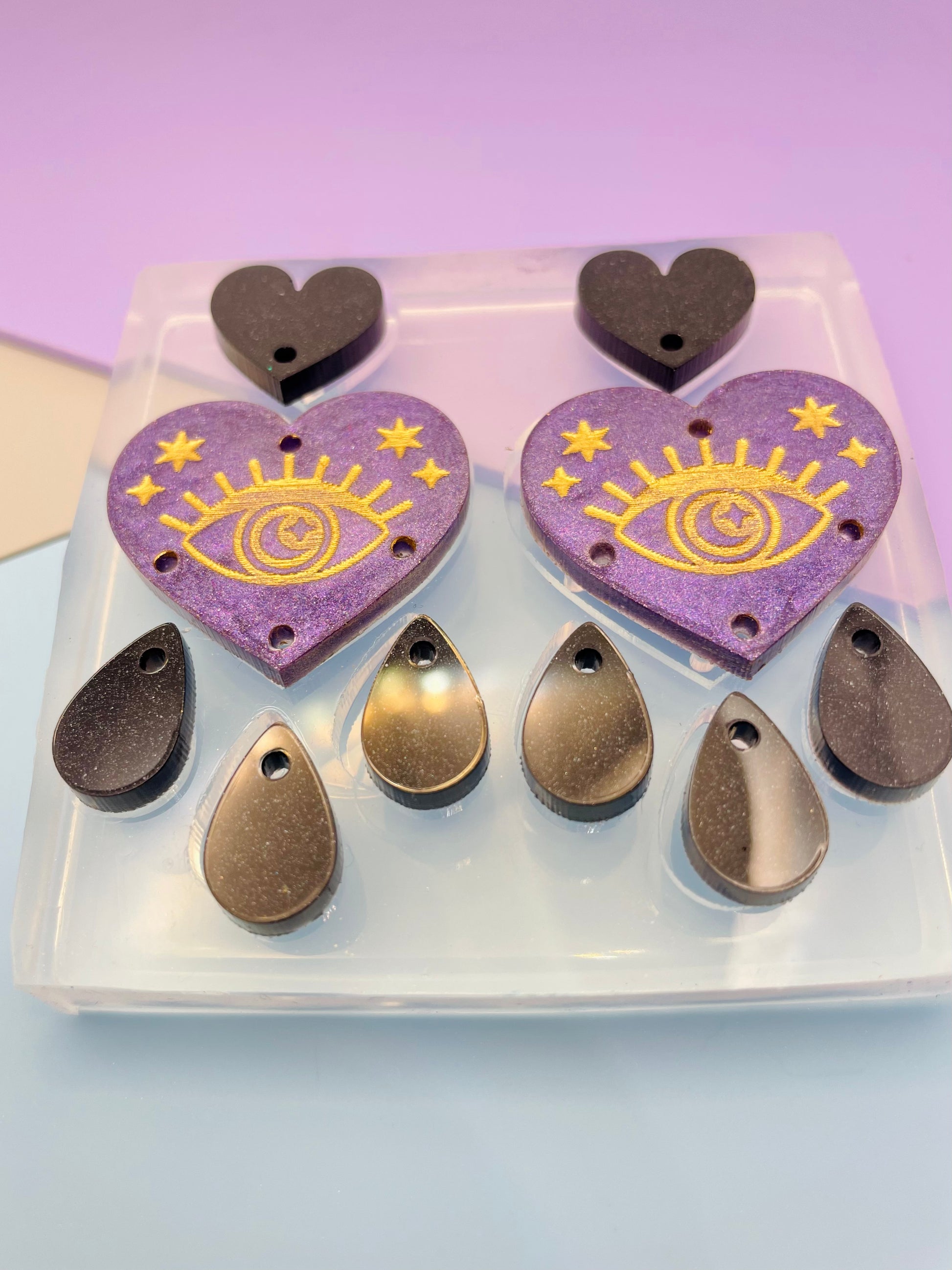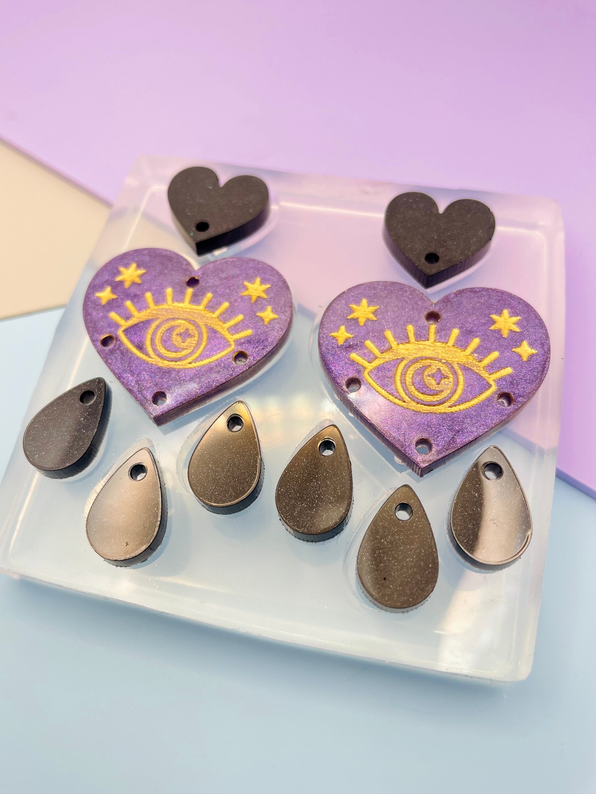 5.7 cm All-seeing Eye Heart Chandelier Dangle Earring Mold
