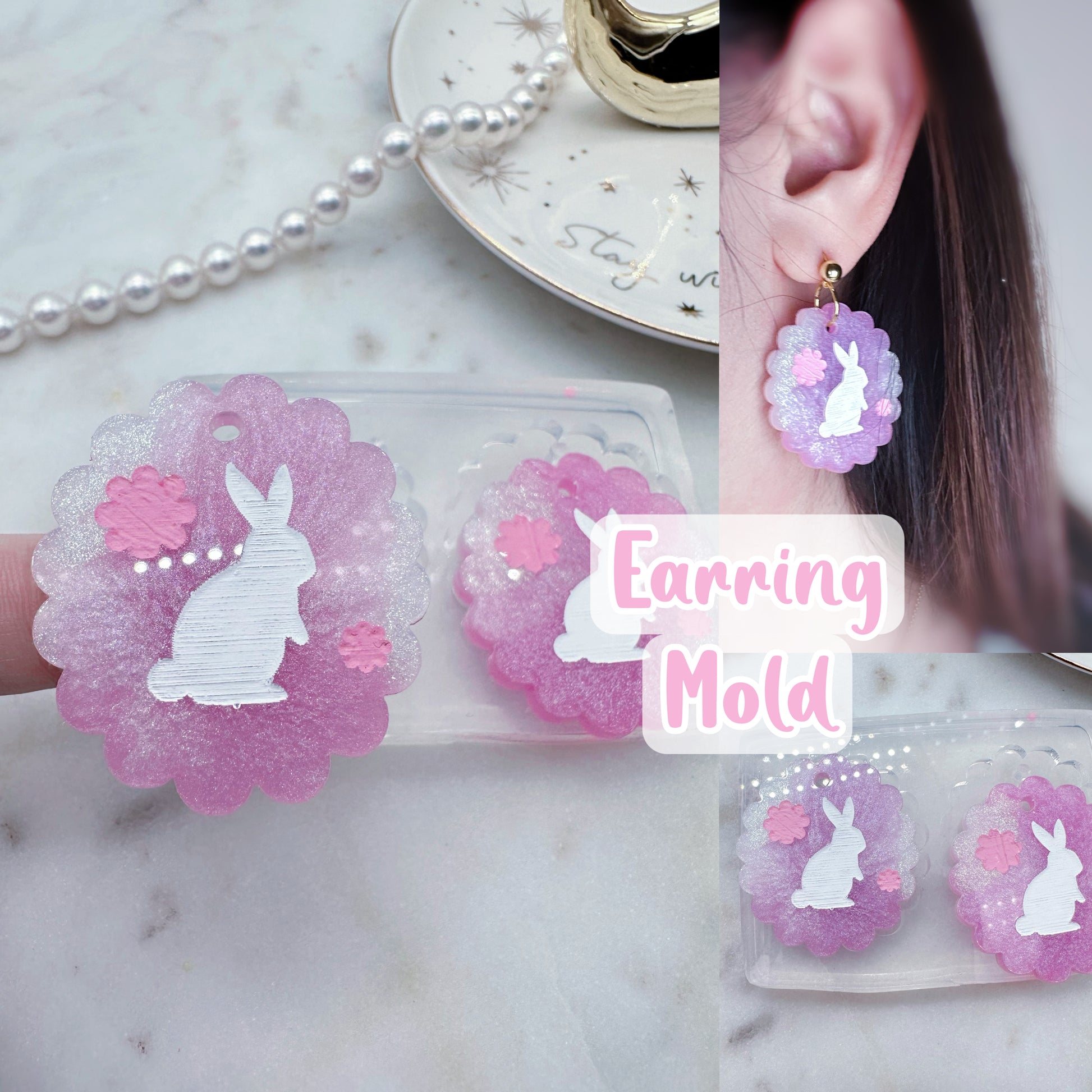 Create your own enchanted earrings for spring and Easter with this 4 cm Bunny and Flowers Scalloped Oval Dangle Earring Mold! Add a touch of delight to your outfit with bunny and flower design that's both cute and feminine. Get crafty and make something special that's sure to make you smile!