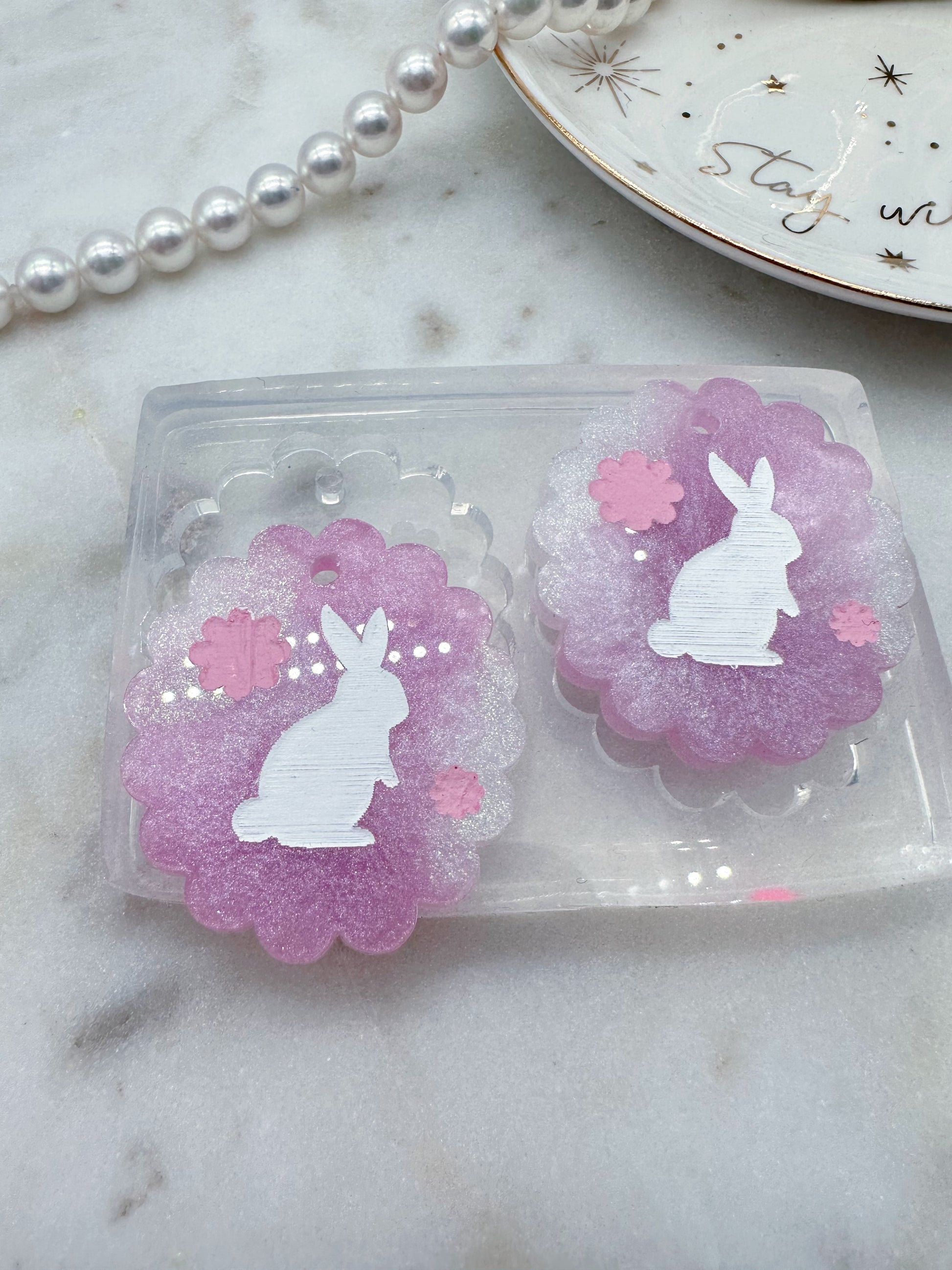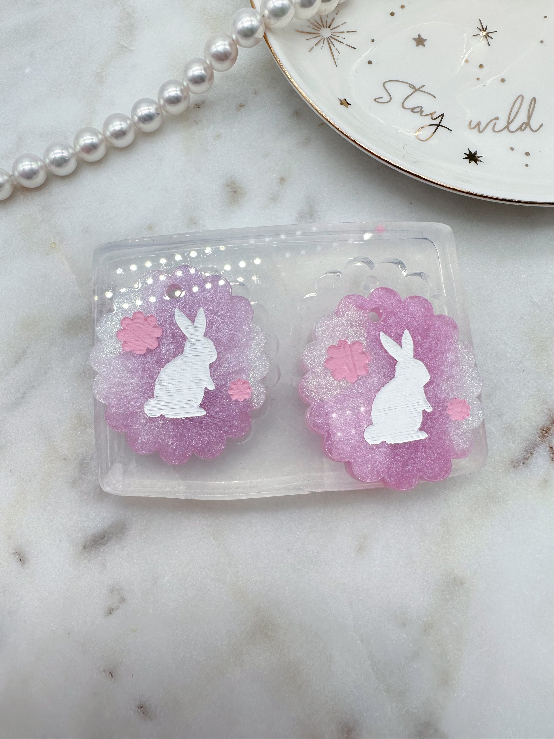 4 cm Bunny and Flowers Scalloped Oval Dangle Earring Mold