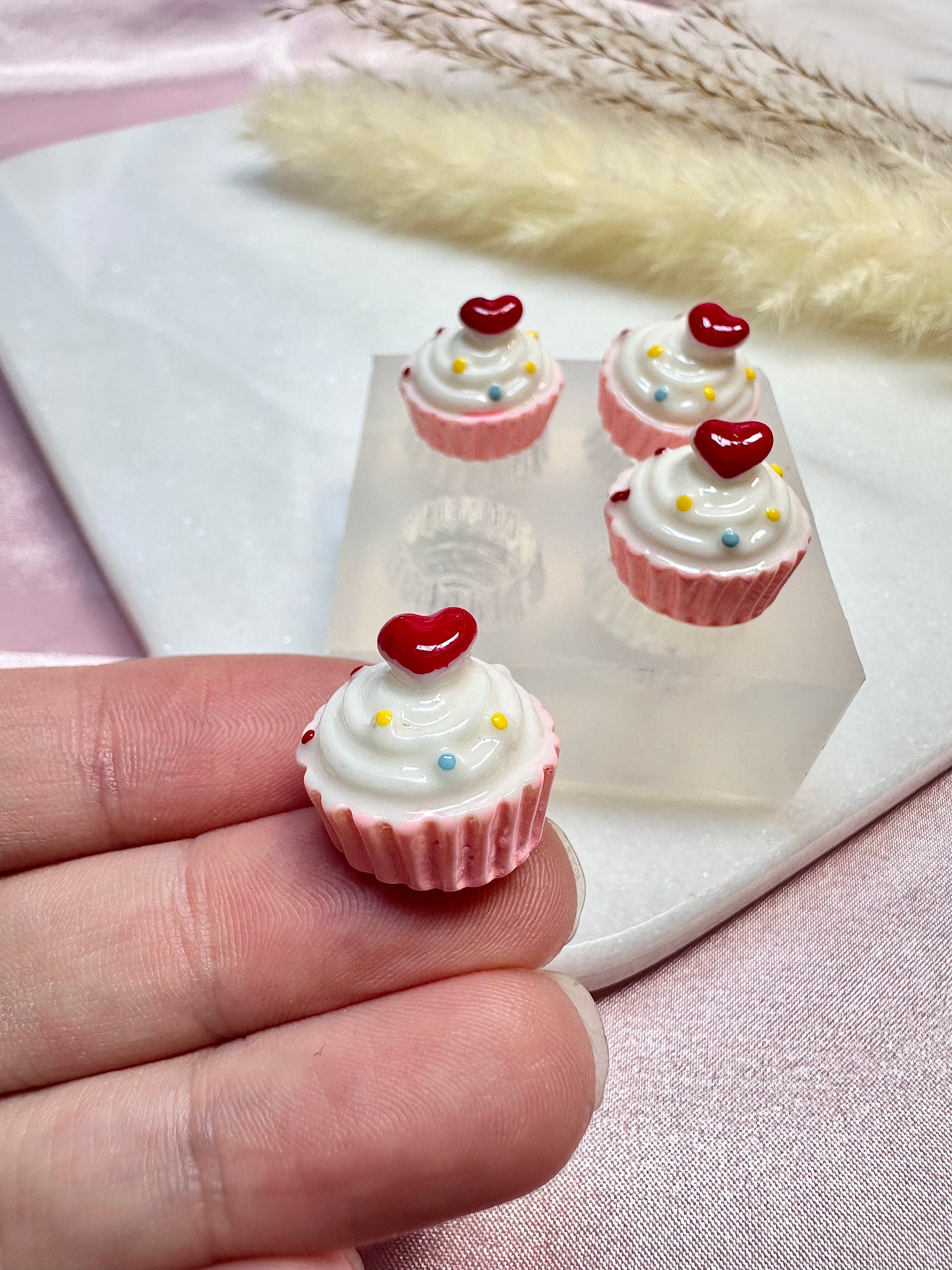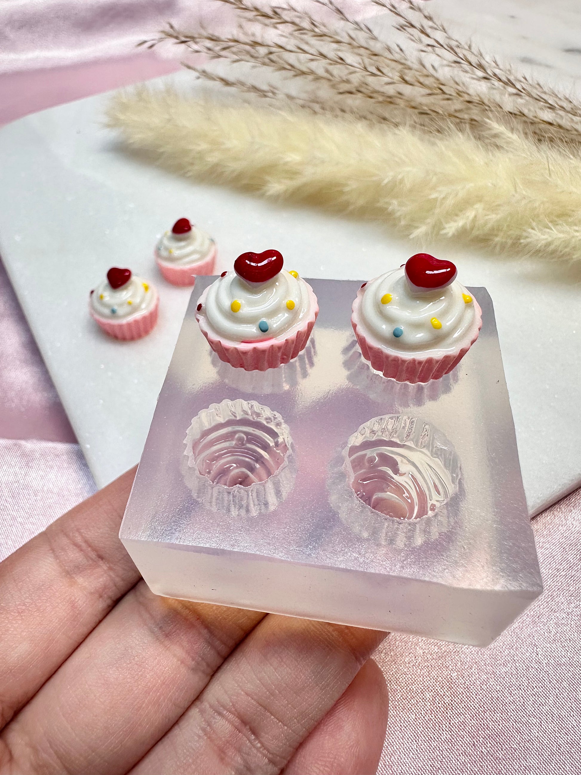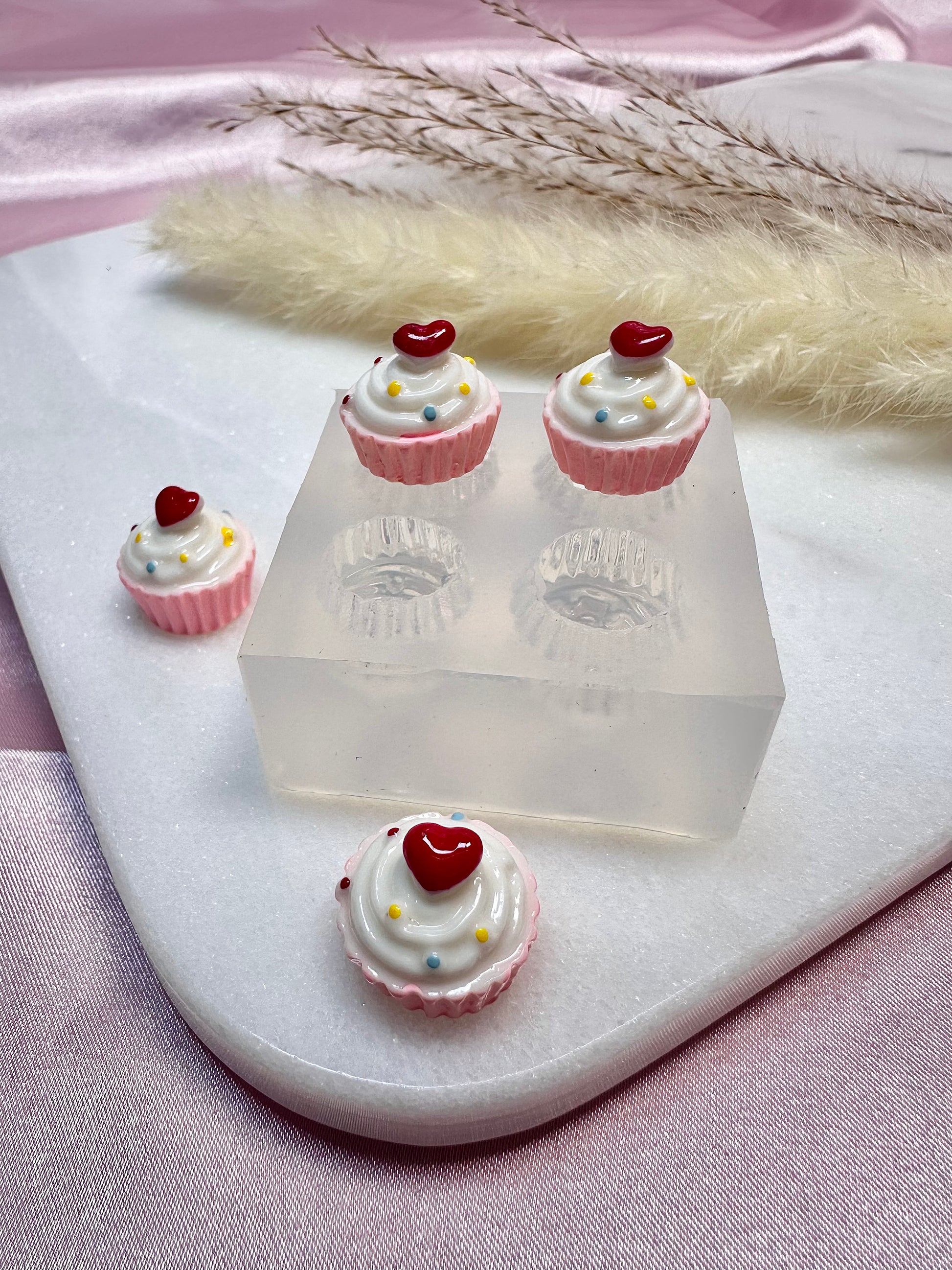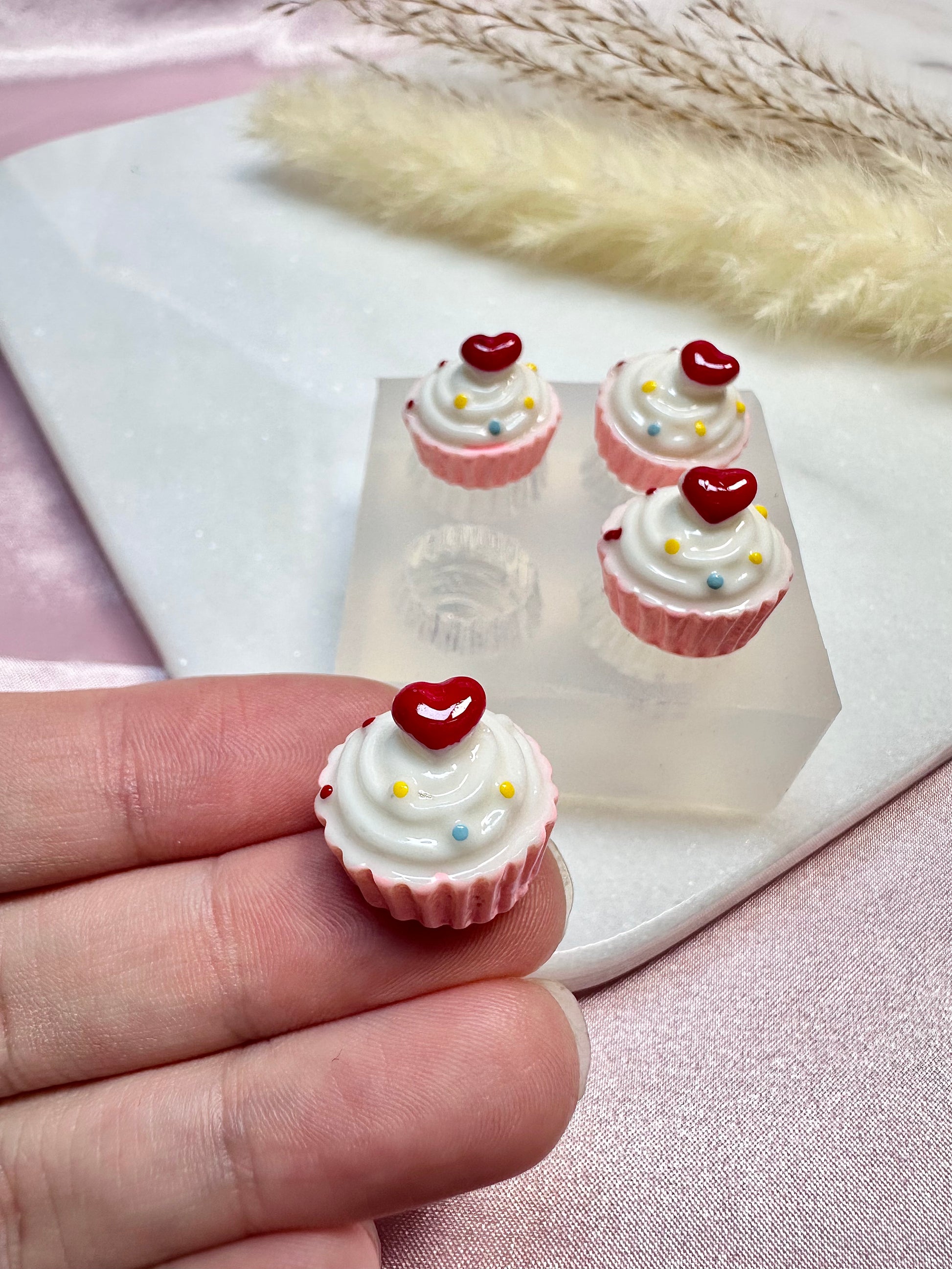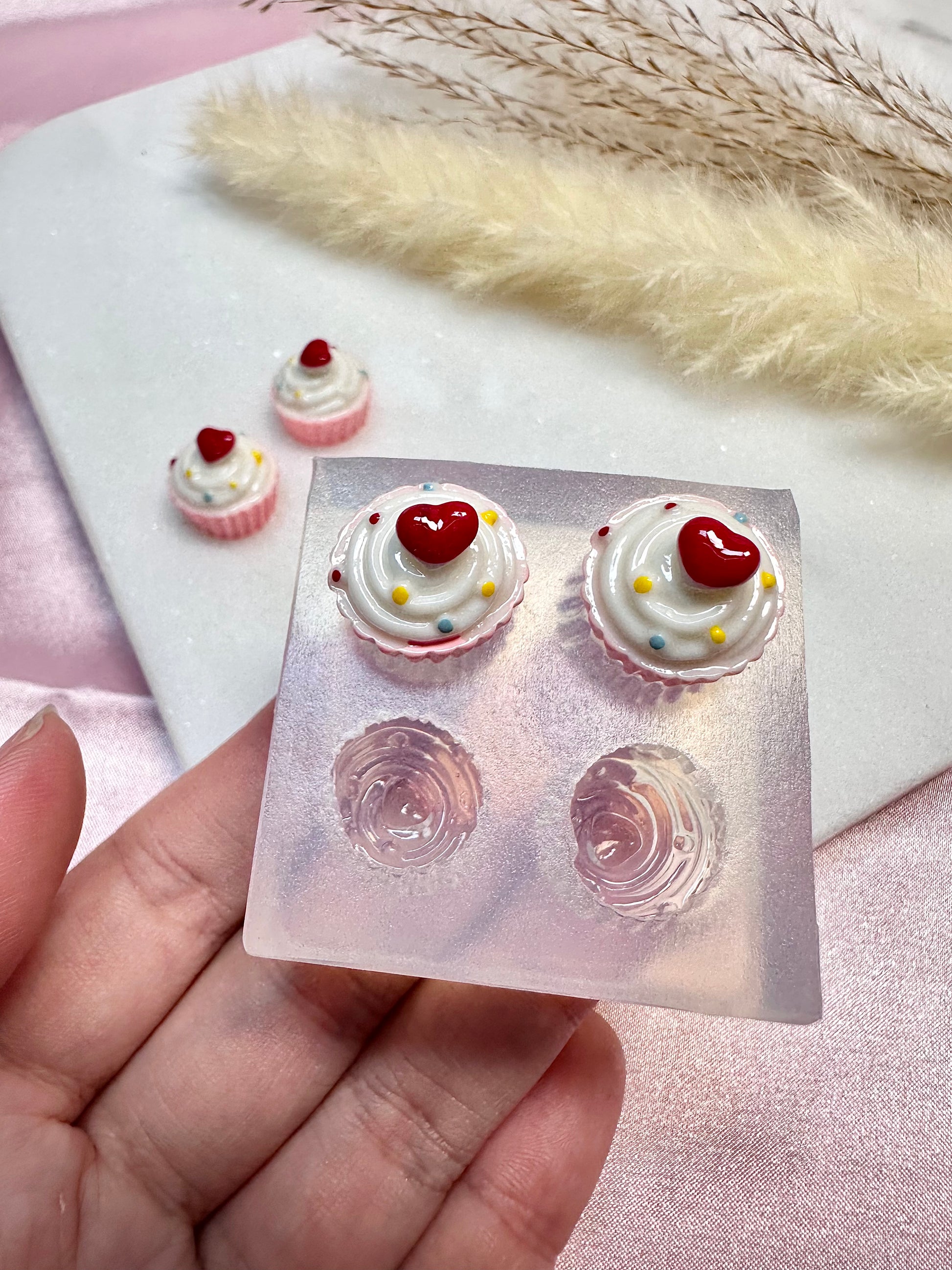Clear Silicone Mold for Polymer Clay Resin mini Heart Cupcake Muffin Earring Mold