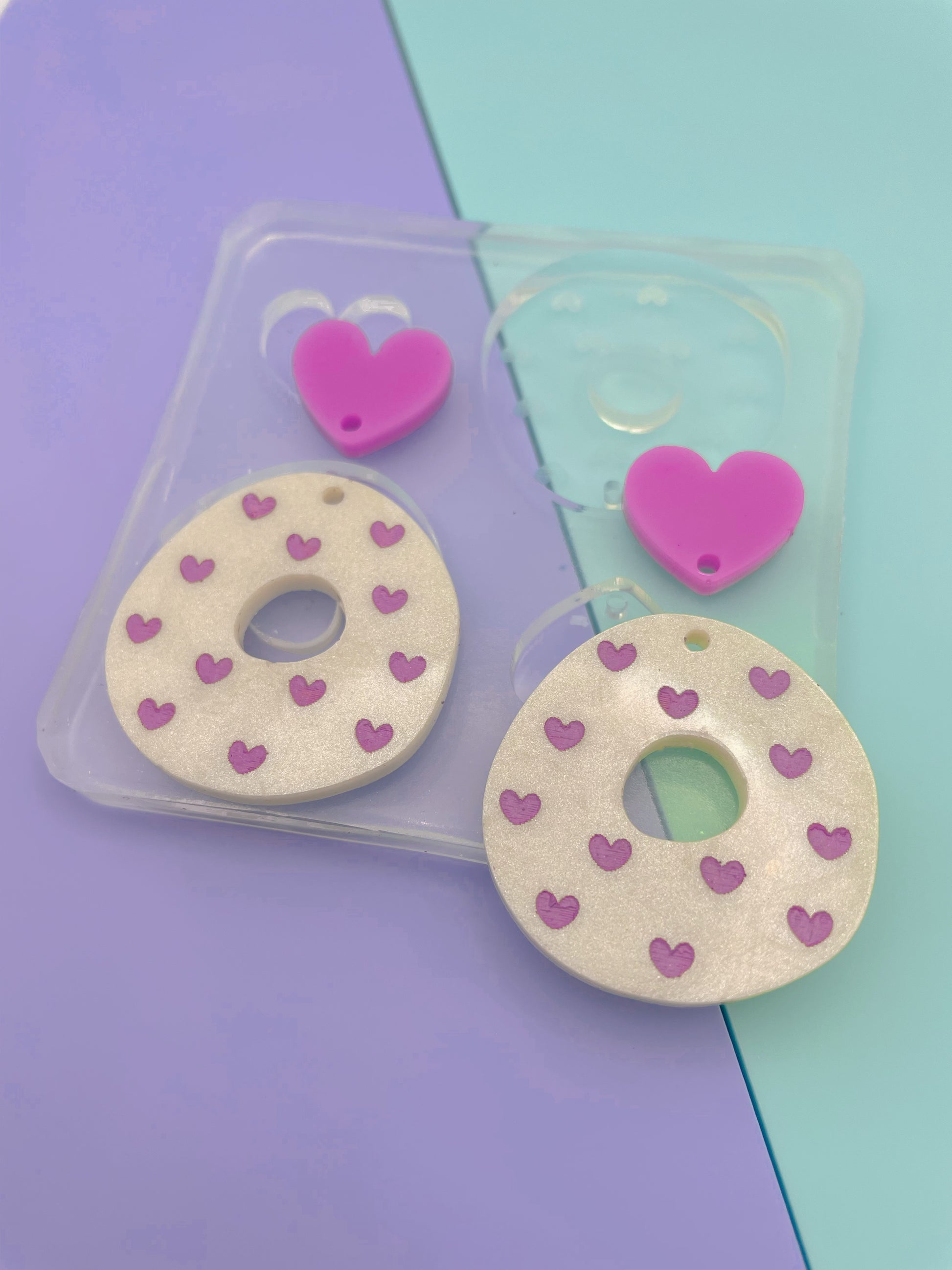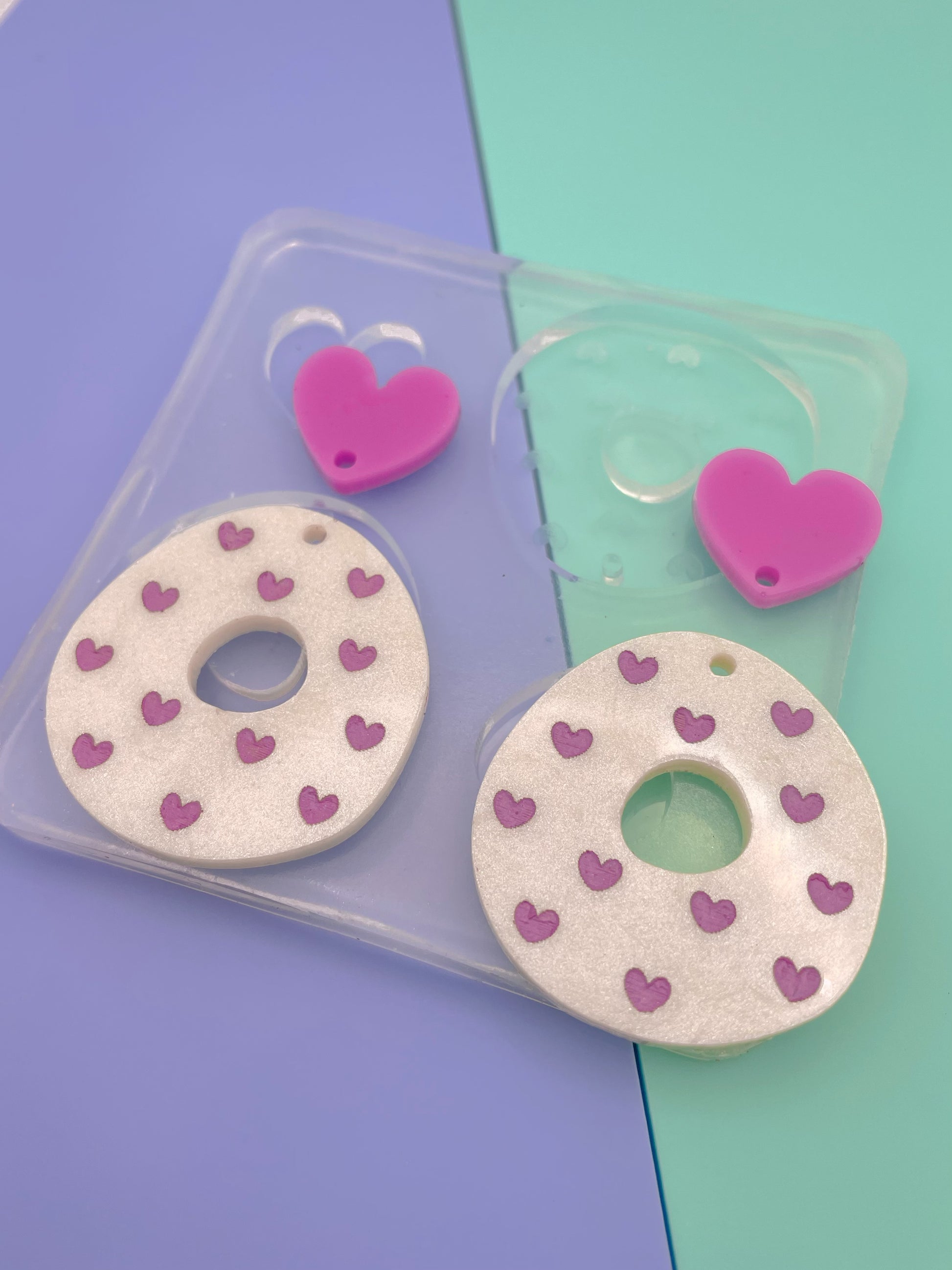 Cute Polka Hearts Round Donut Dangle Earring Mold