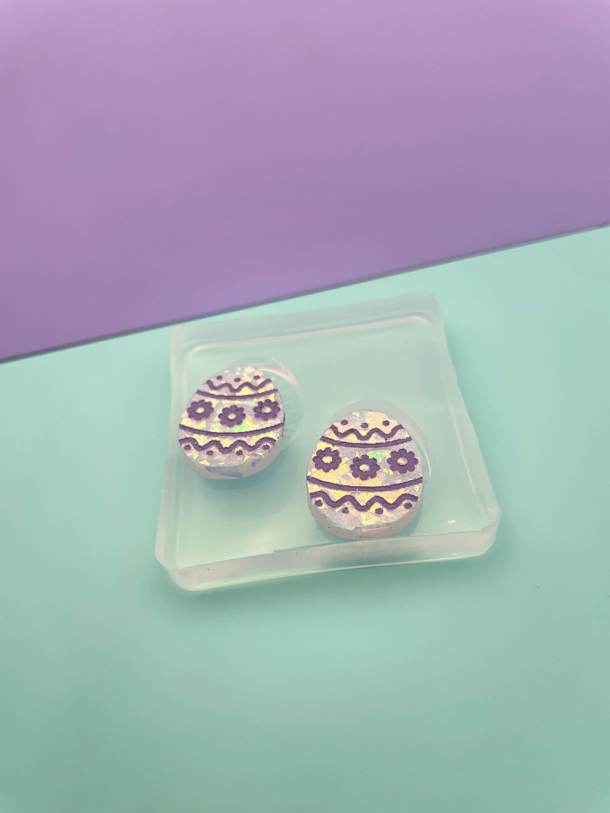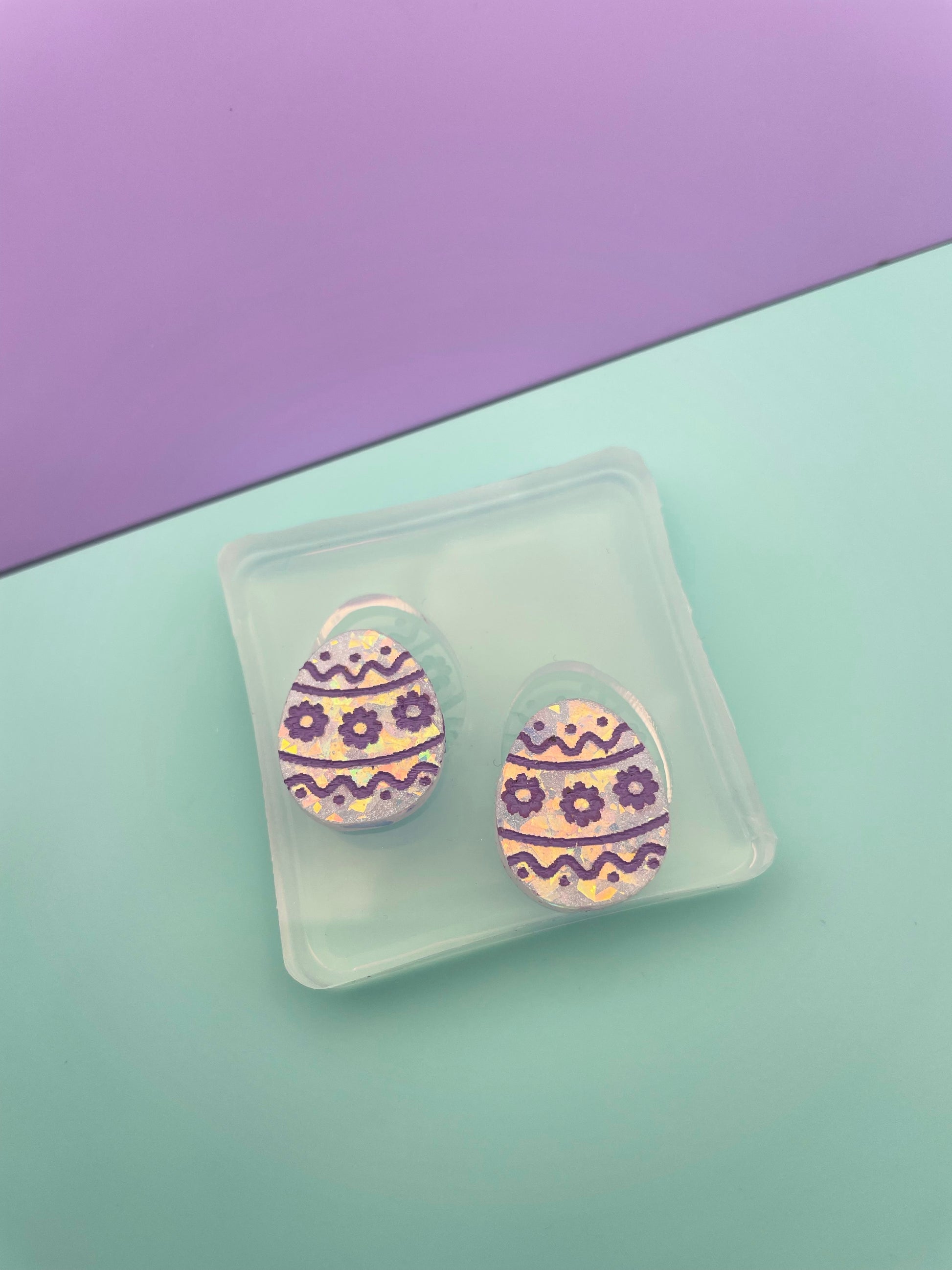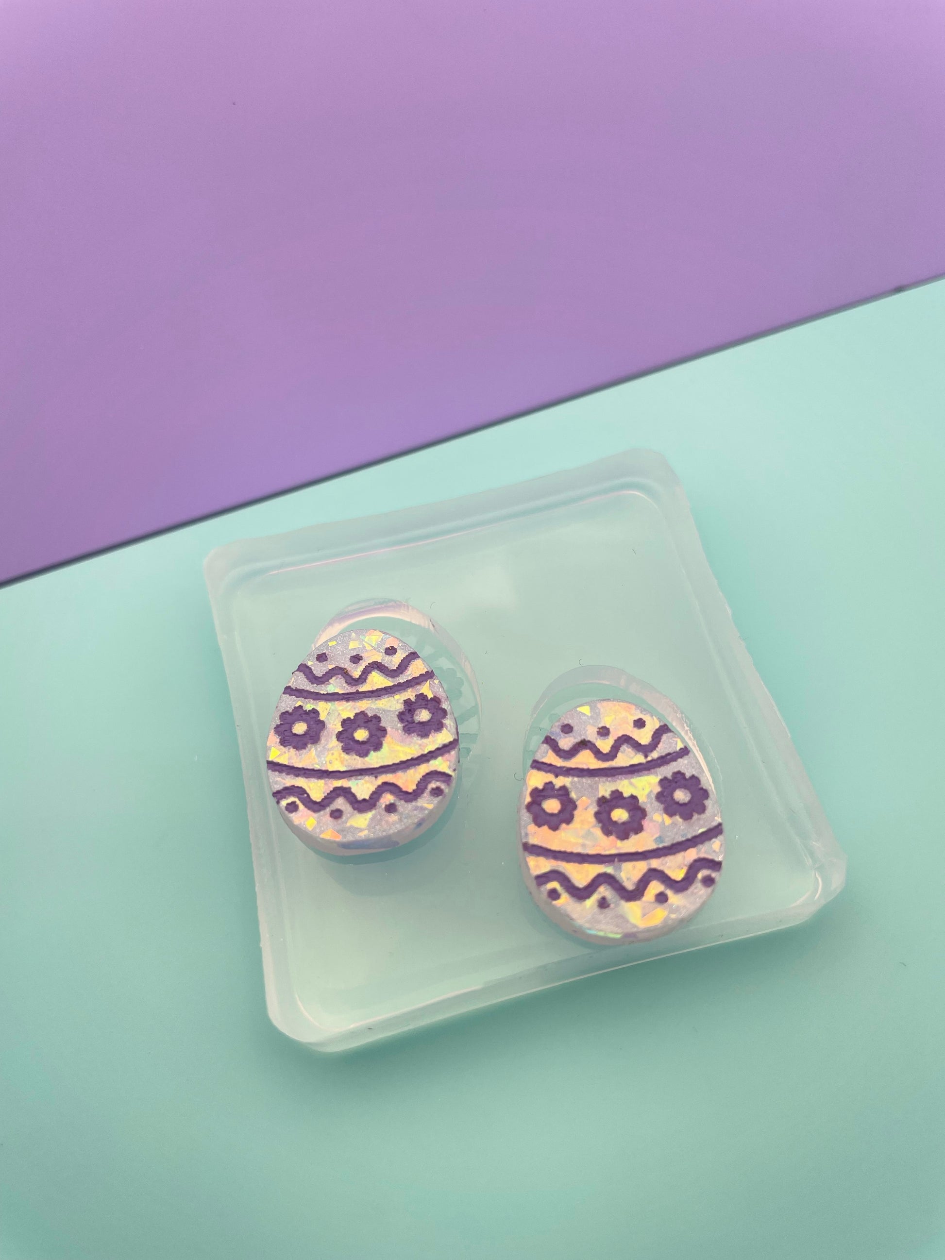 Mini Easter Egg Engraved Flower Stud Earring Mold