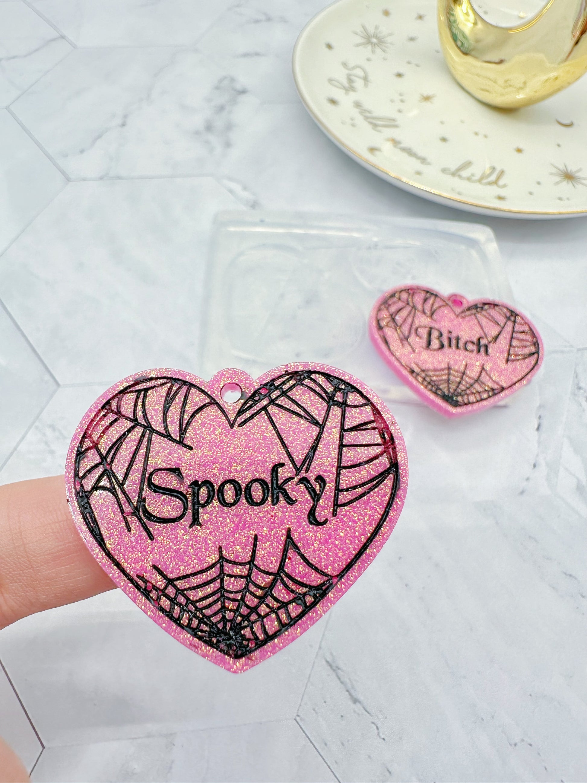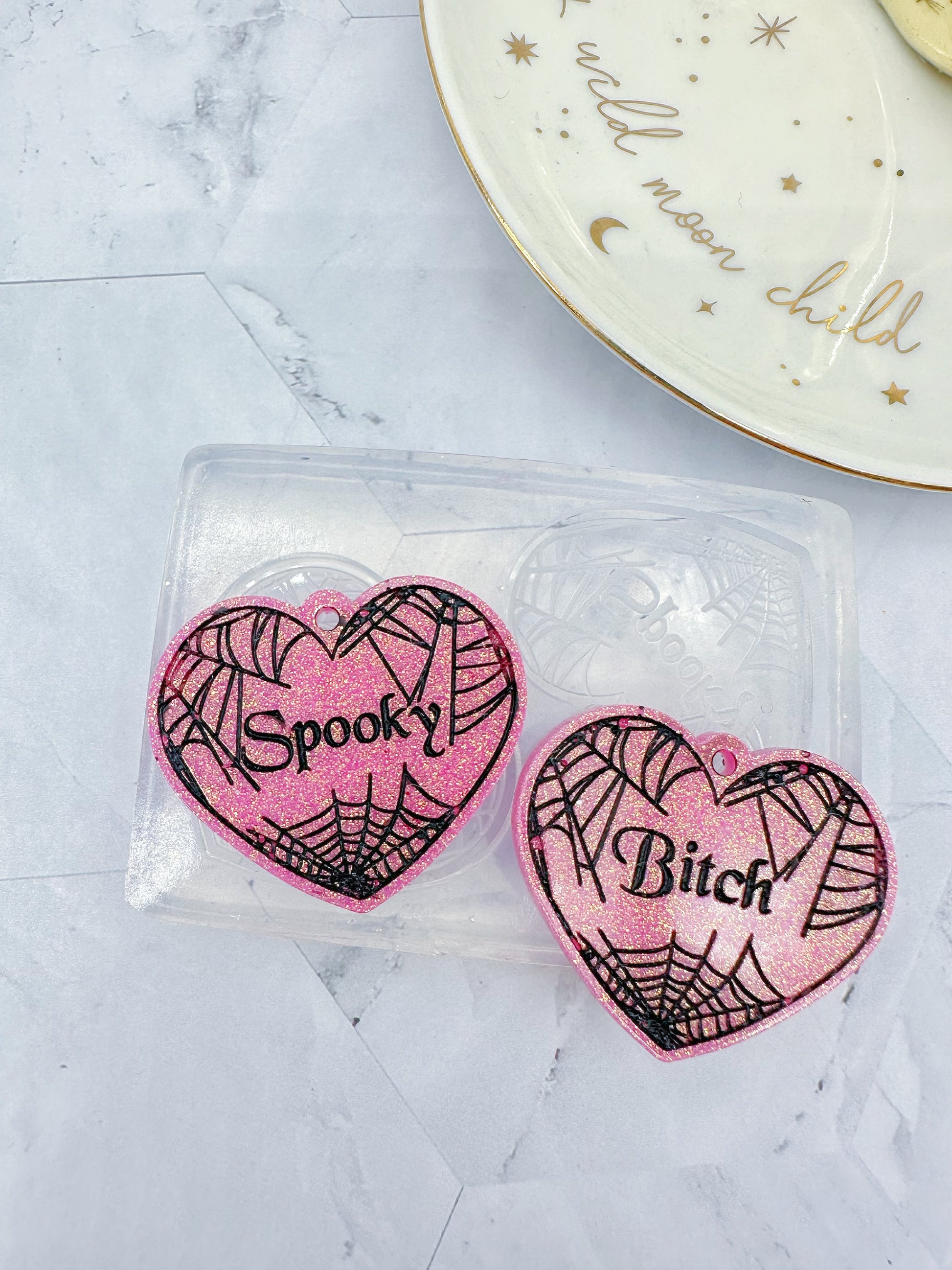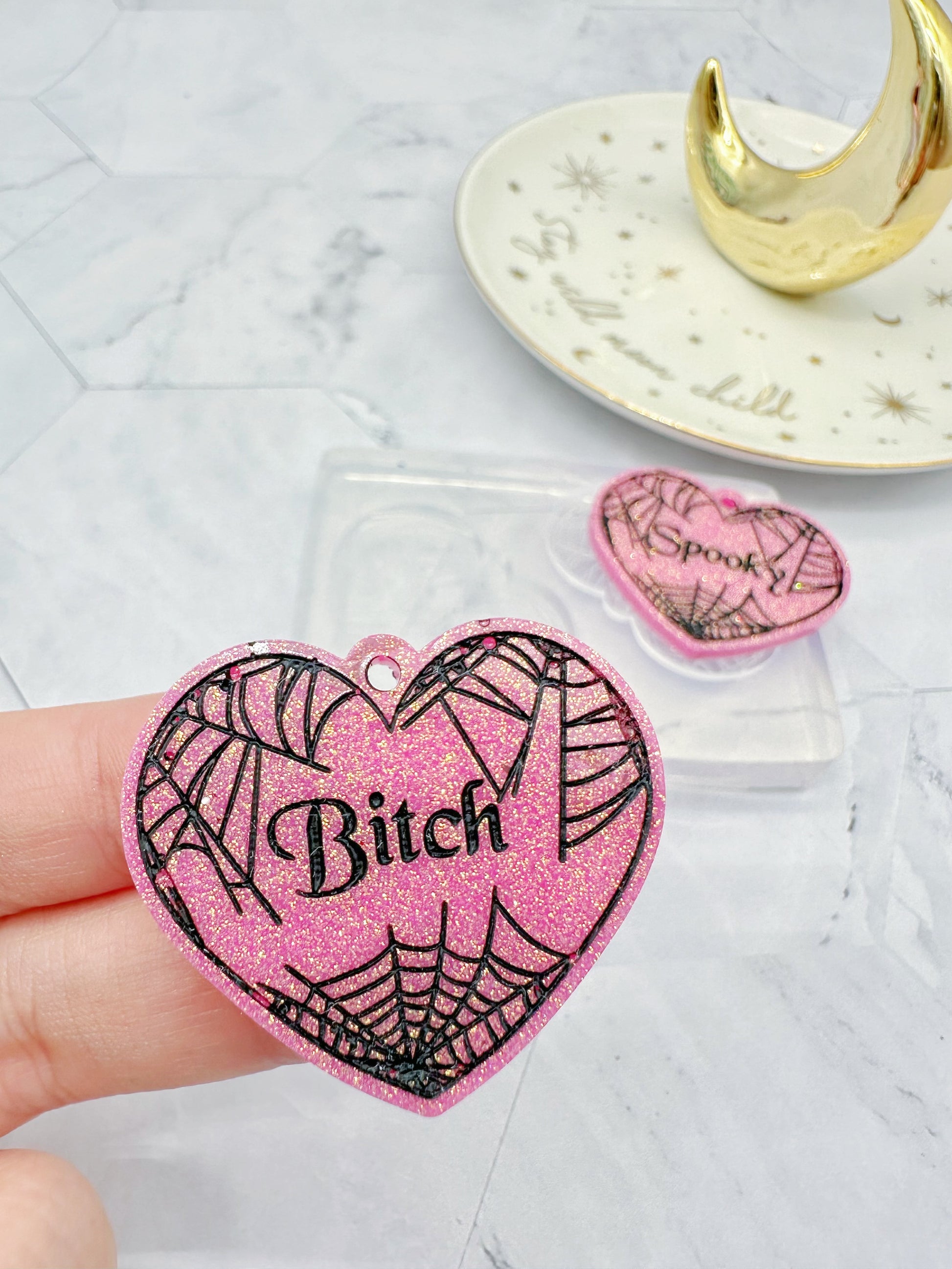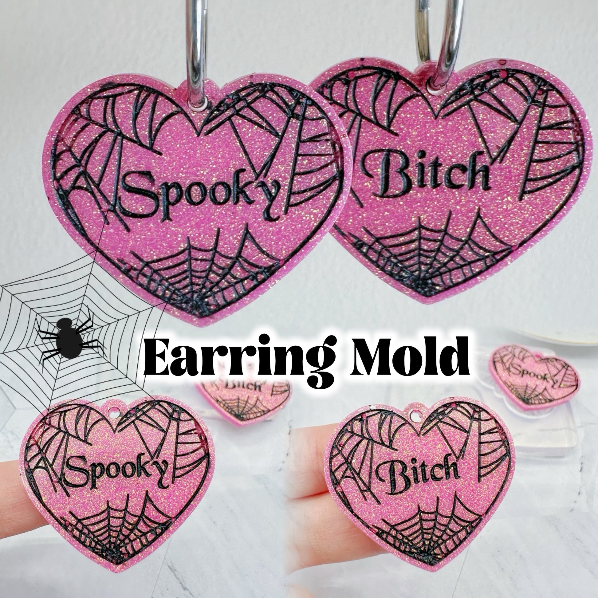 Large Spooky Bitch Spider Web Heart Dangle Earring Mold for Hoops