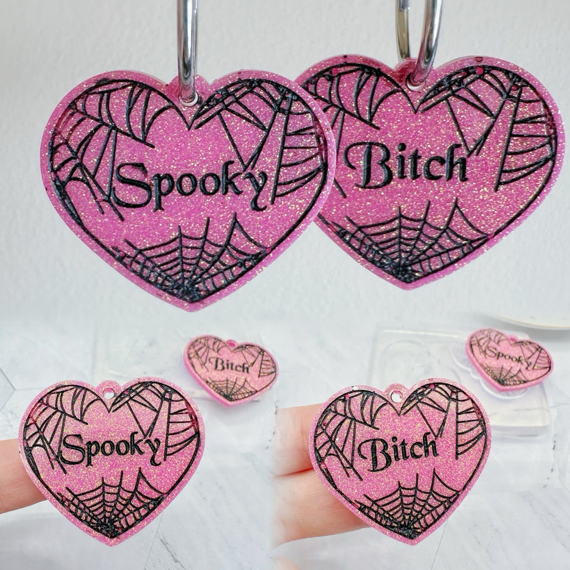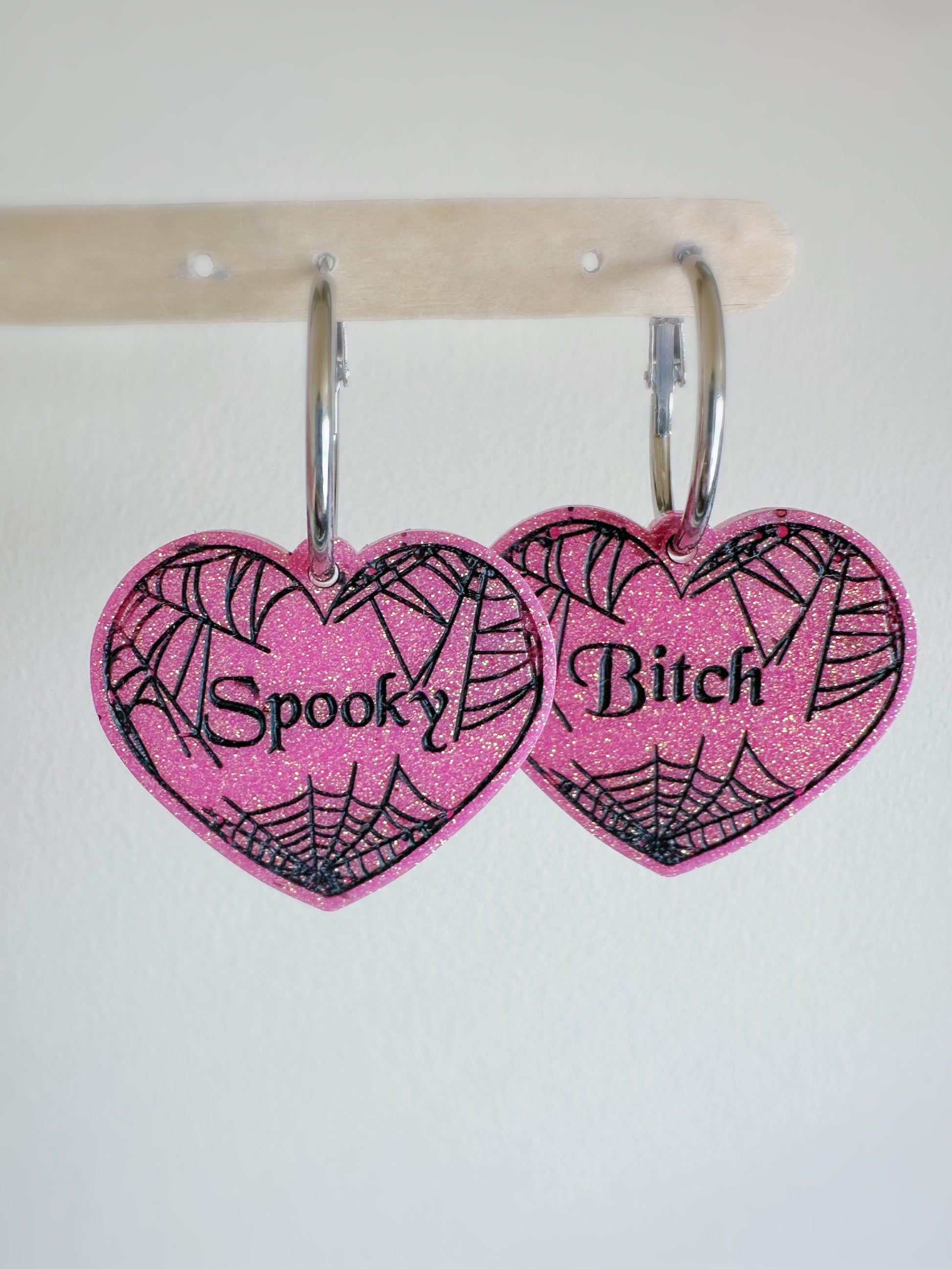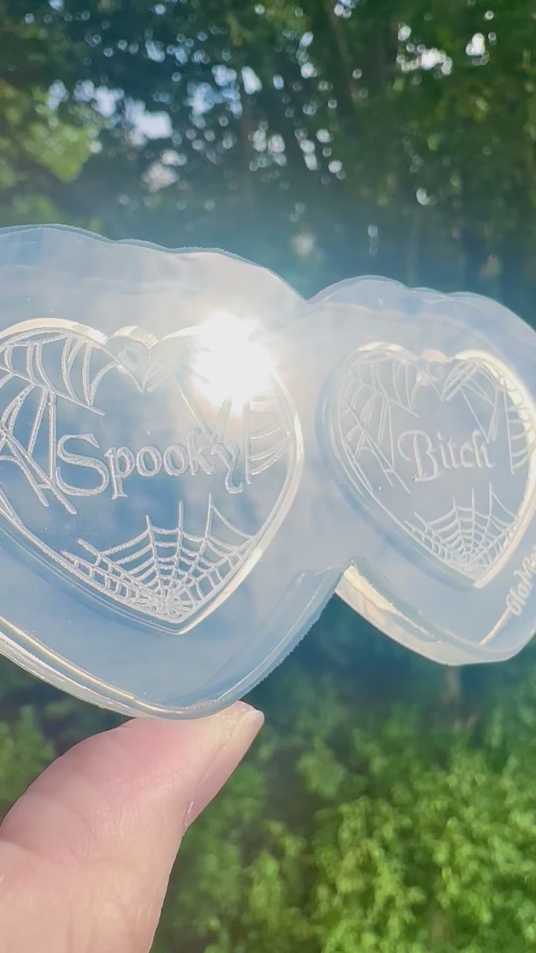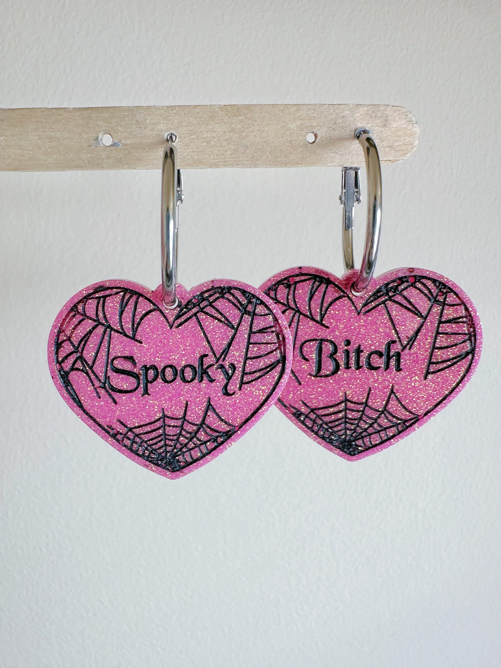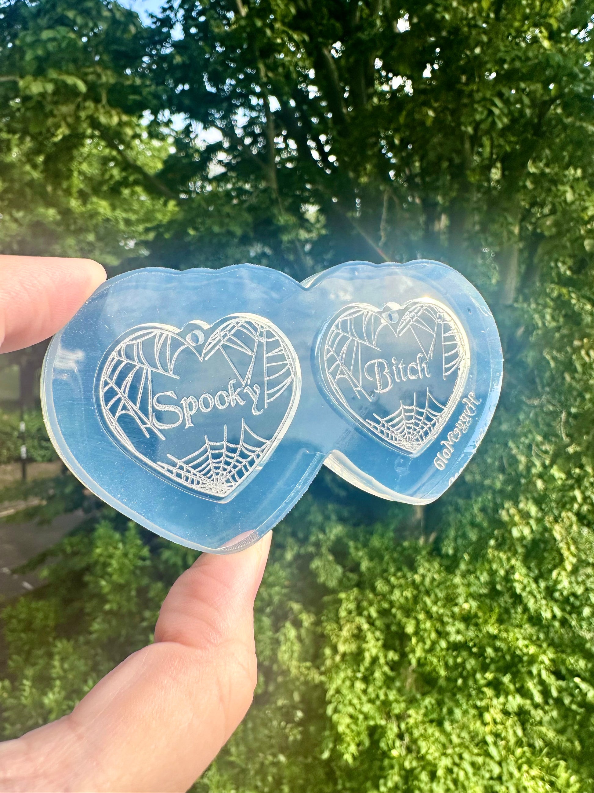 Large Spooky Bitch Spider Web Heart Dangle Earring Mold for Hoops