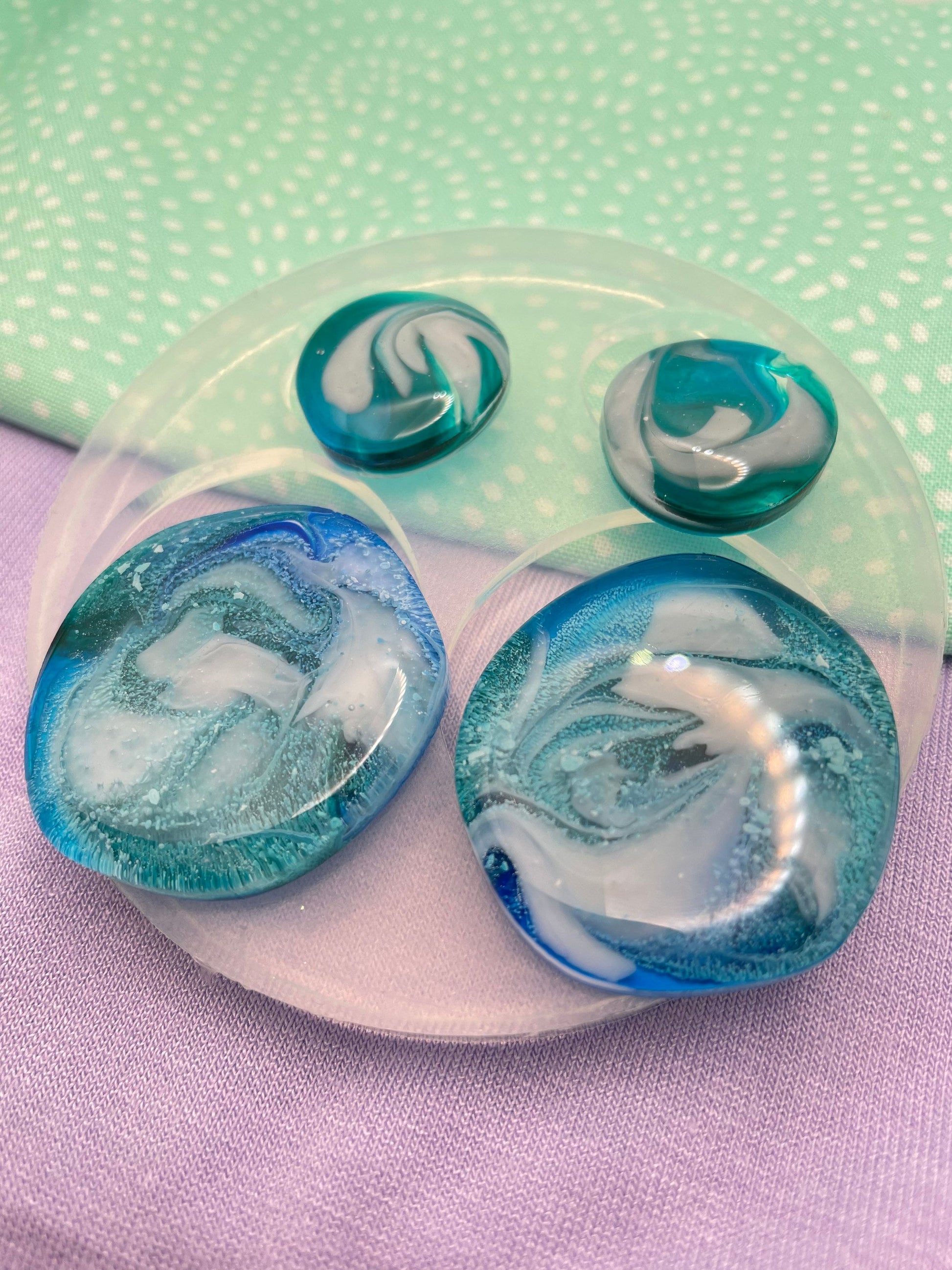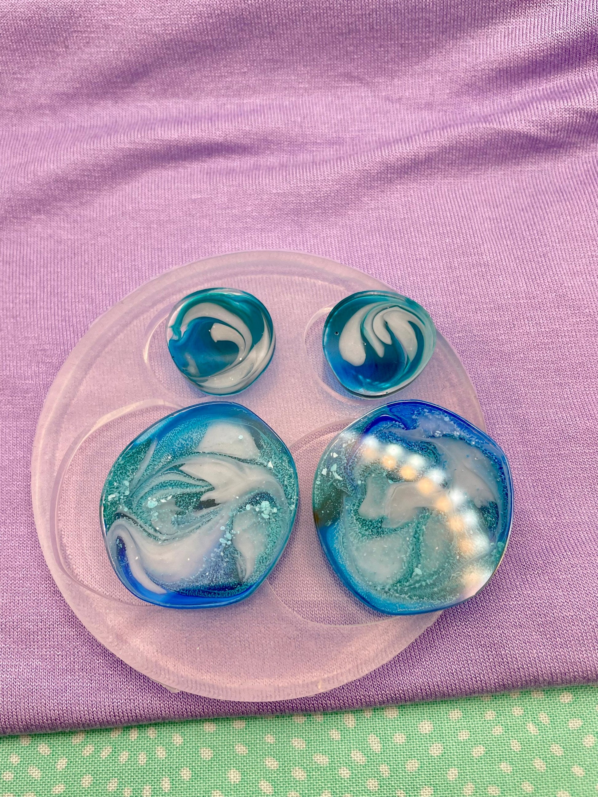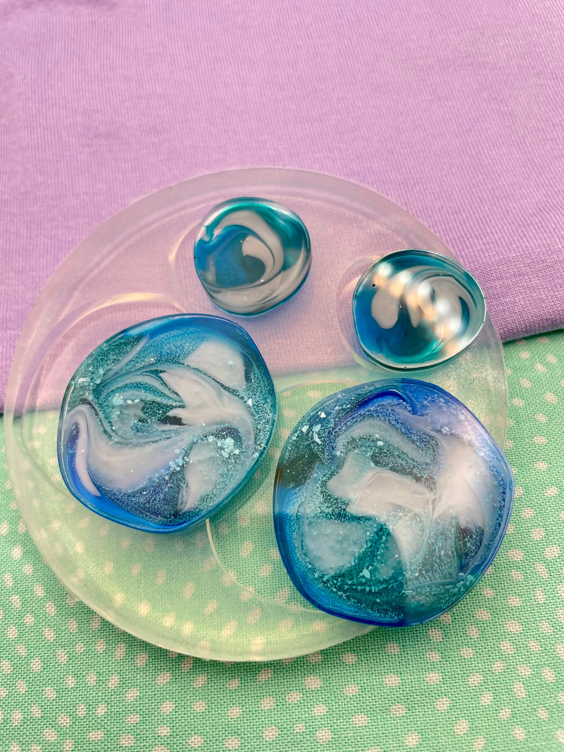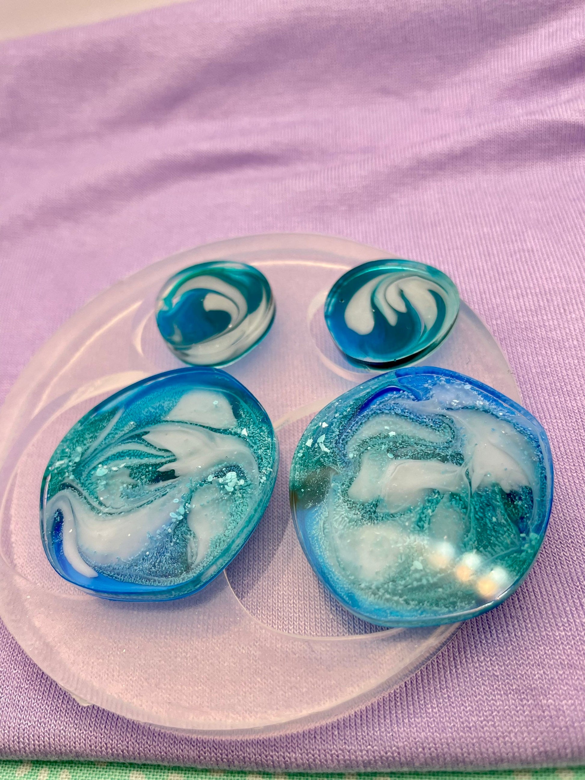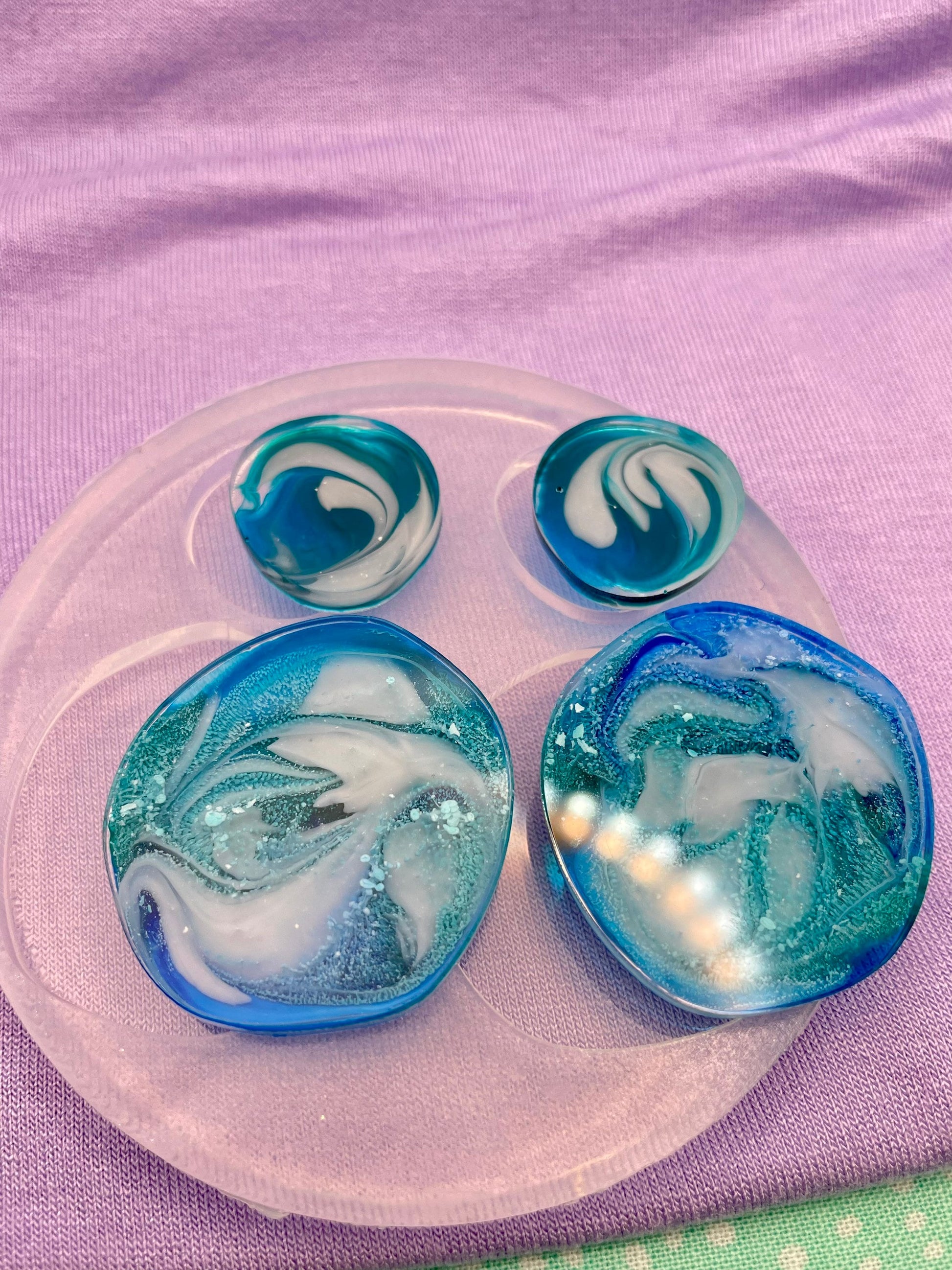 This mold makes one pair of stylish statement earrings. You can also make studs as the stud toppers do not come with pre-drilled holes.