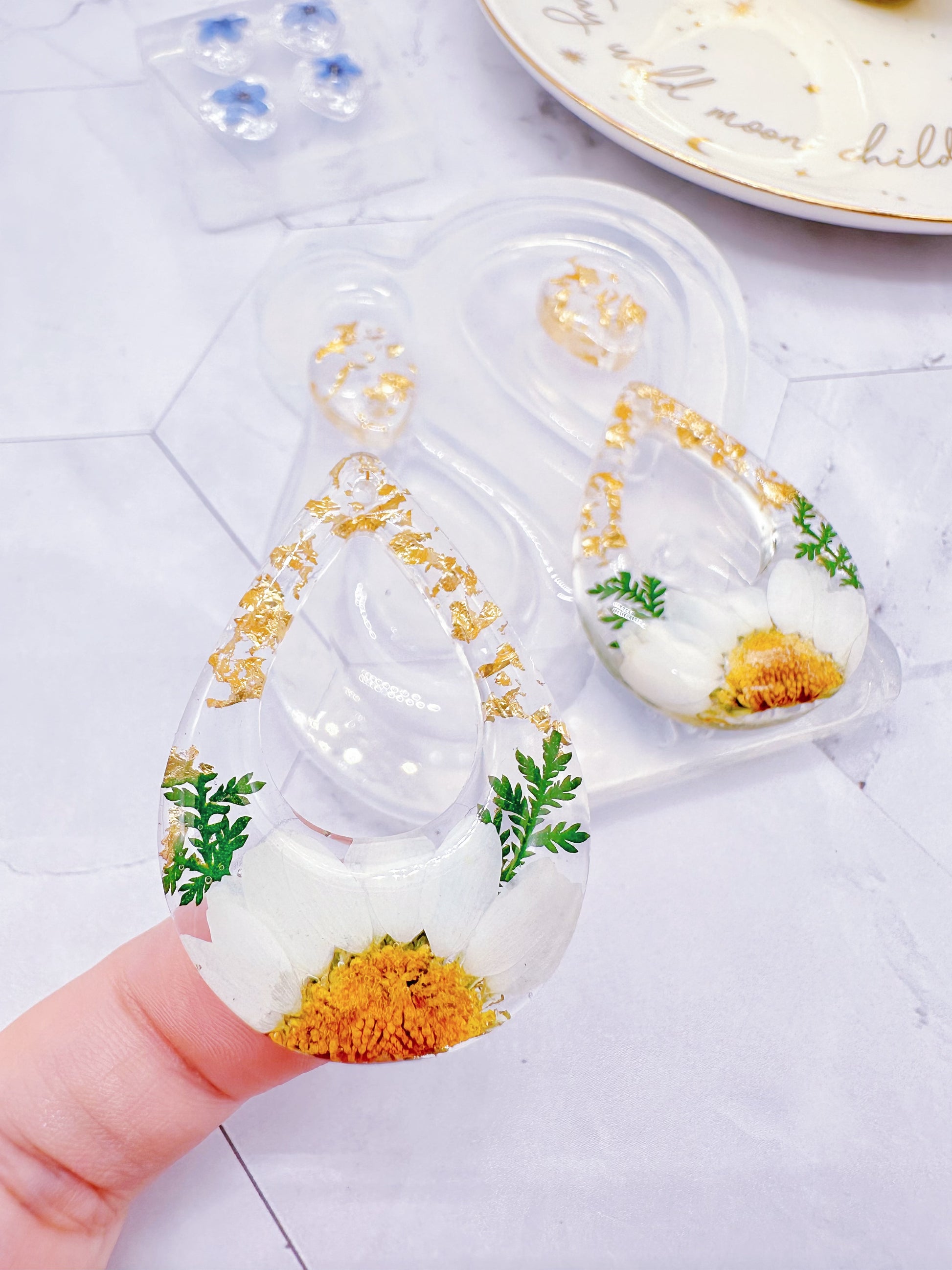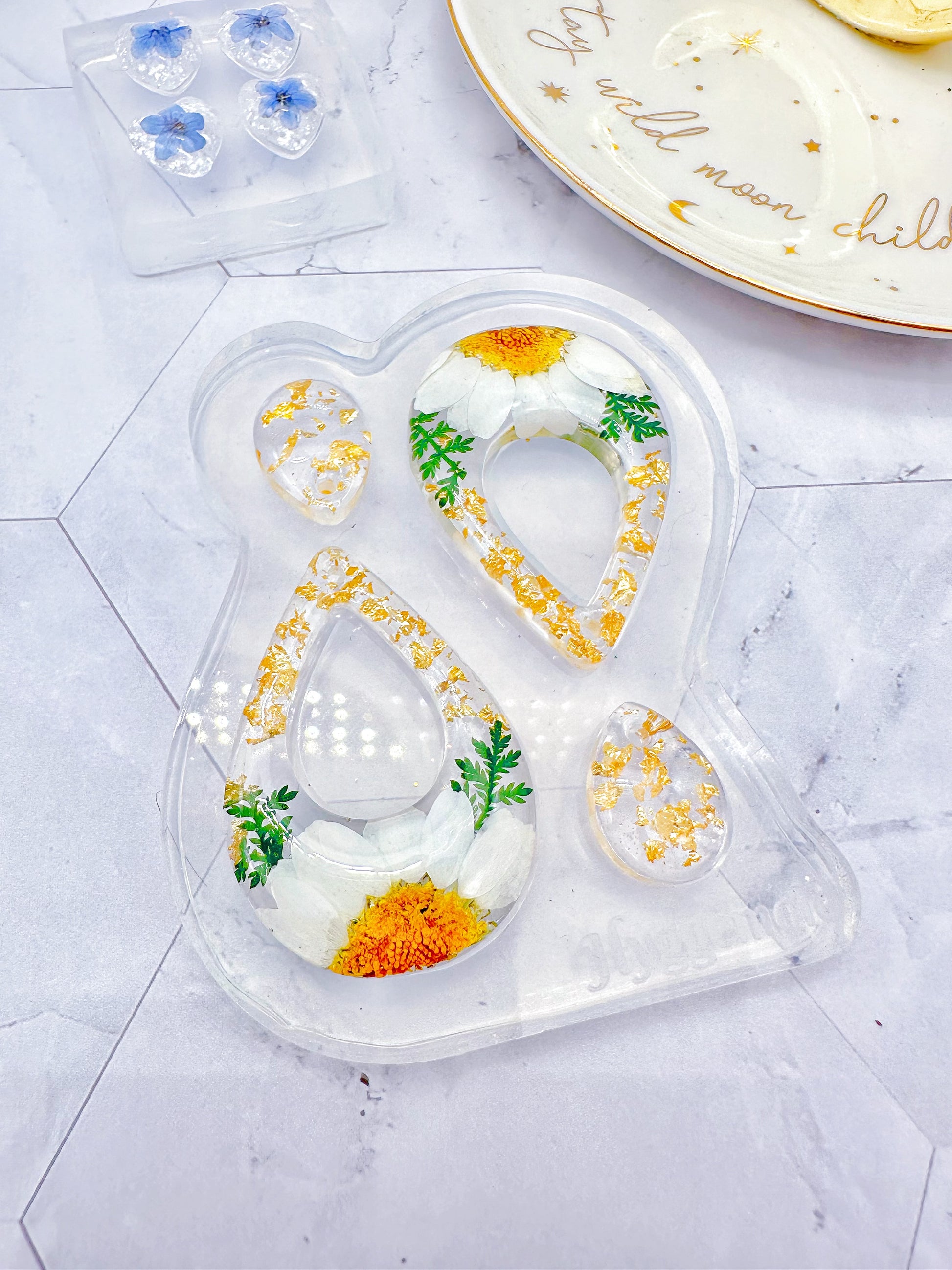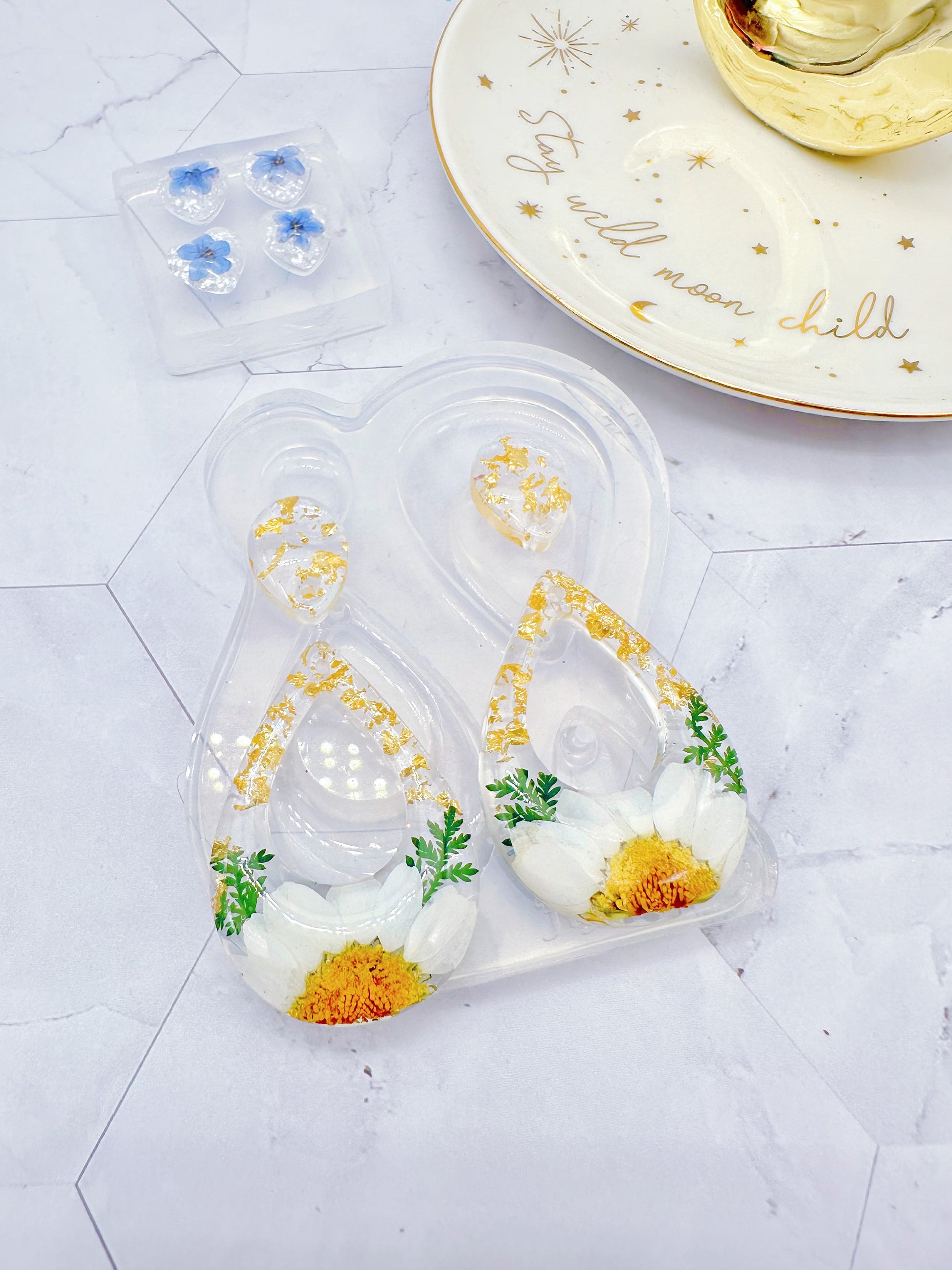 Large Pre-domed Retro Tear Drop Dangle Earring Mold Clear Silicone Mold for Resin Jewellery
