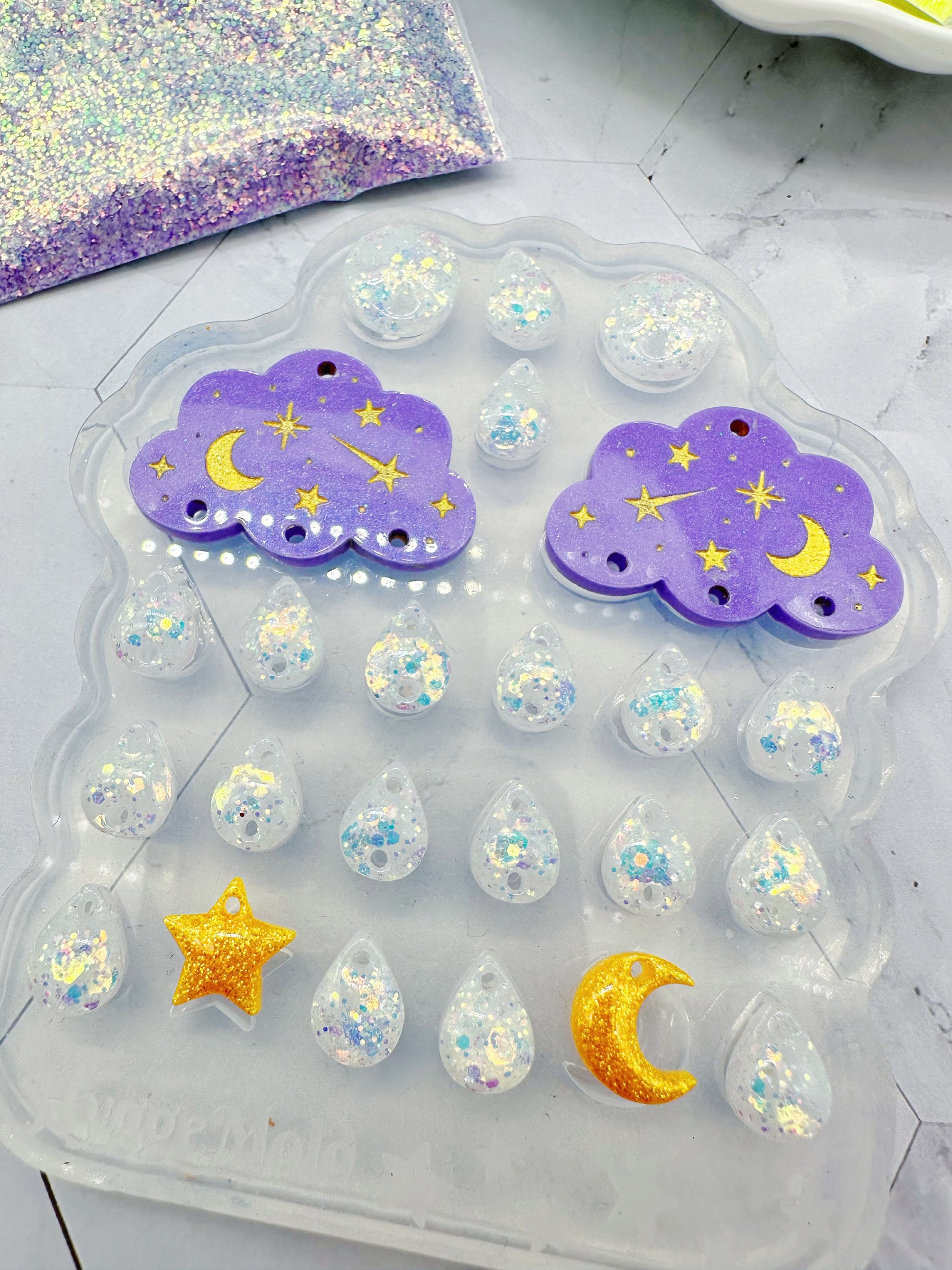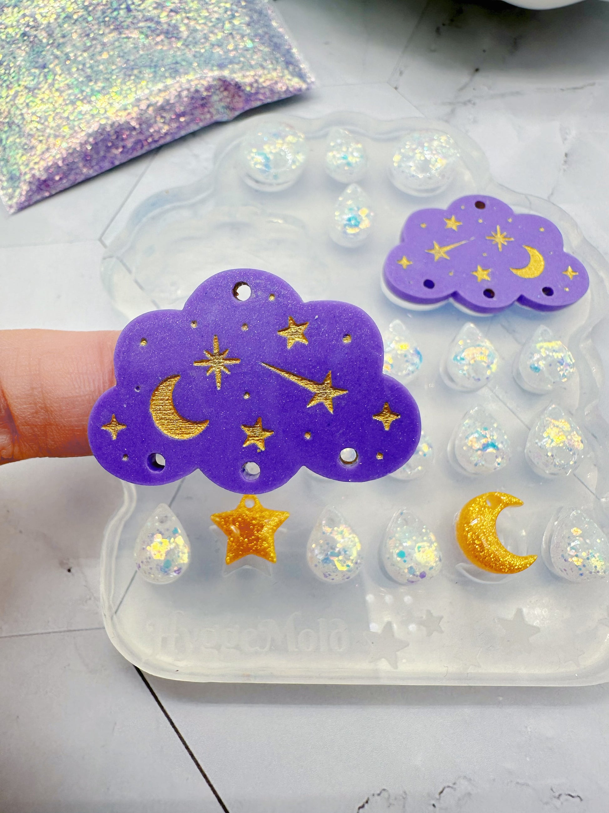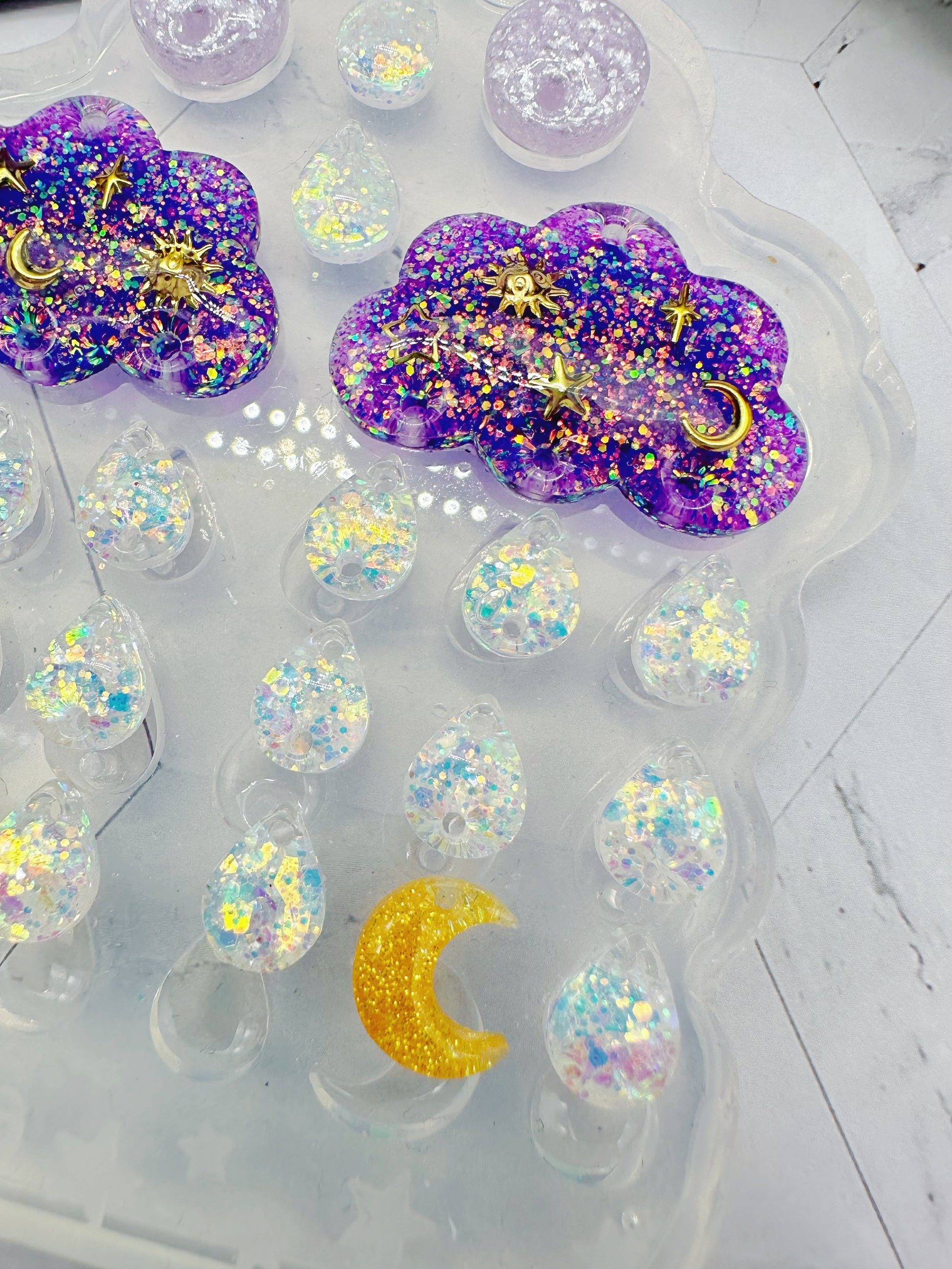 This is an all-predomed version of our popular rainy cloud dangly earring mold!