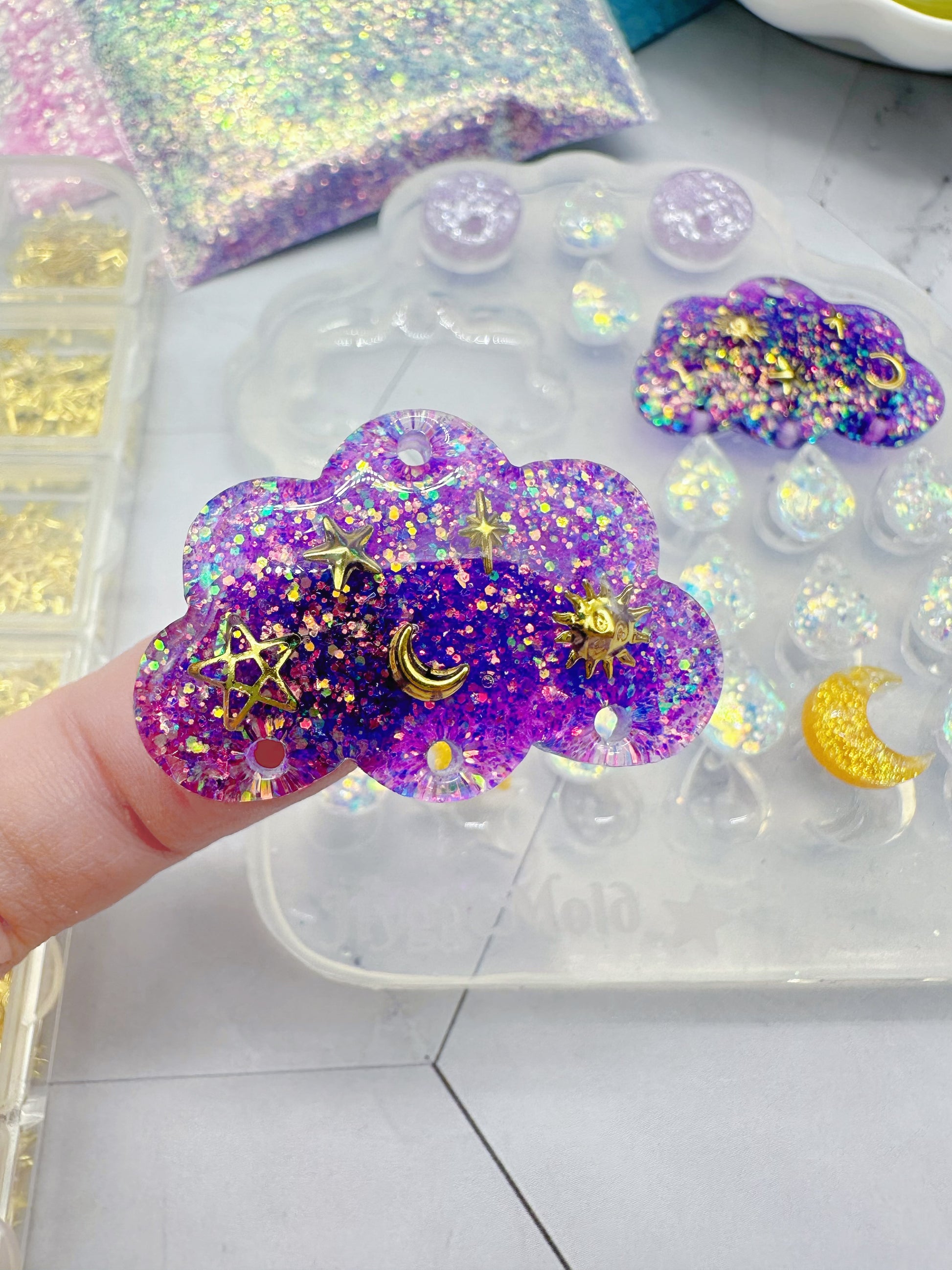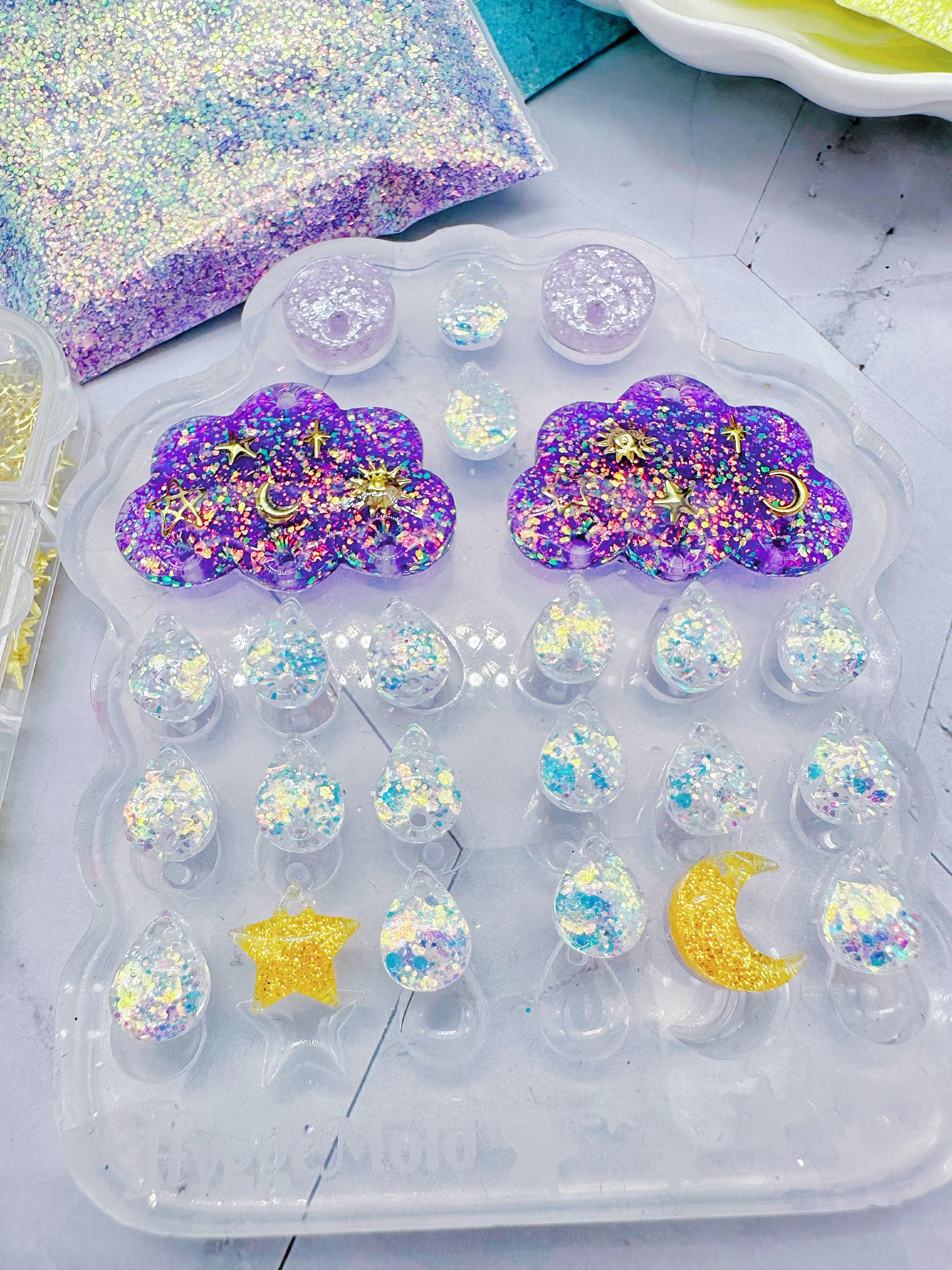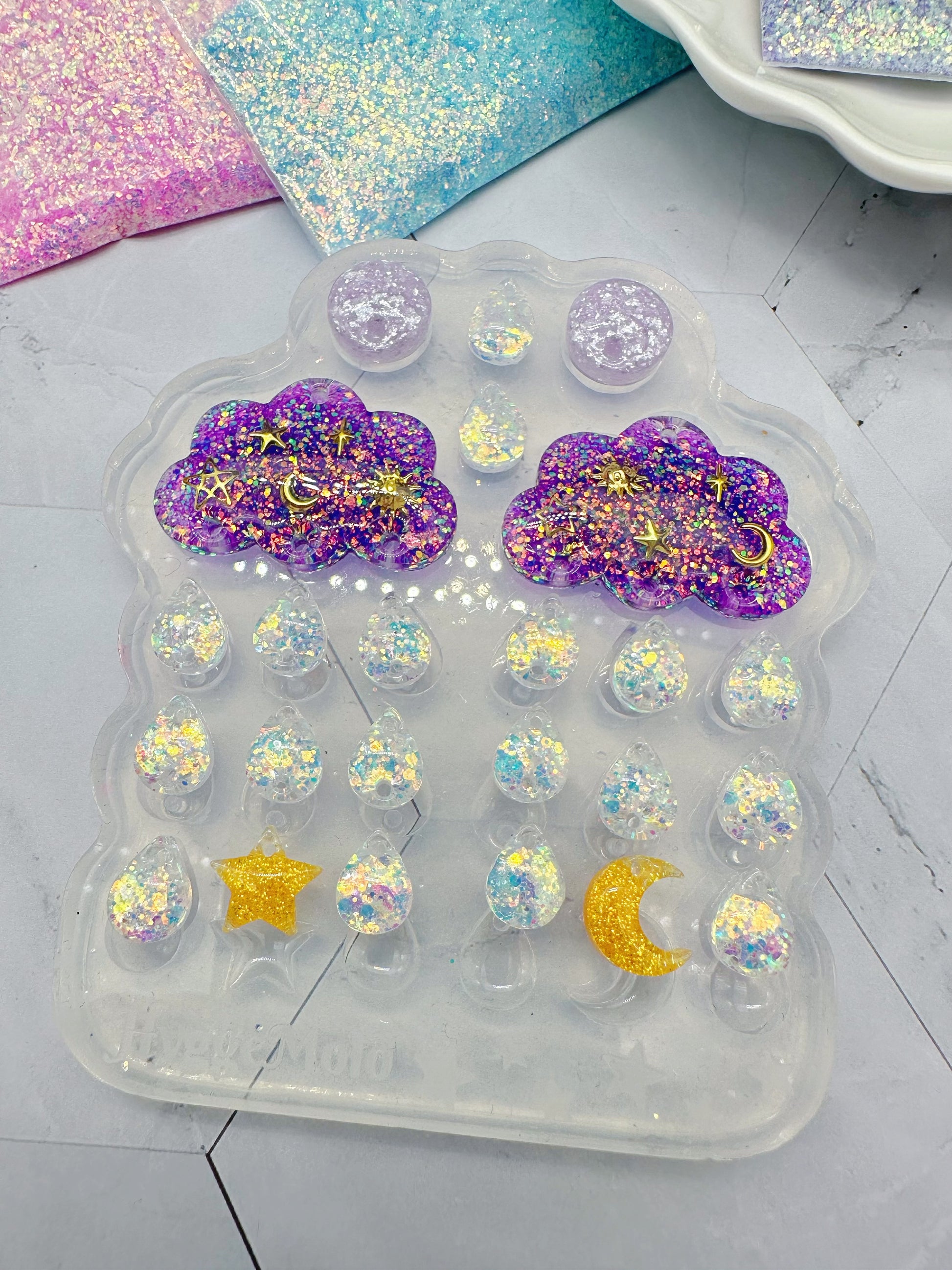 This is an all-predomed version of our popular rainy cloud dangly earring mold!