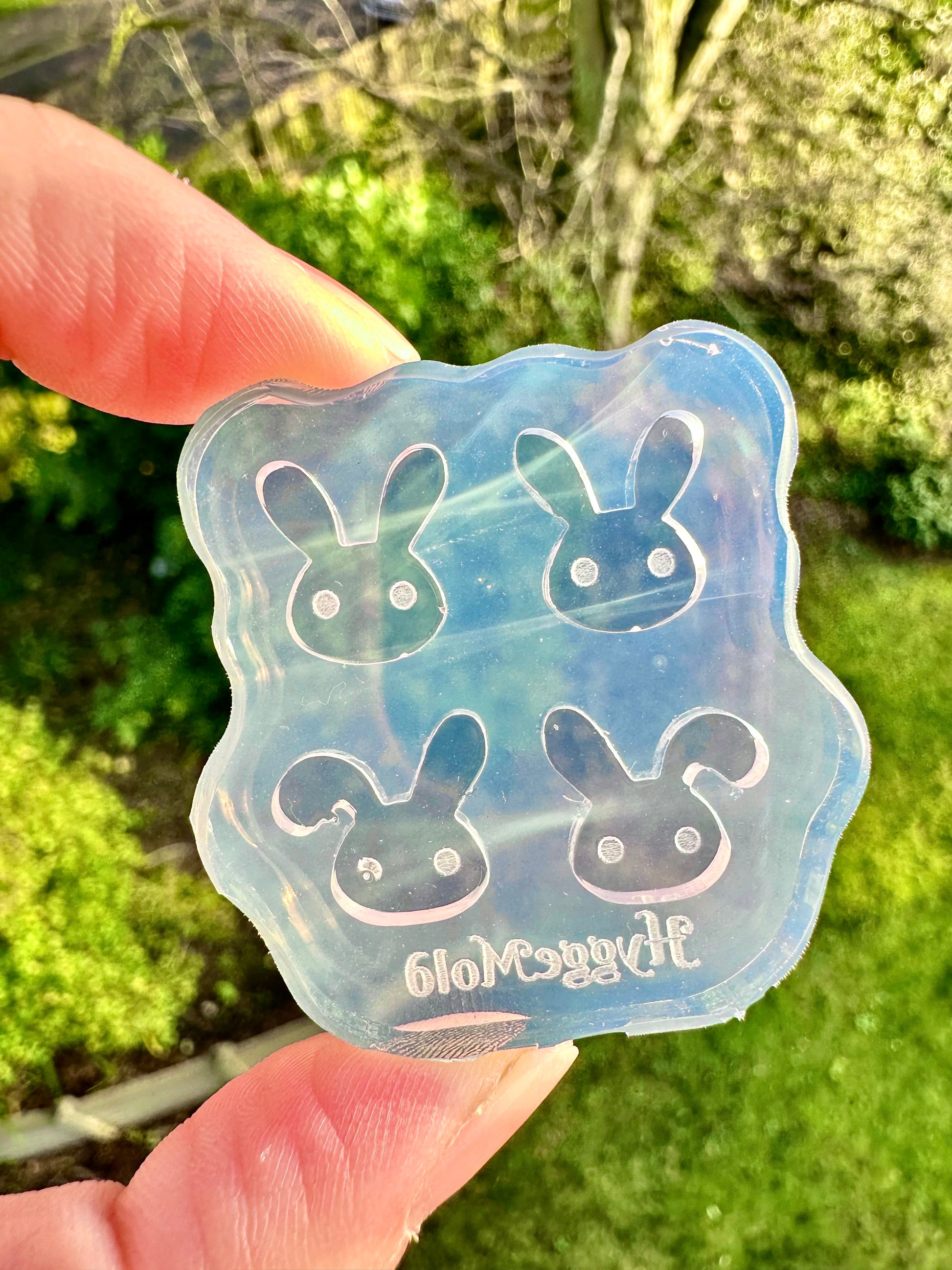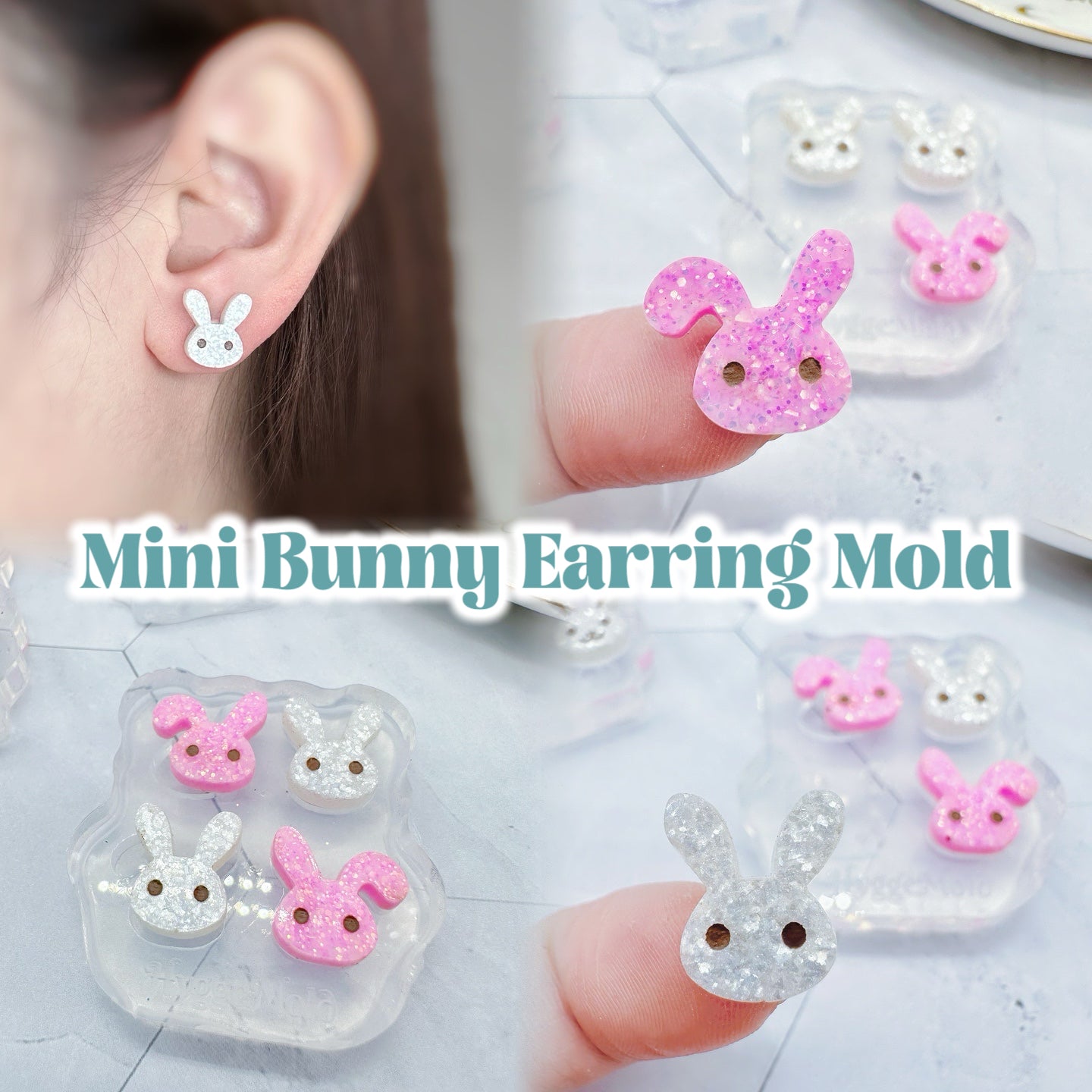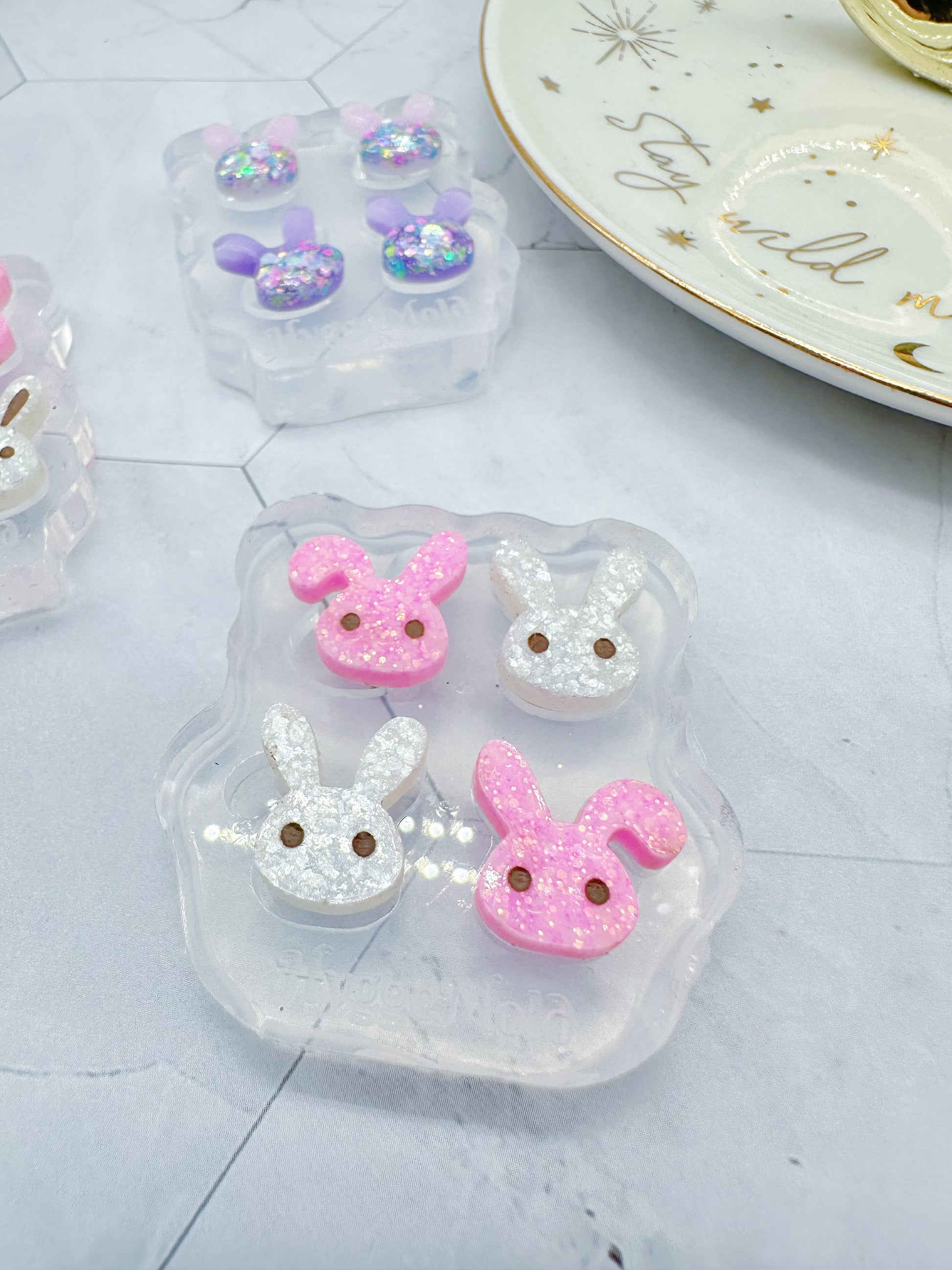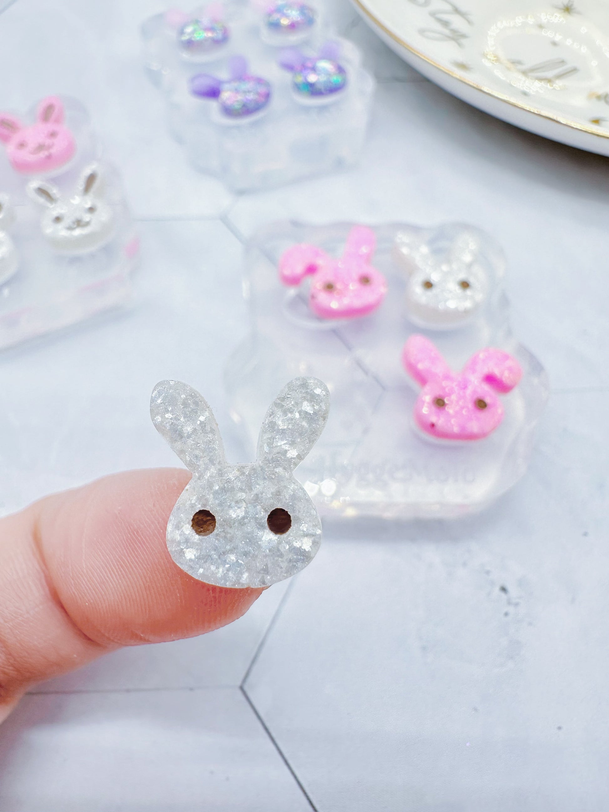 Mini Bunny Face Mismatch Stud Earring Mold Easter Clear Silicone Mold for resin jewellery