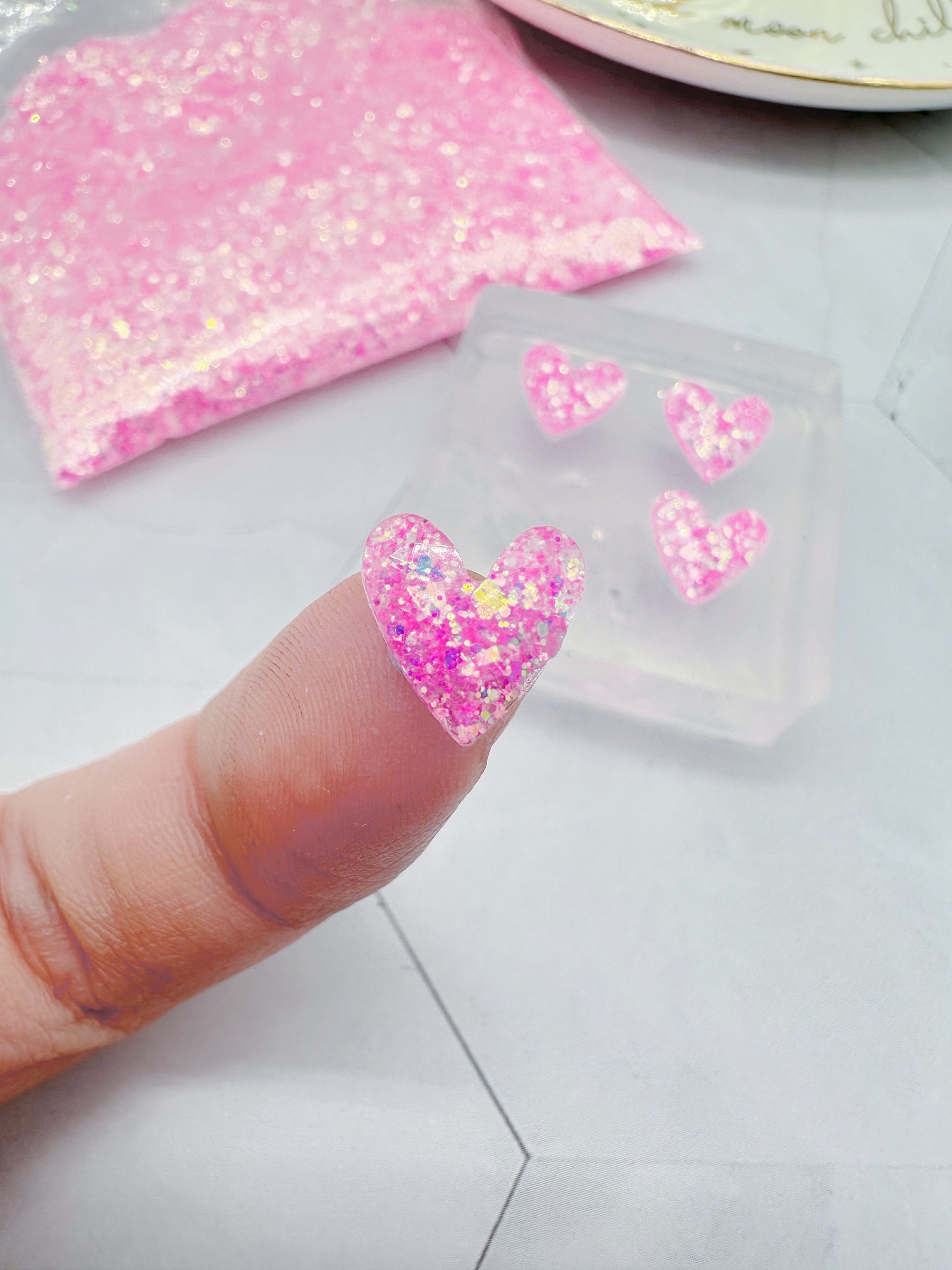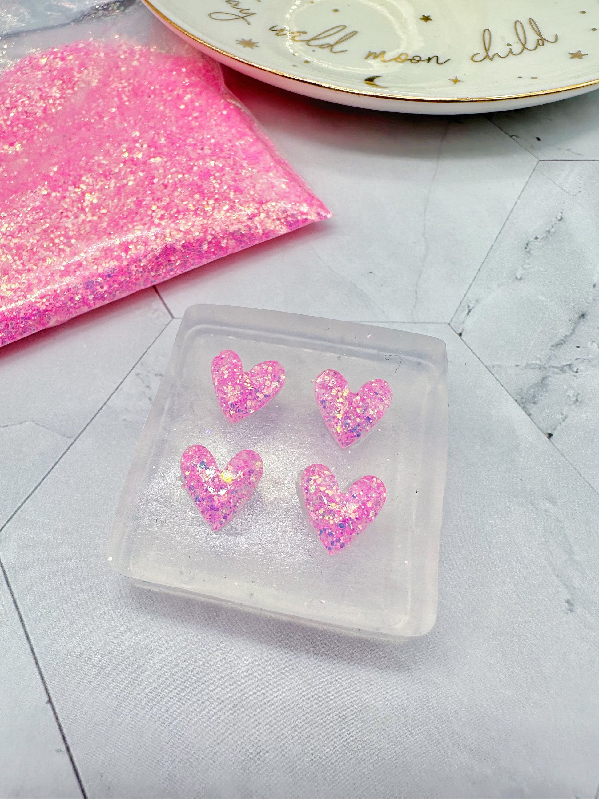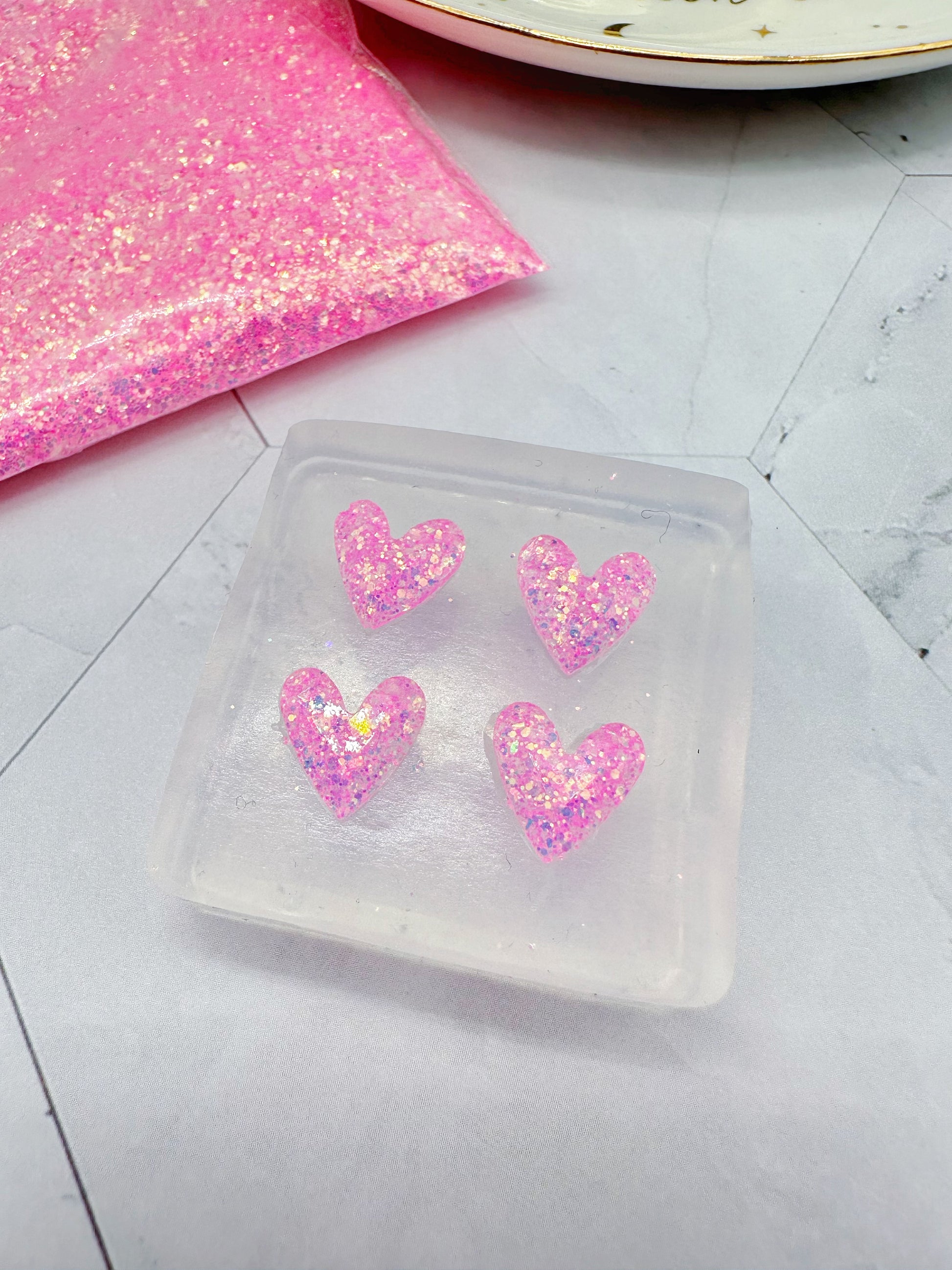 Dainty Mini Faceted Heart Stud Earring Cabochon Mold