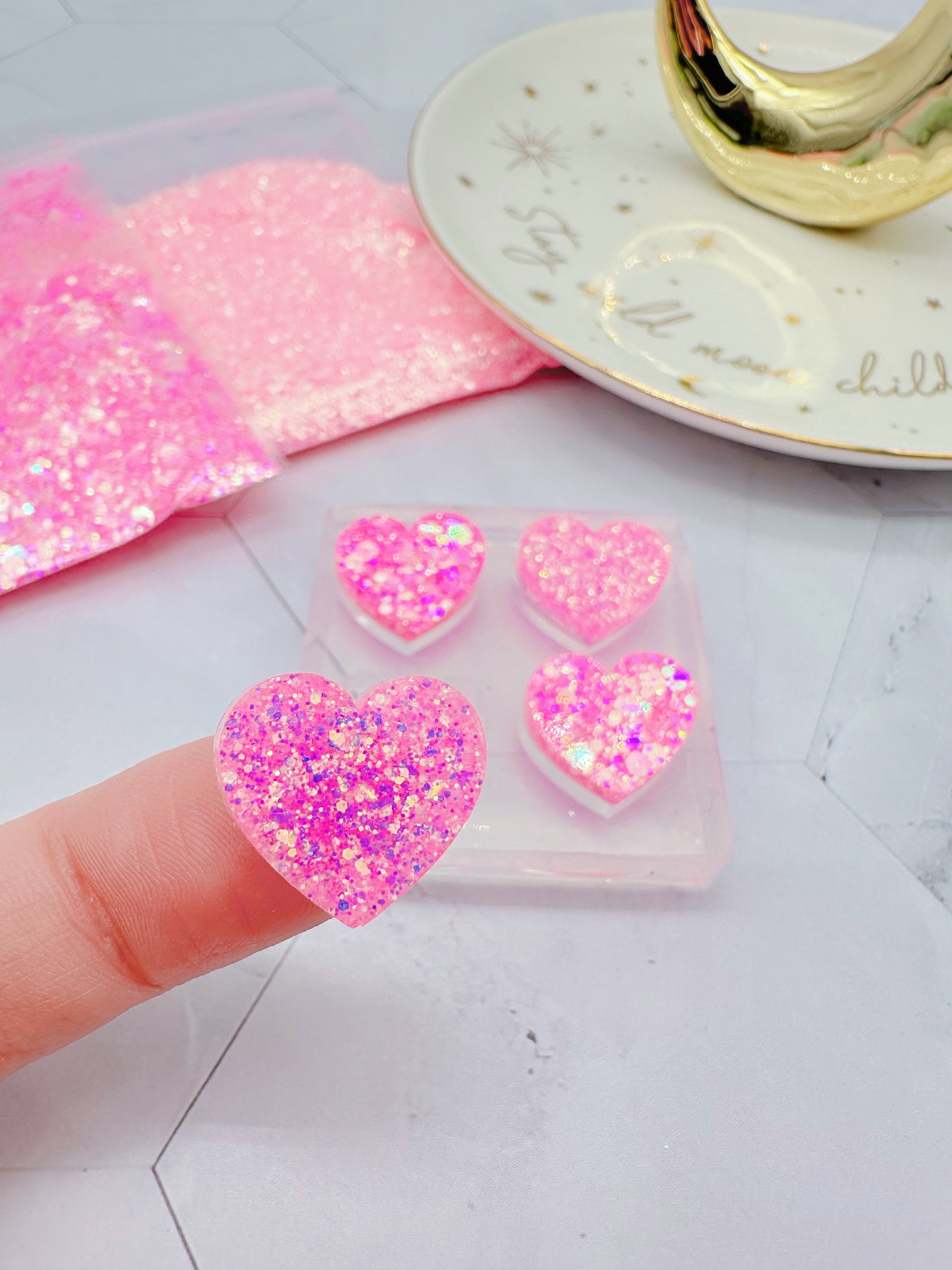 Although colored silicone molds with mica or glitter are very attractive, we usually don't recommend them because clear silicone molds give you a better vision as to what's going on inside e.g. trapped bubbles and so are more practical for resin artists. However, if you would like to get a colored mold, we have the pigment needed. Please contact us for more details.