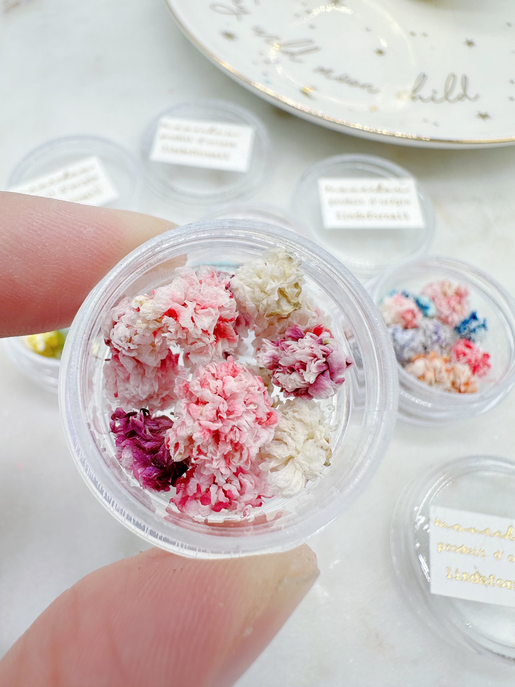 Mini Hydrangea Dried Flowers in a pot (Pink Blossom)