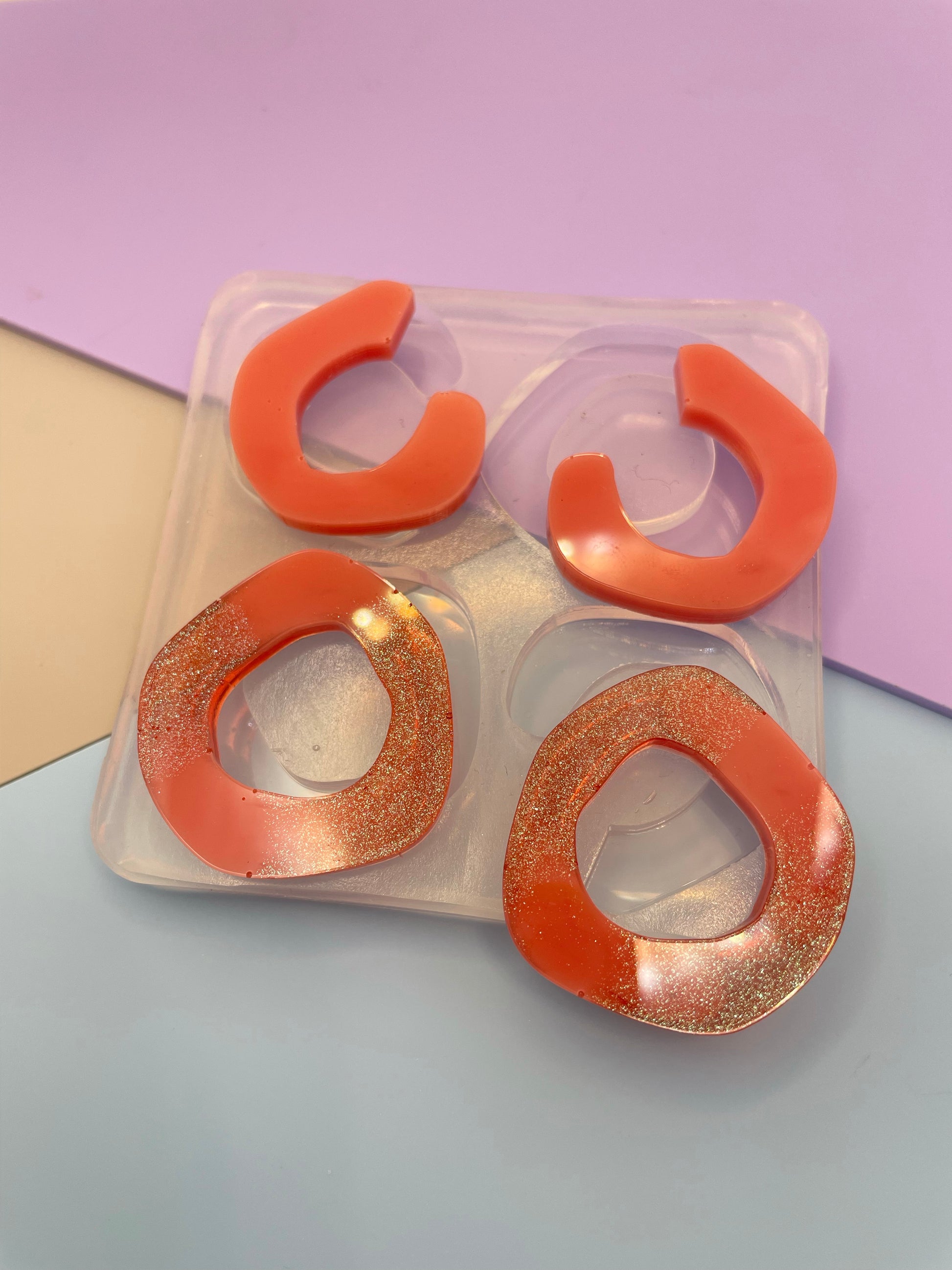 Although colored silicone molds with mica or glitter are very attractive, we usually don't recommend them because clear silicone molds give you a better vision as to what's going on inside e.g. trapped bubbles and so are more practical for resin artists. However, if you would like to get a colored mold, we have the pigment needed. Please contact us for more details.
