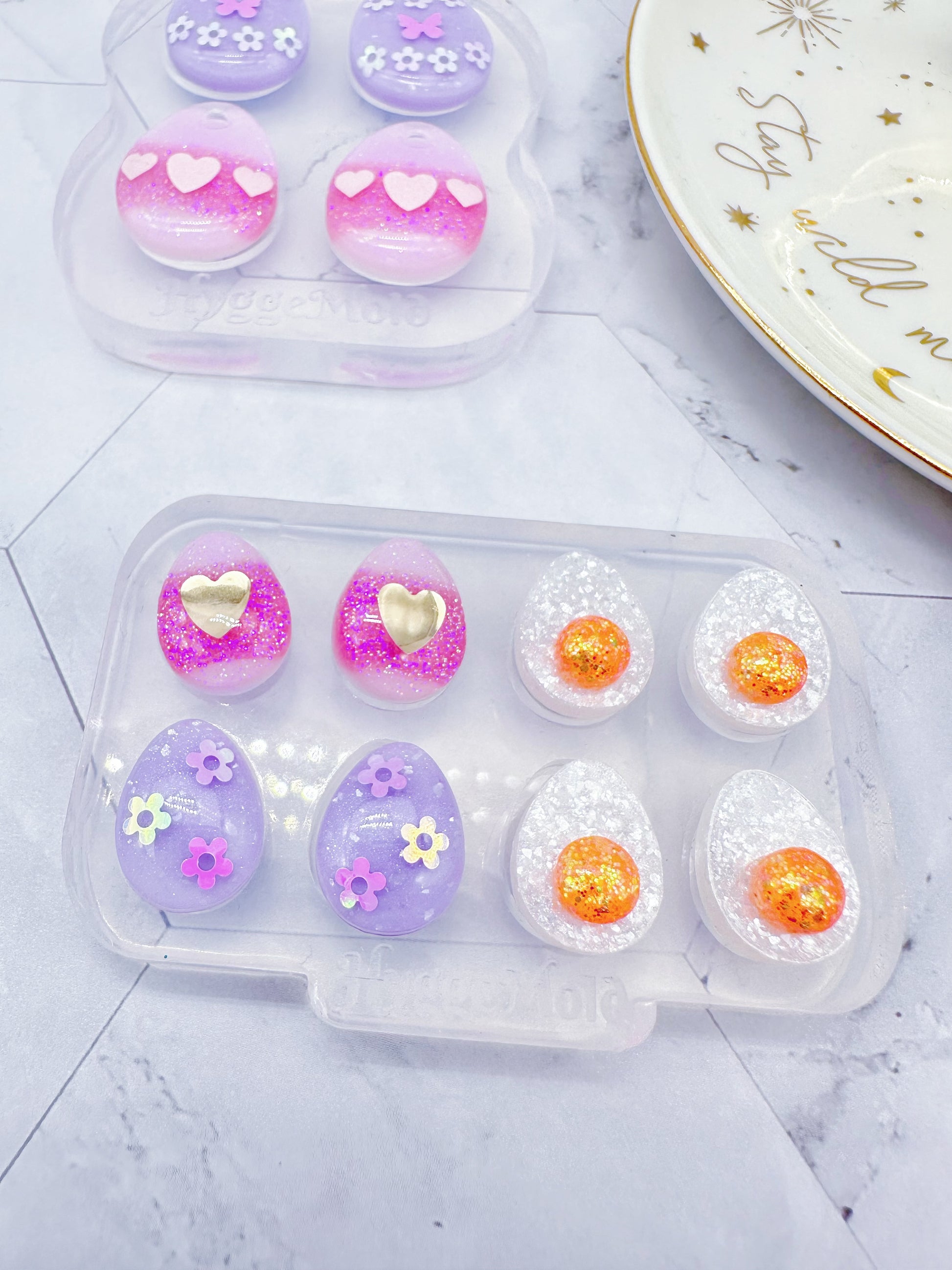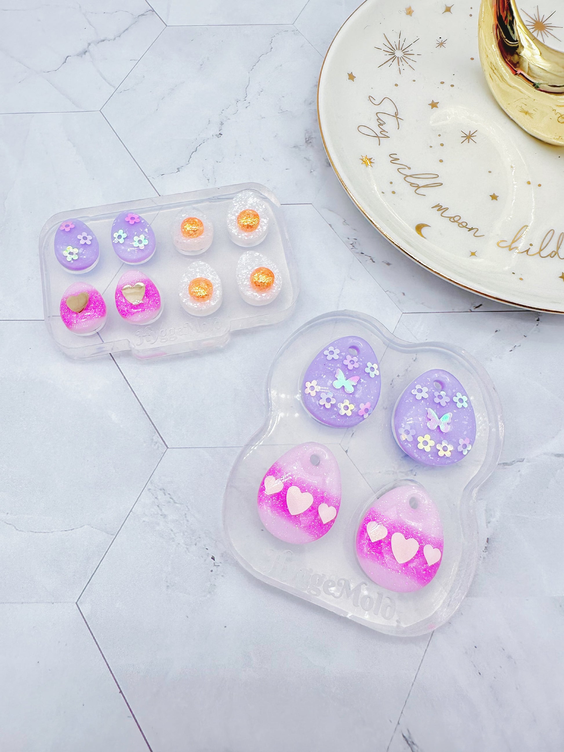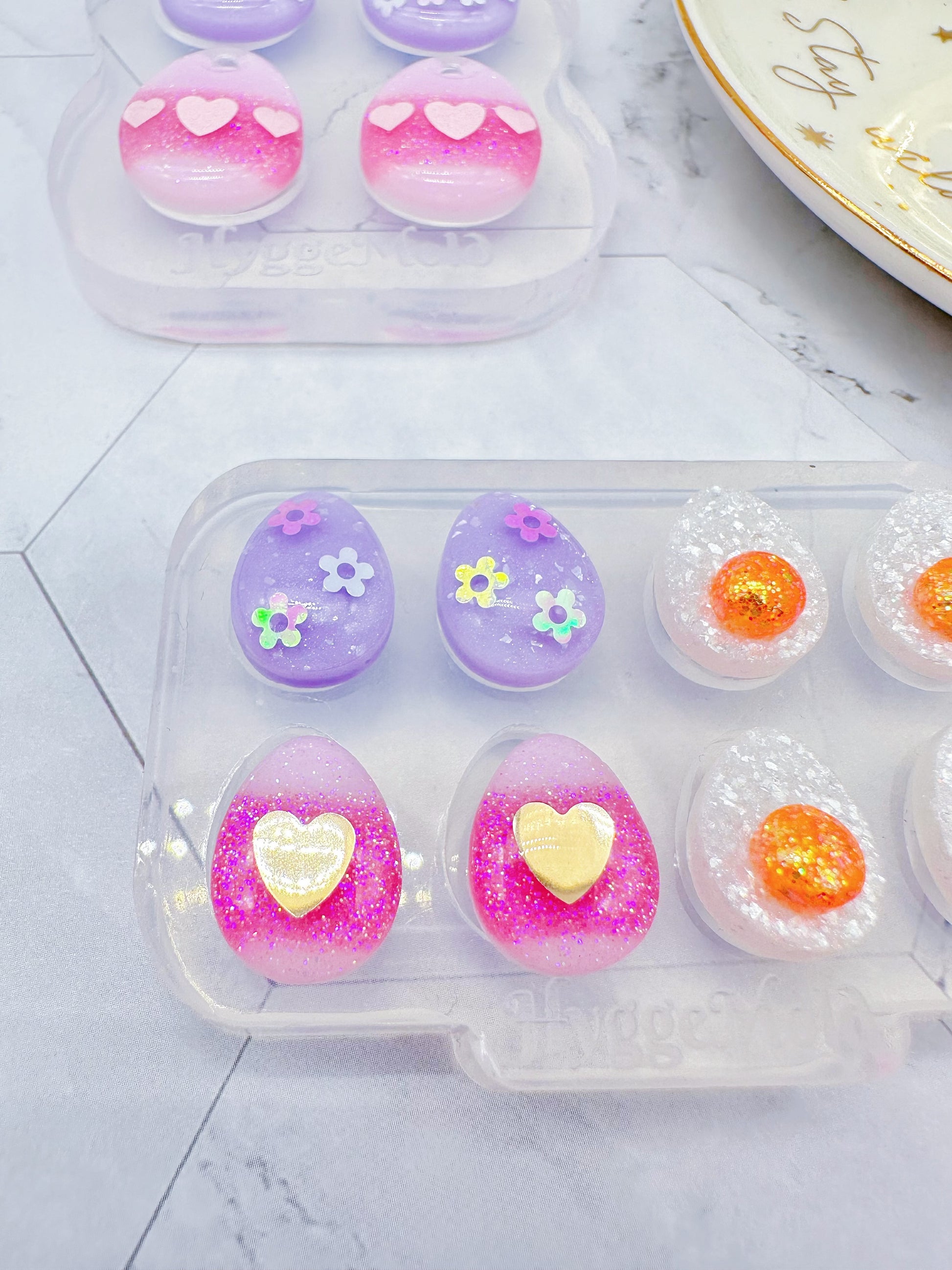 Pre-domed Egg Stud Earring Mold Hoop Charm Easter Clear Silicone Mold for Resin