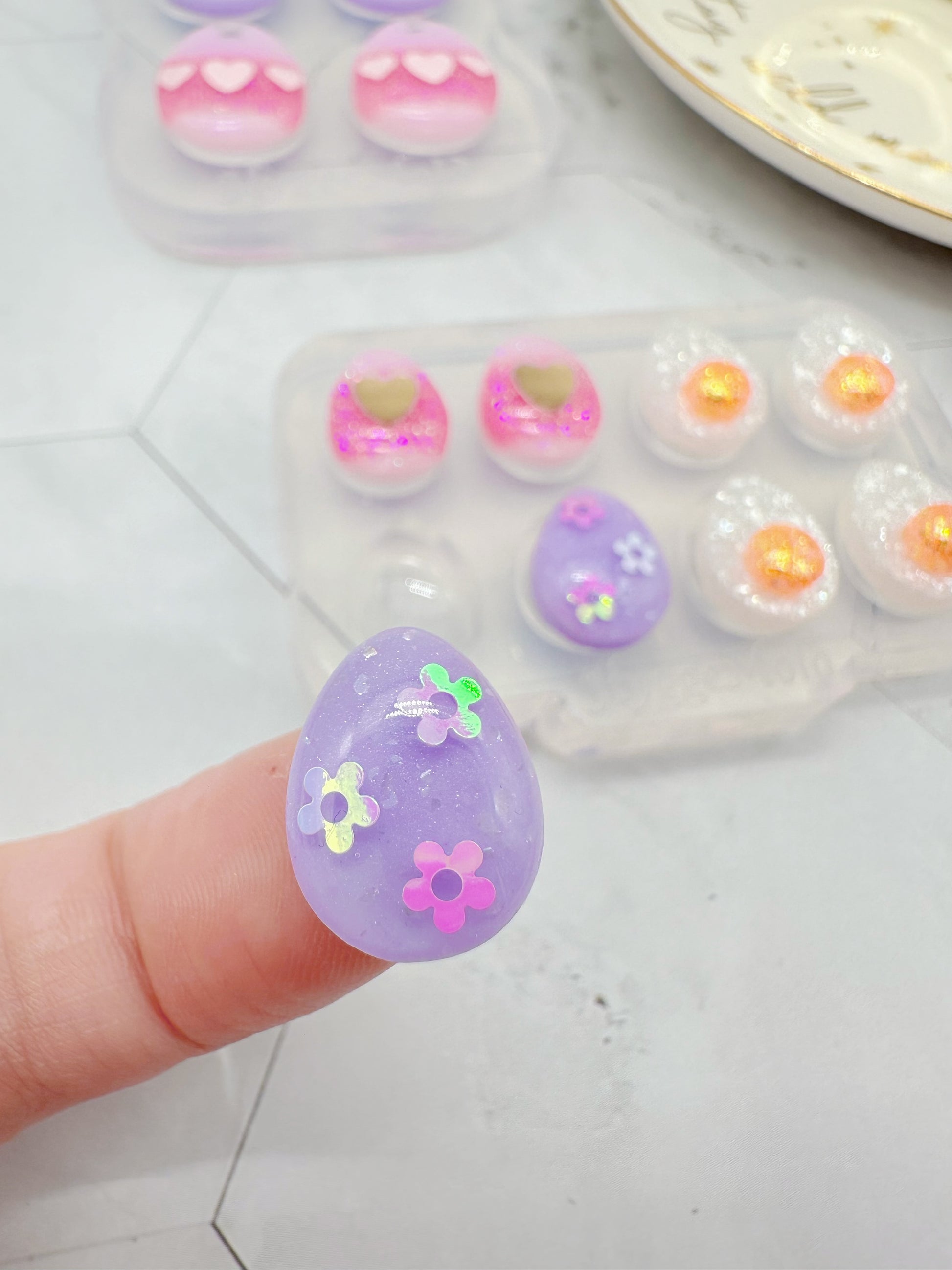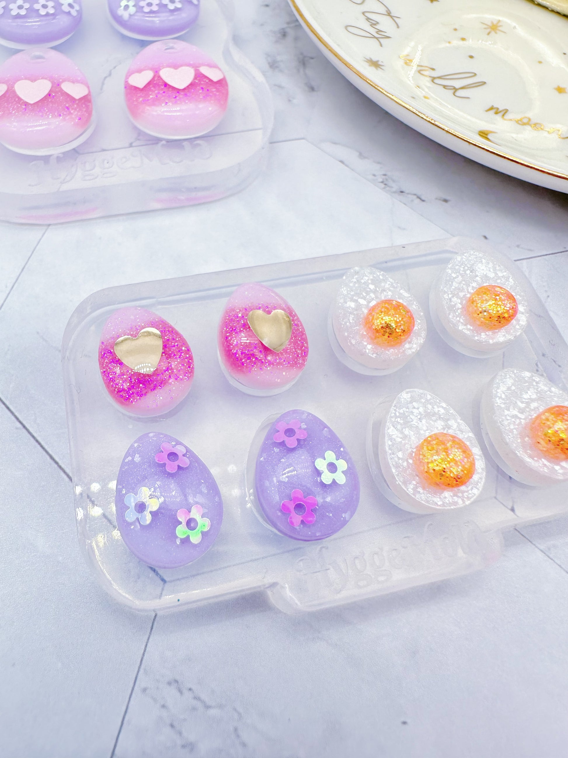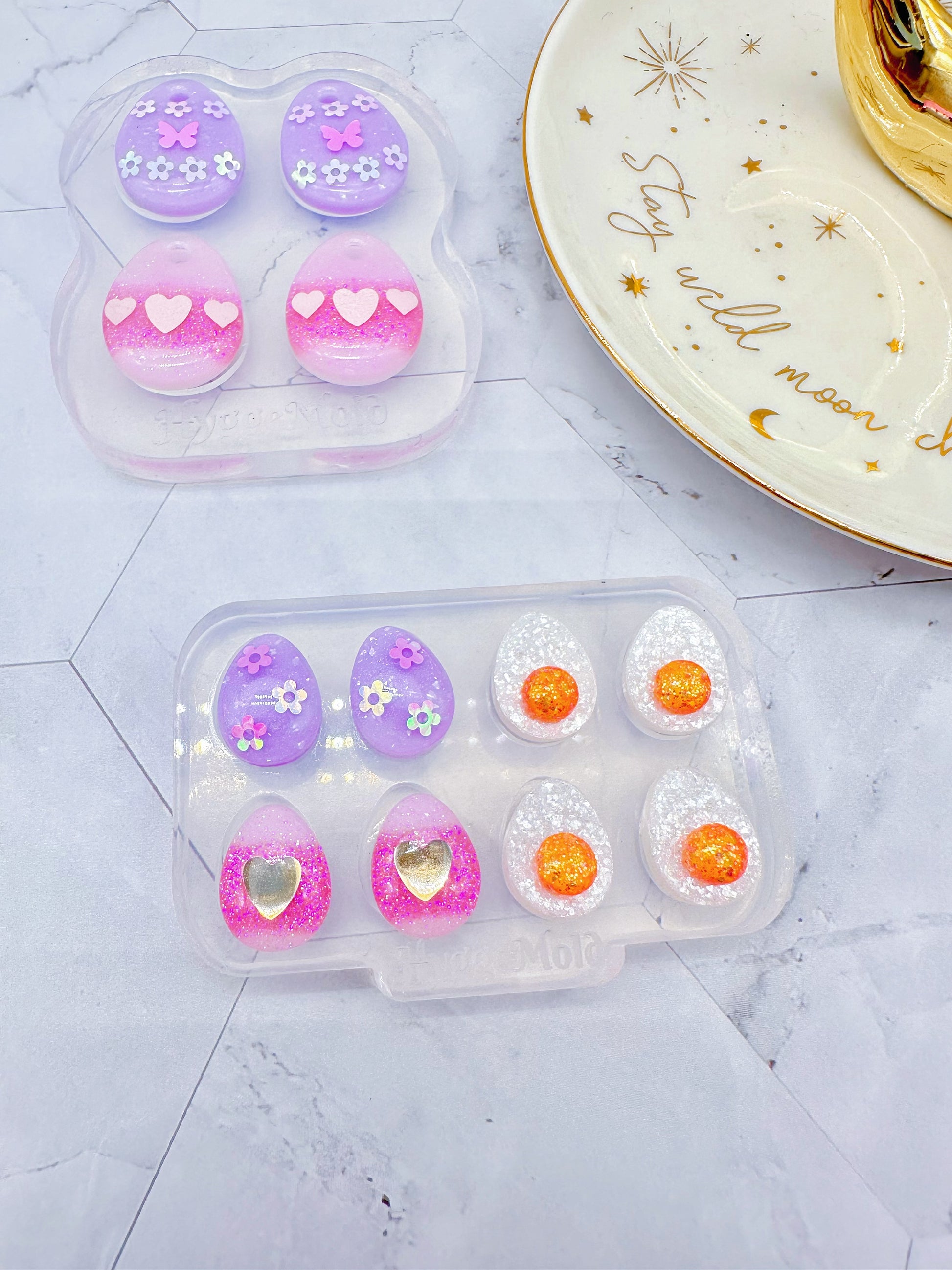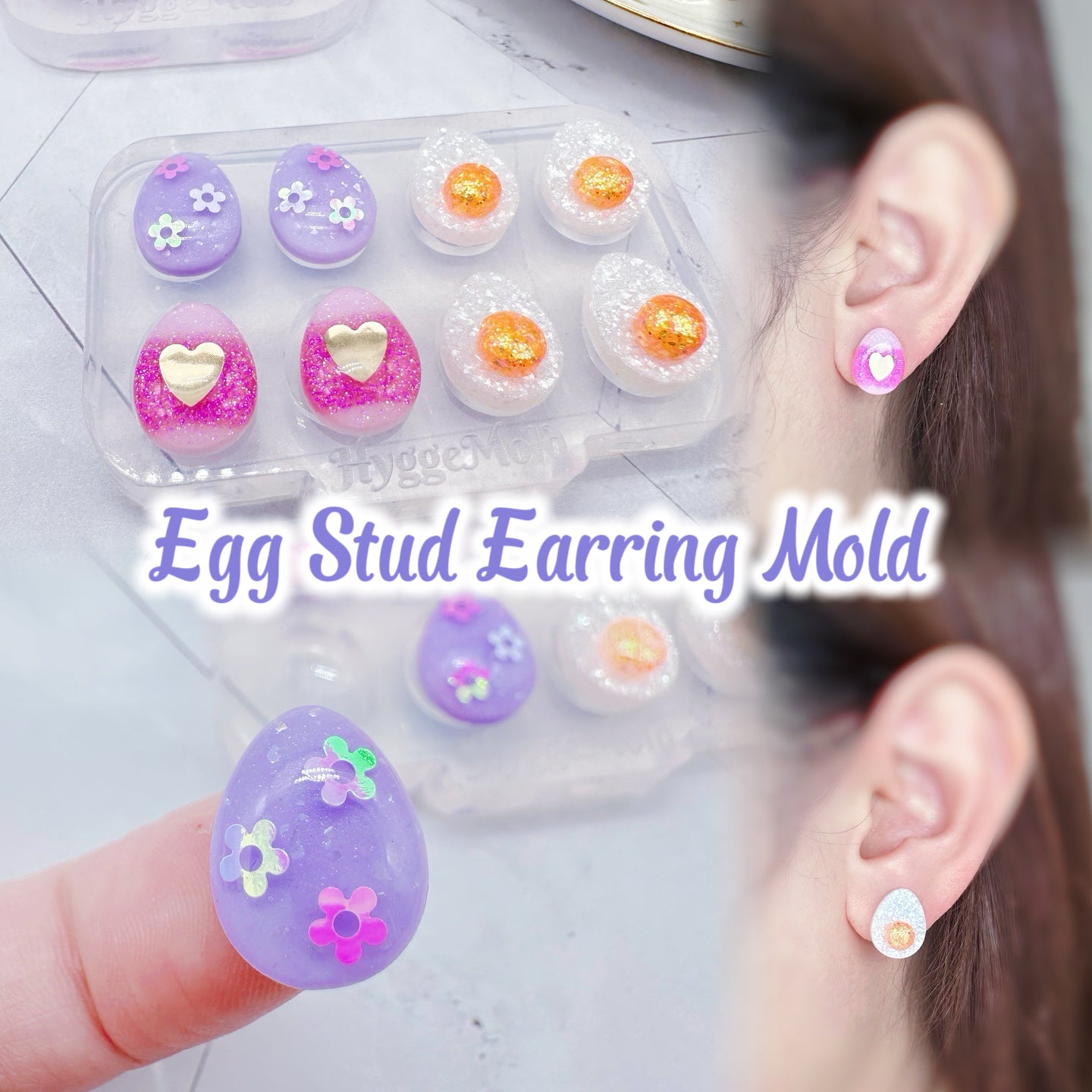 Pre-domed Egg Stud Earring Mold Hoop Charm Easter Clear Silicone Mold for Resin