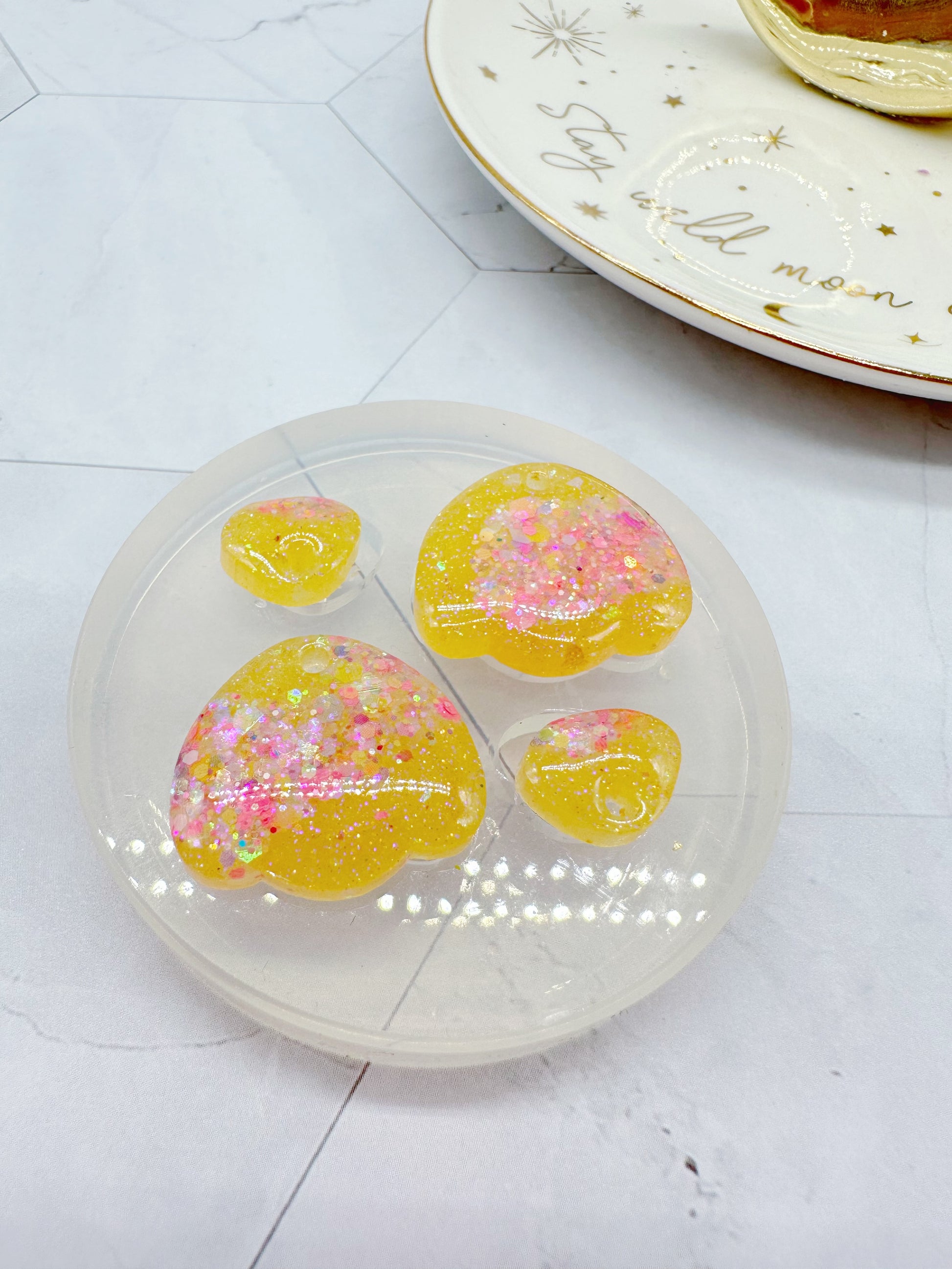 What makes HyggeMold stands out is our quality. We chose the best platinum-cure silicone you can find on the market - crystal clear, tough, flexible, tear resistant, long-lasting, and non-stick, thus allowing easy demolding! Because of that, our molds last at least 30% longer than the others, and can last even longer when used properly. They are also compatible with different casting materials, such as epoxy resin, UV resin, polymer clay, jesmonite, concrete and more! See our entire mold collection here.