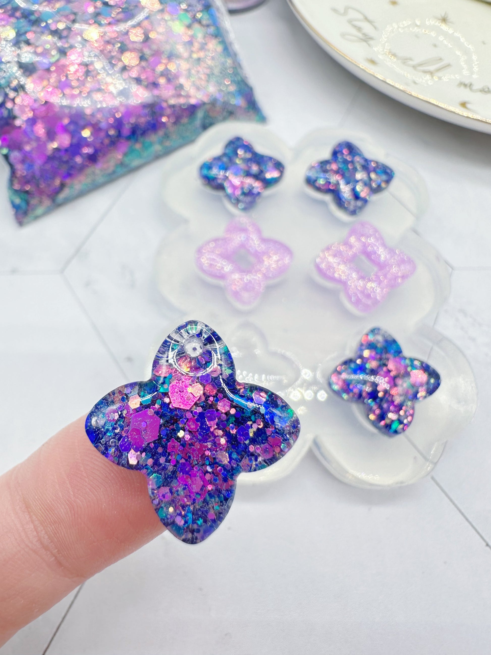 Although colored silicone molds with mica or glitter are very attractive, we usually don't recommend them because clear silicone molds give you a better vision as to what's going on inside e.g. trapped bubbles and so are more practical for resin artists. However, if you would like to get a colored mold, we have the pigment needed. Please contact us for more details.