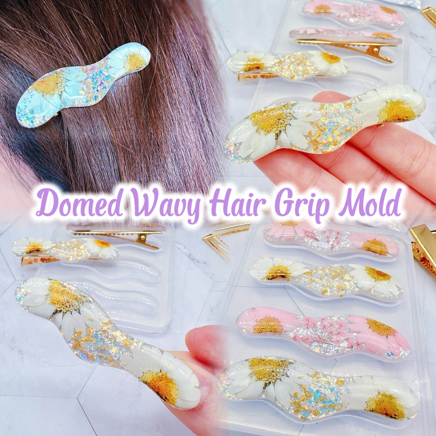 Pre domed Organic Wavy Hair Grip Mold Clear Silicone Mold for Resin Hair Clips
