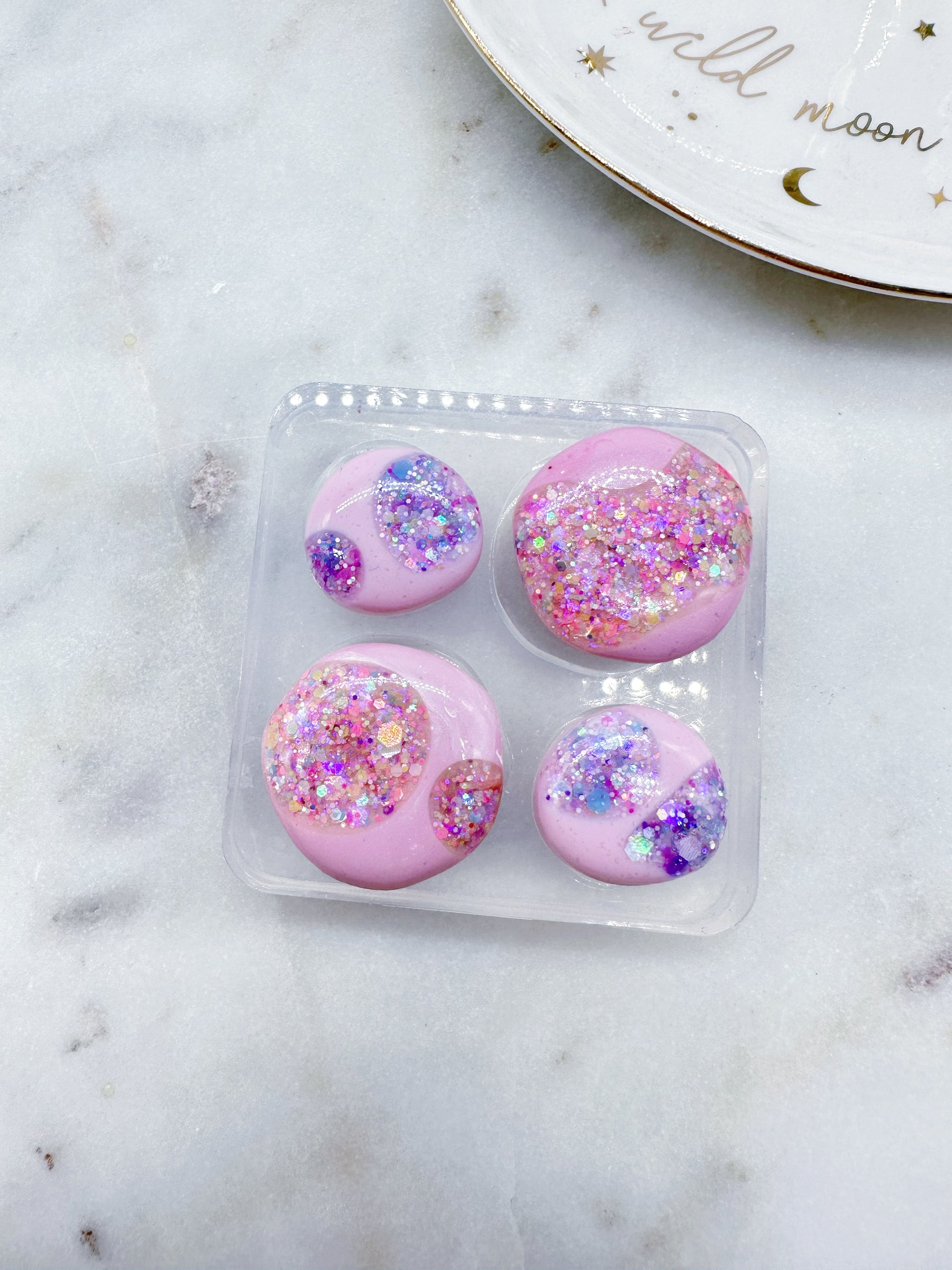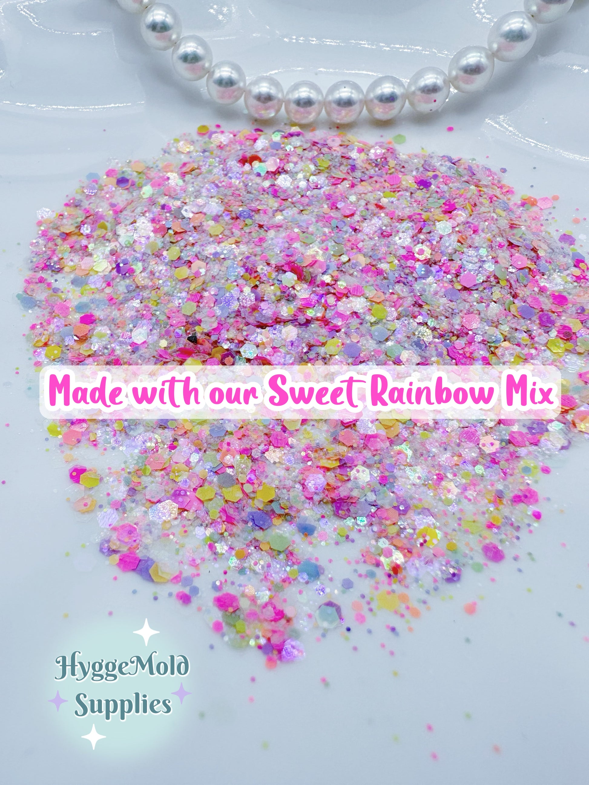Although colored silicone molds with mica or glitter are very attractive, we usually don't recommend them because clear silicone molds give you a better vision as to what's going on inside e.g. trapped bubbles and so are more practical for resin artists. However, if you would like to get a colored mold, we have the pigment needed. Please contact us for more details.