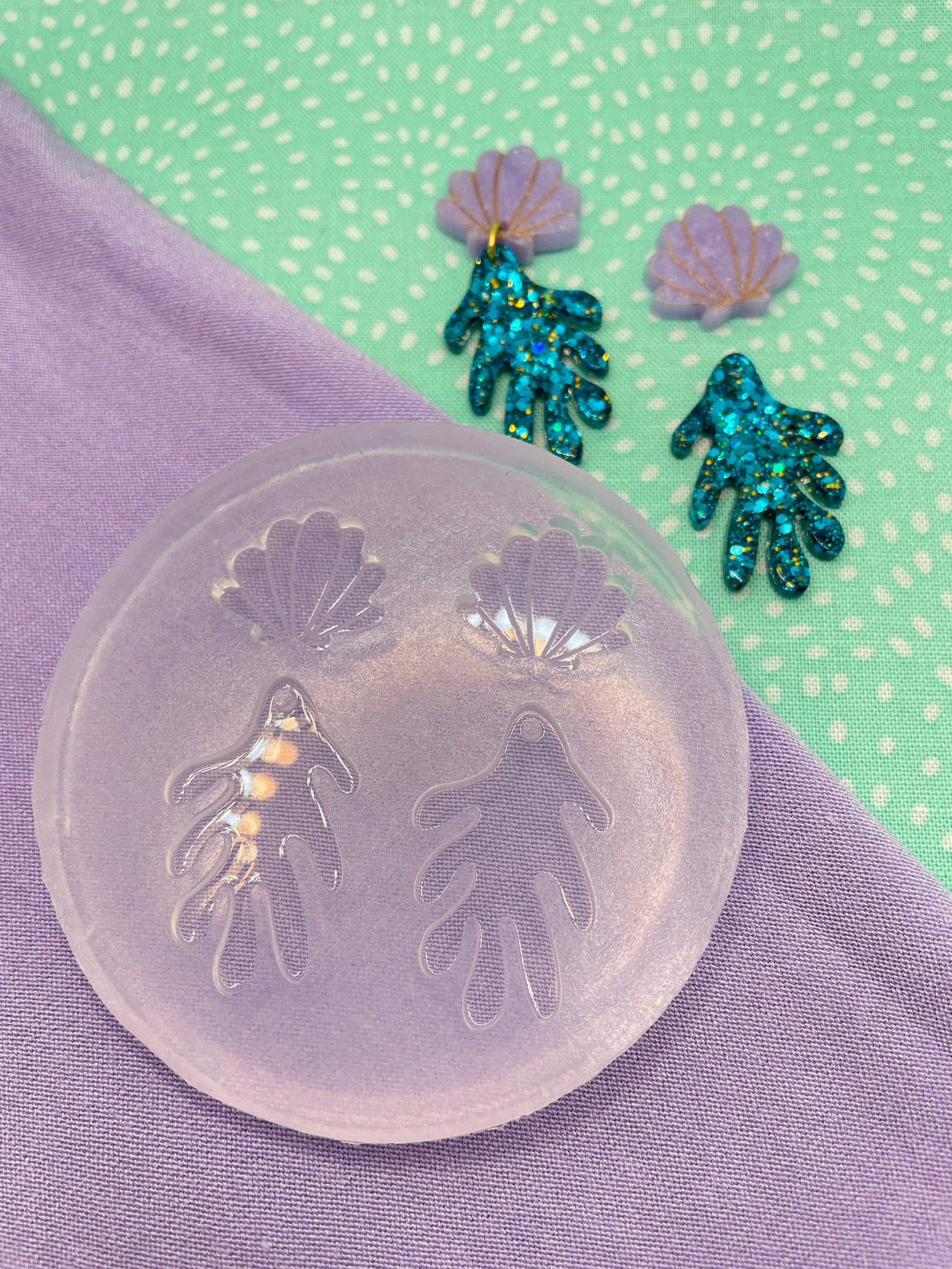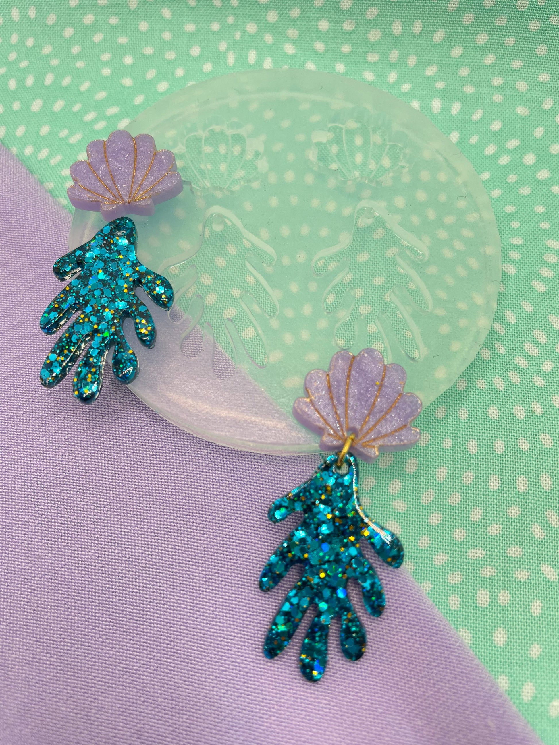 Seashell Scallop Shell Sea Kelp Coral Dangle Drop Earring Mold